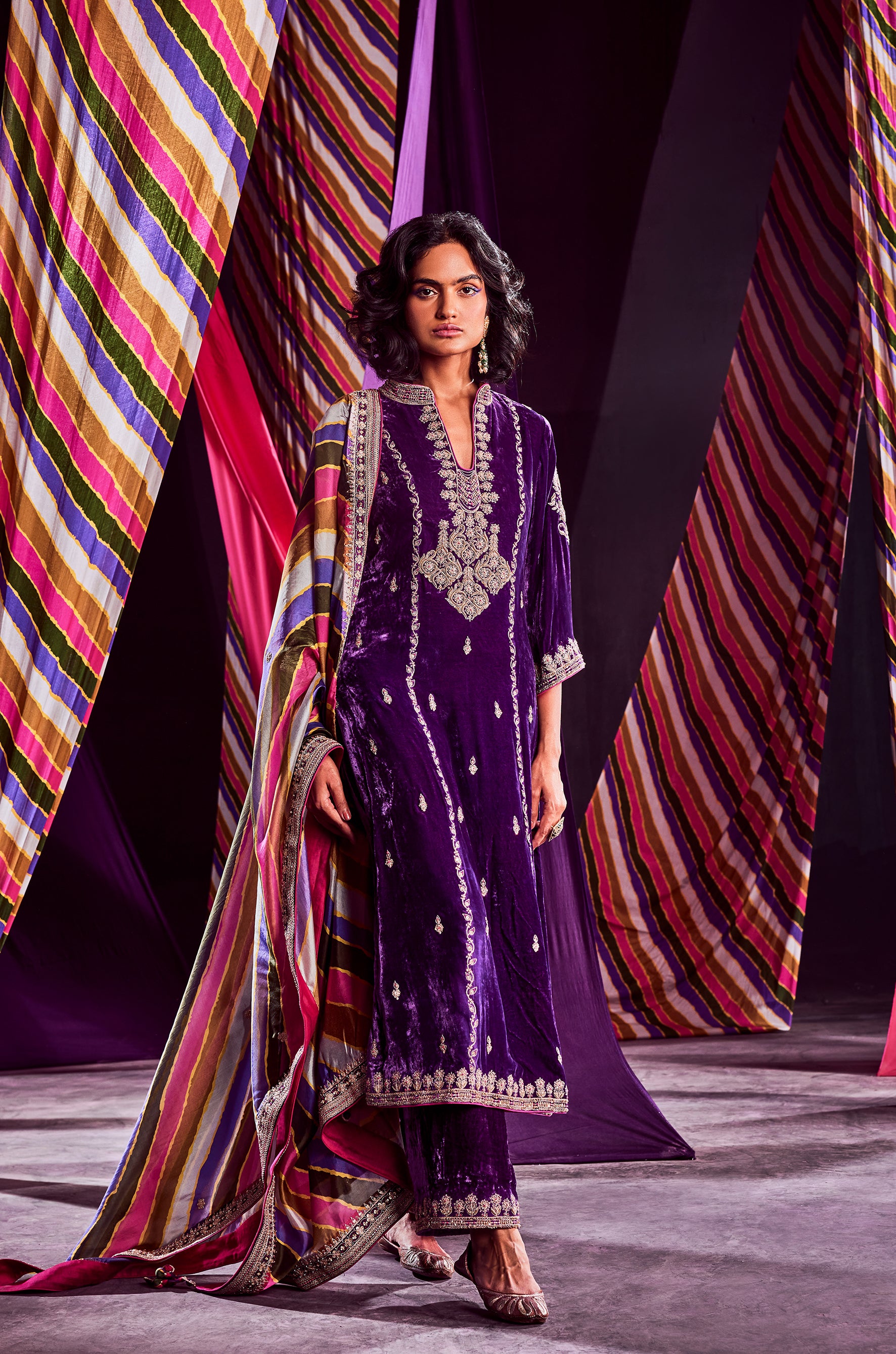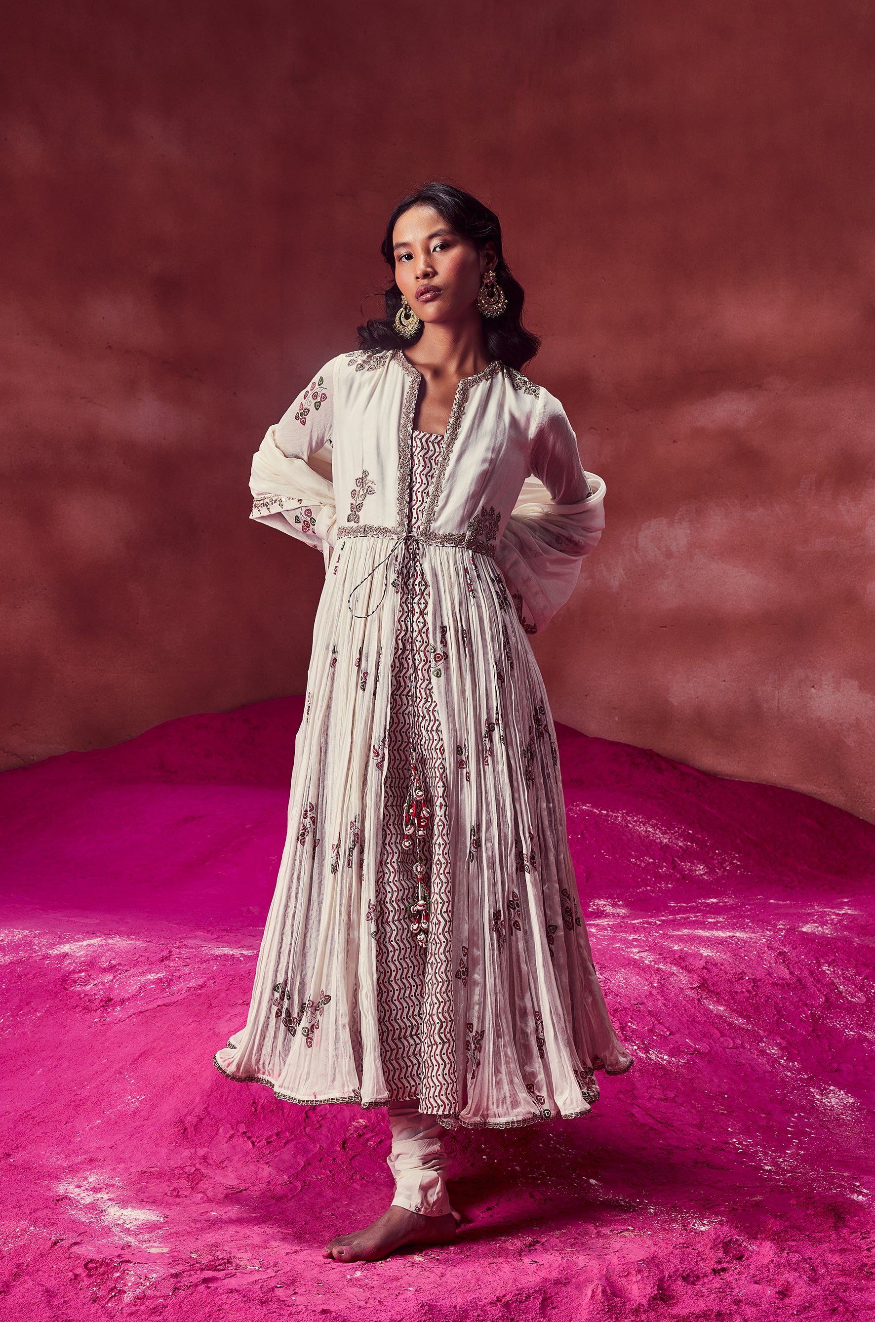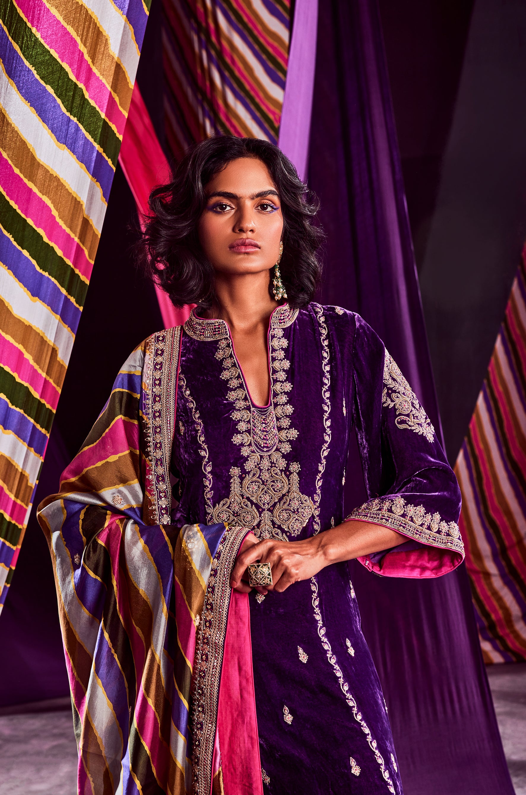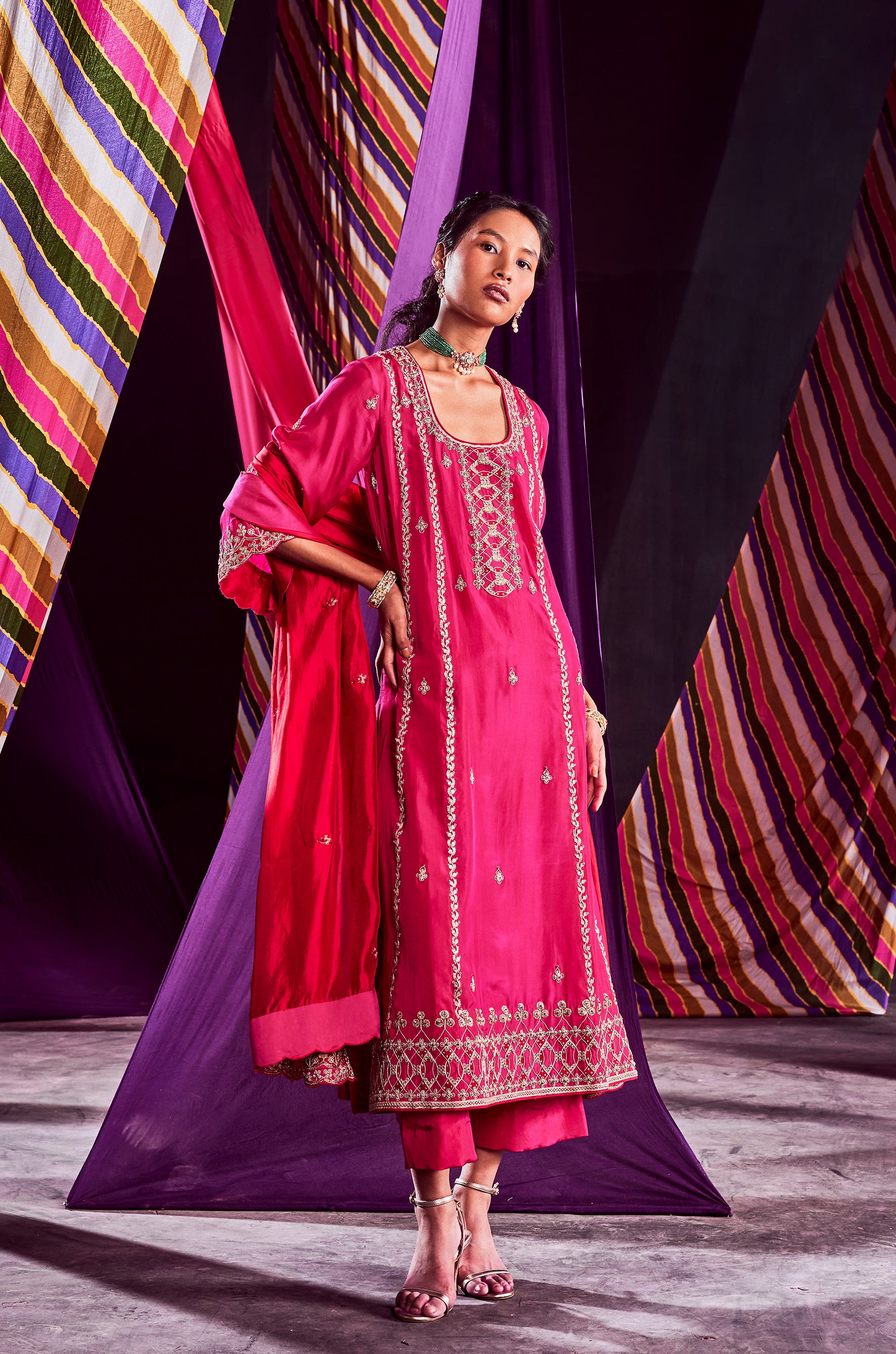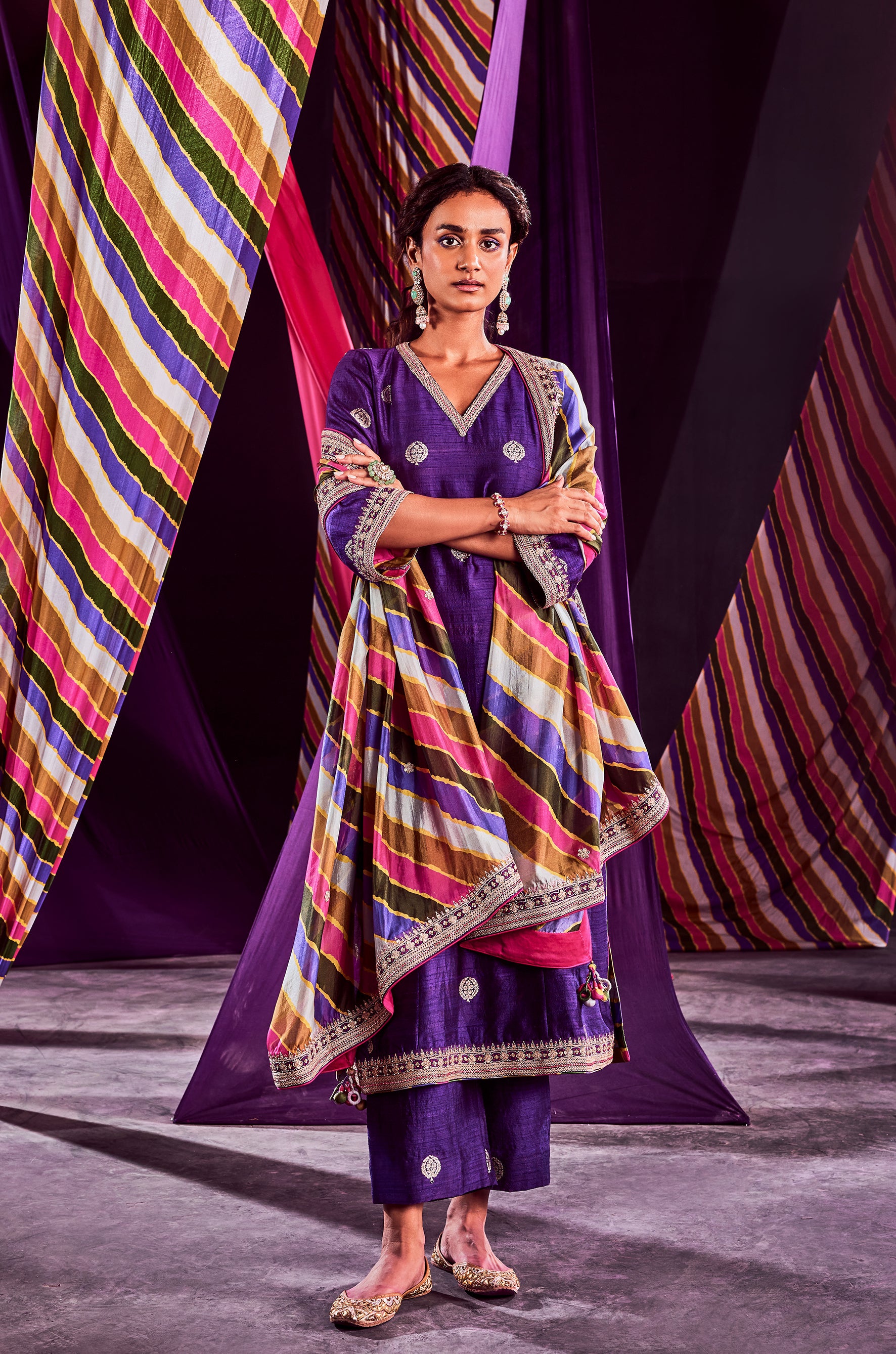 Banarasi Silk Kurta With Pants & Printed Dupatta