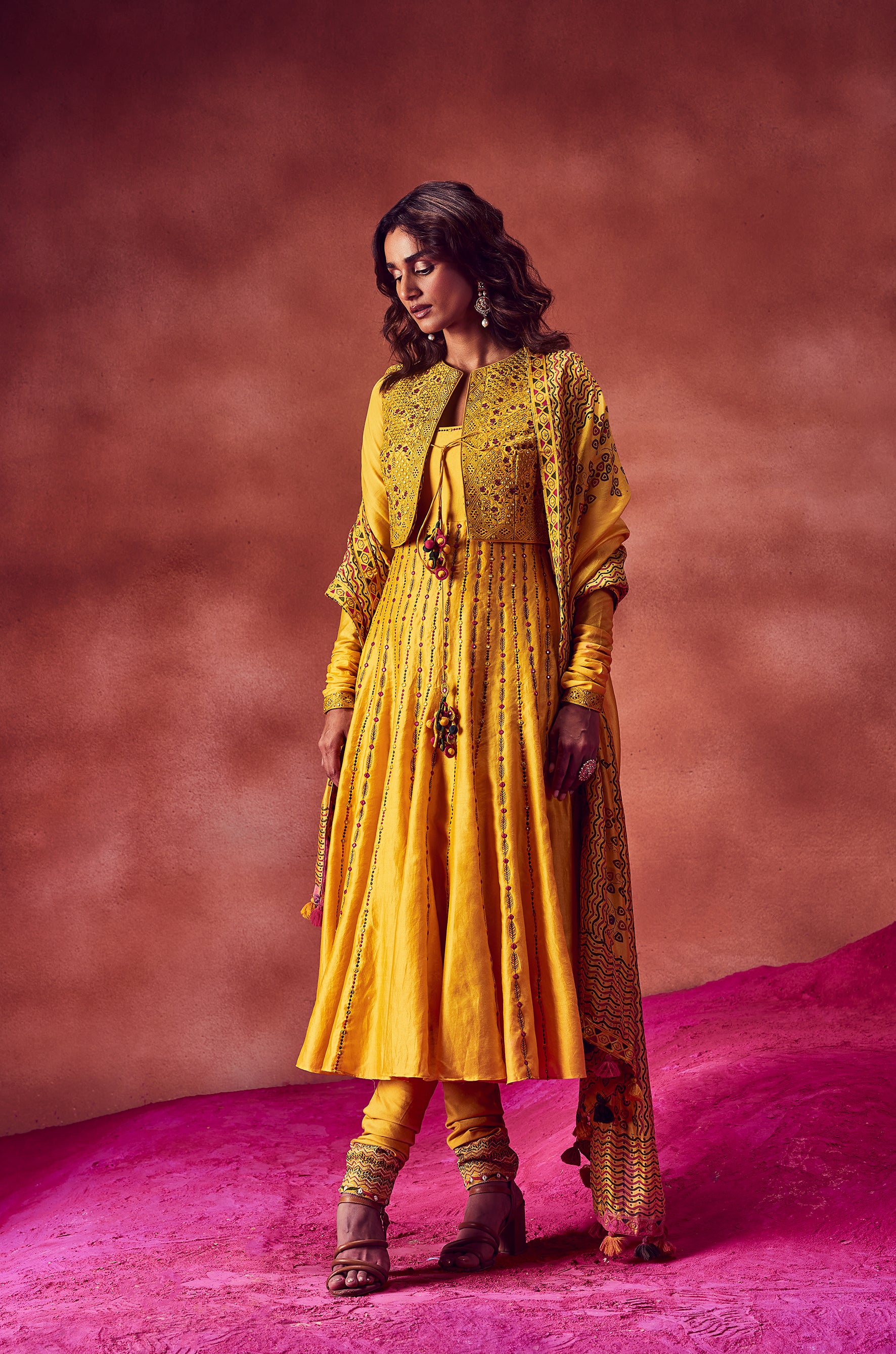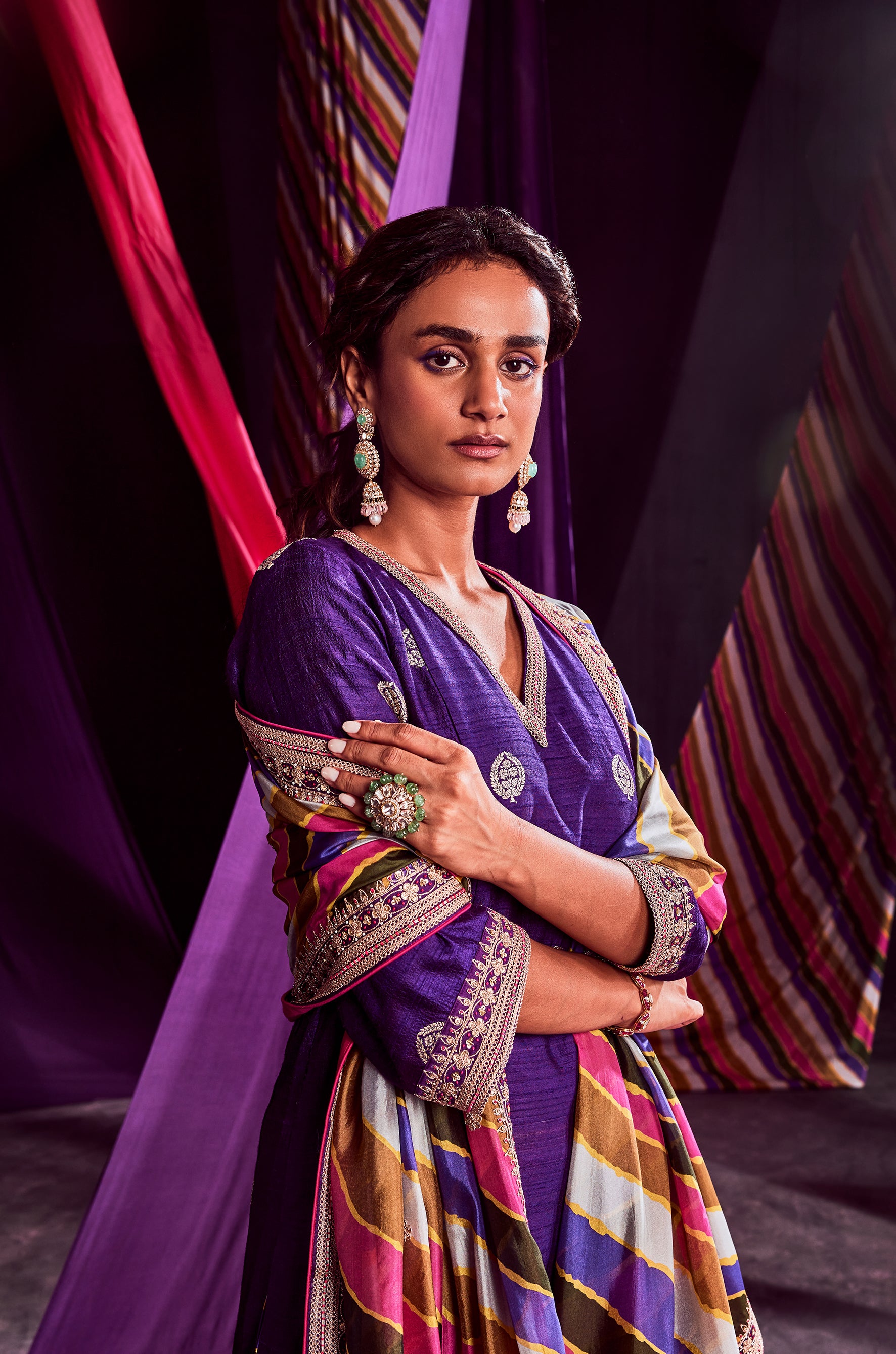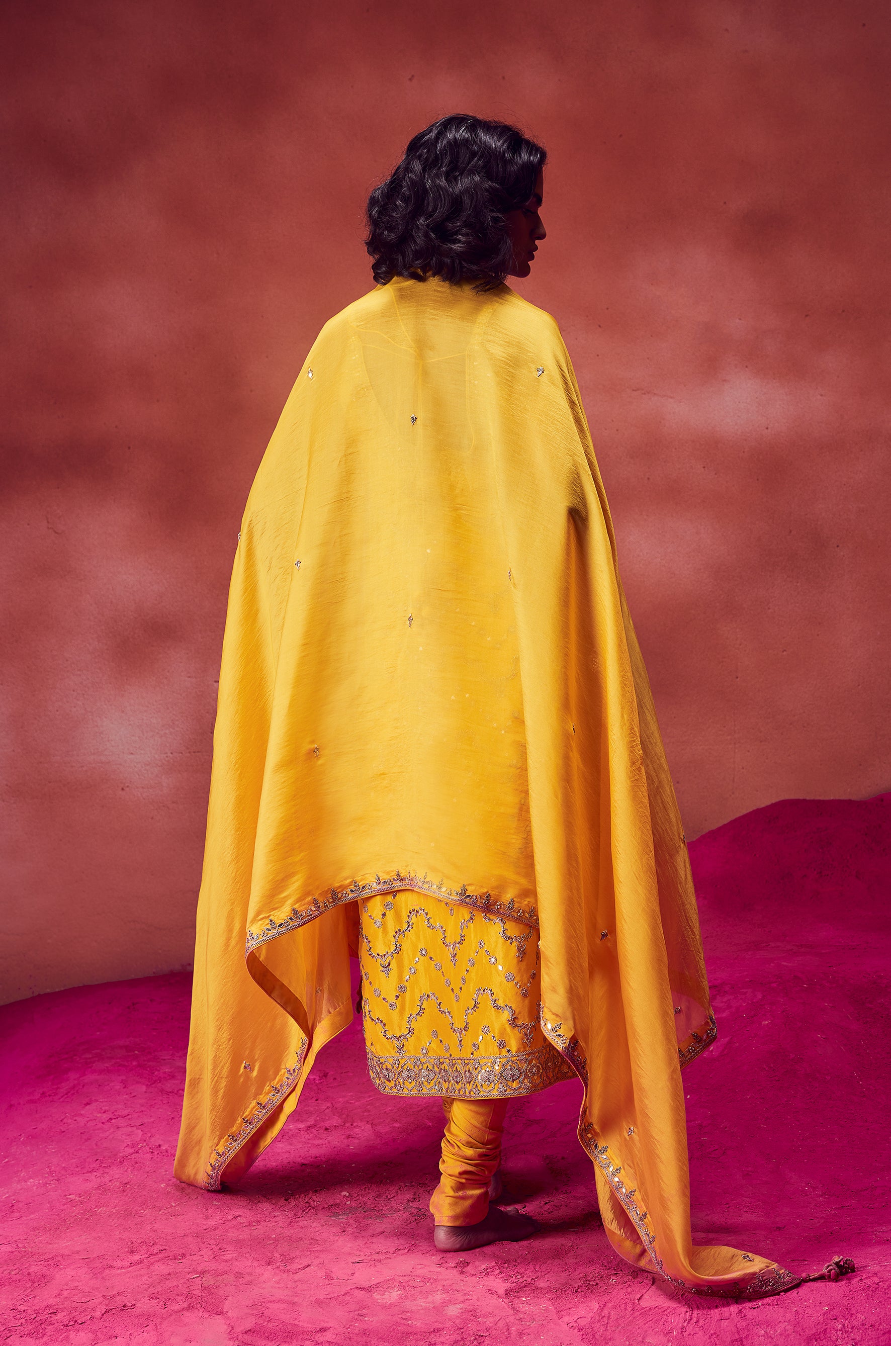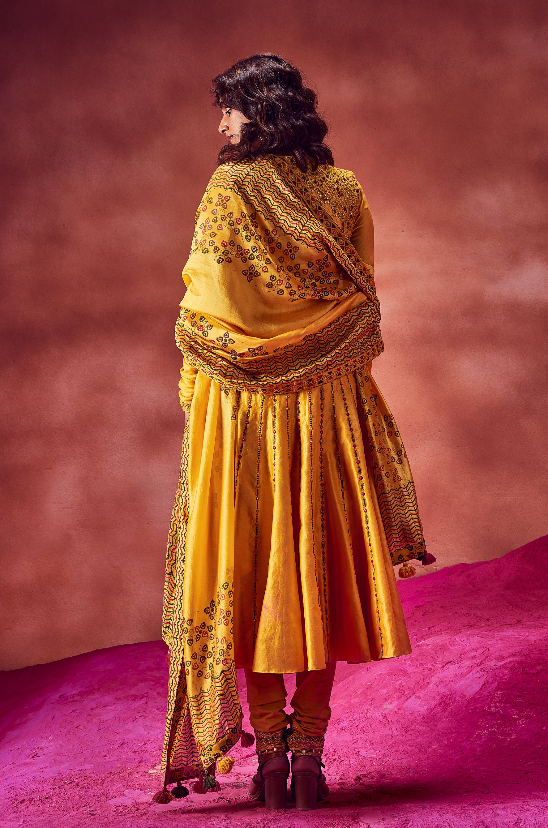 Banarasi Silk Kurta With Pants & Printed Dupatta