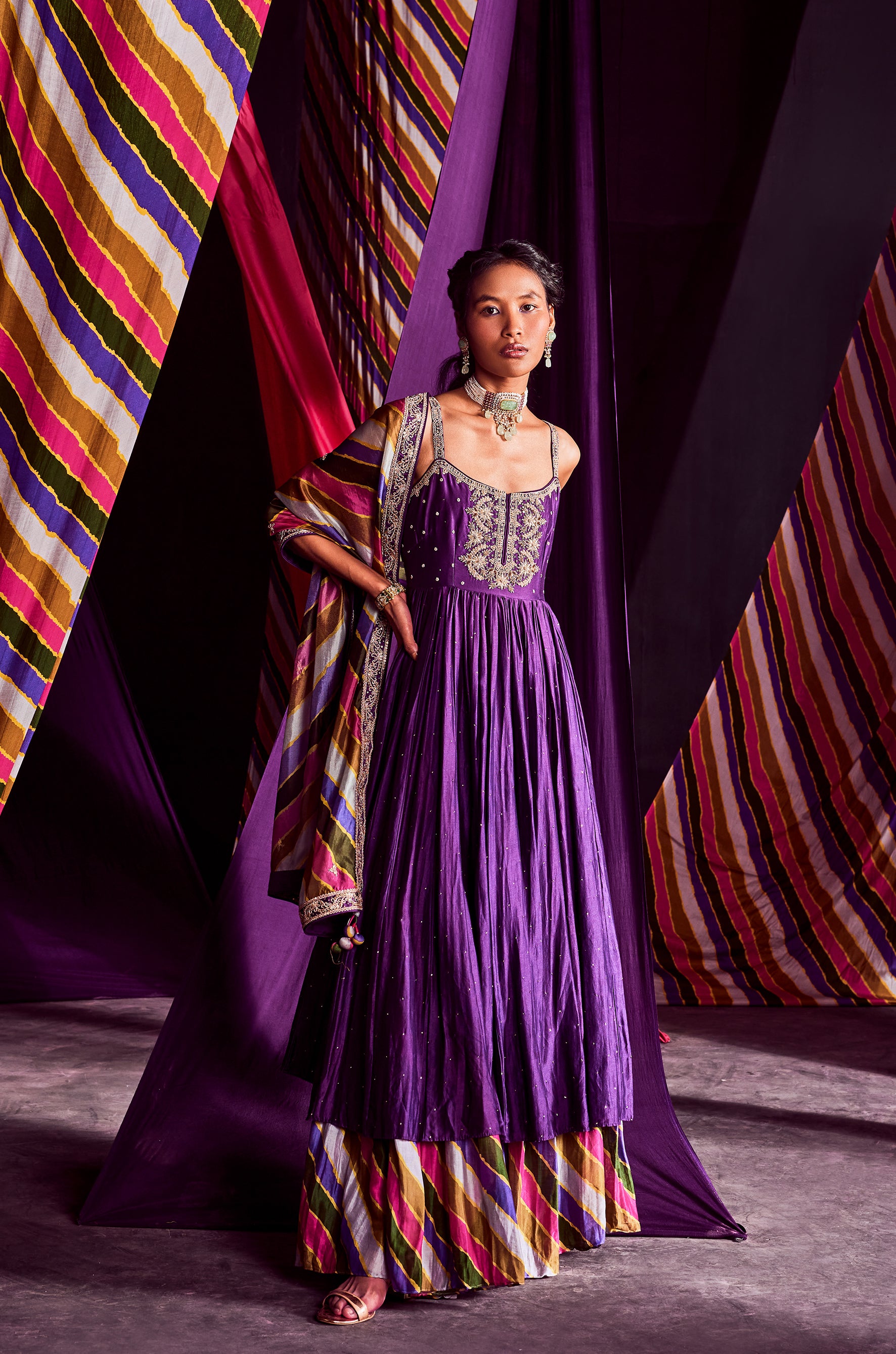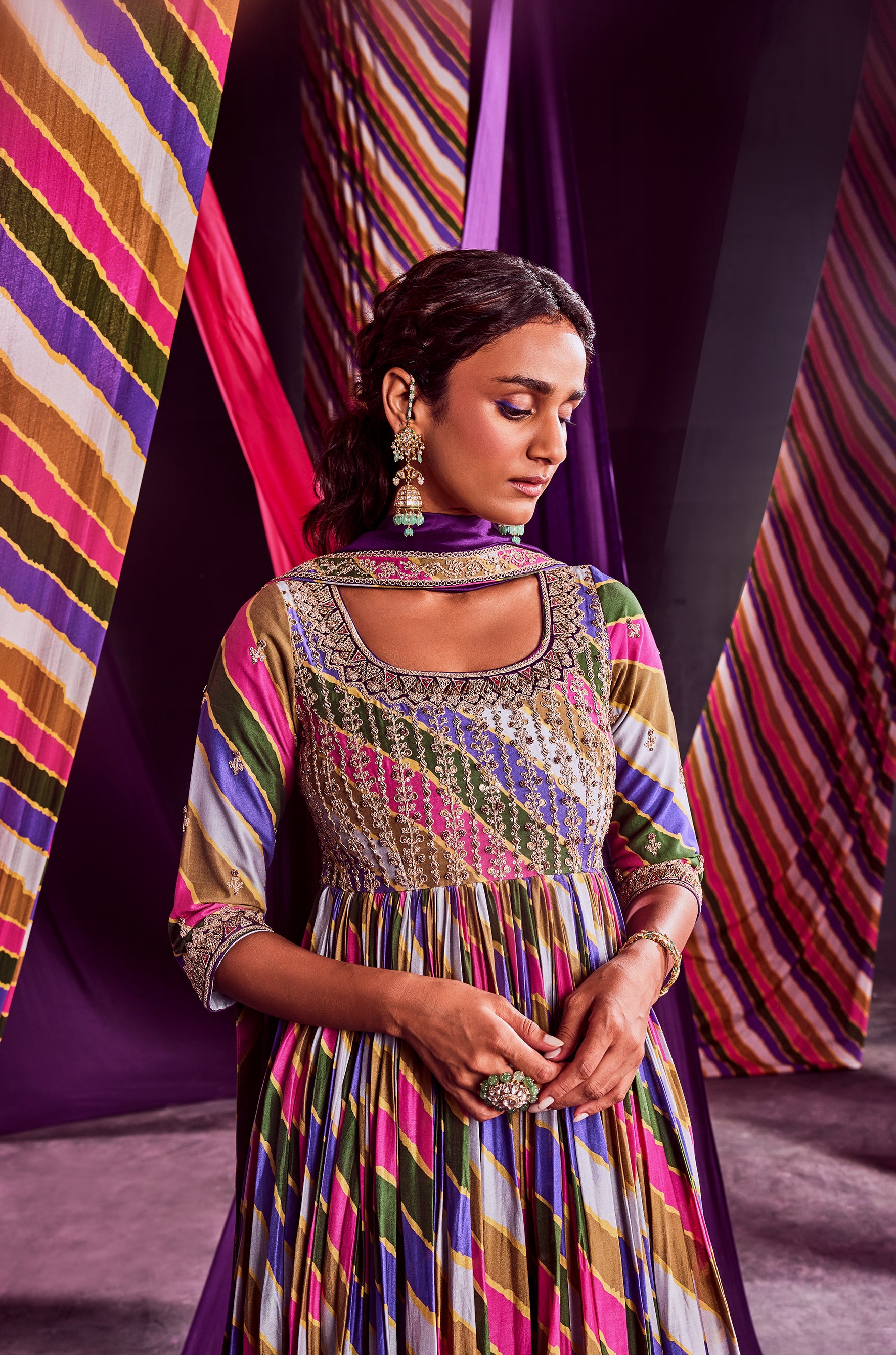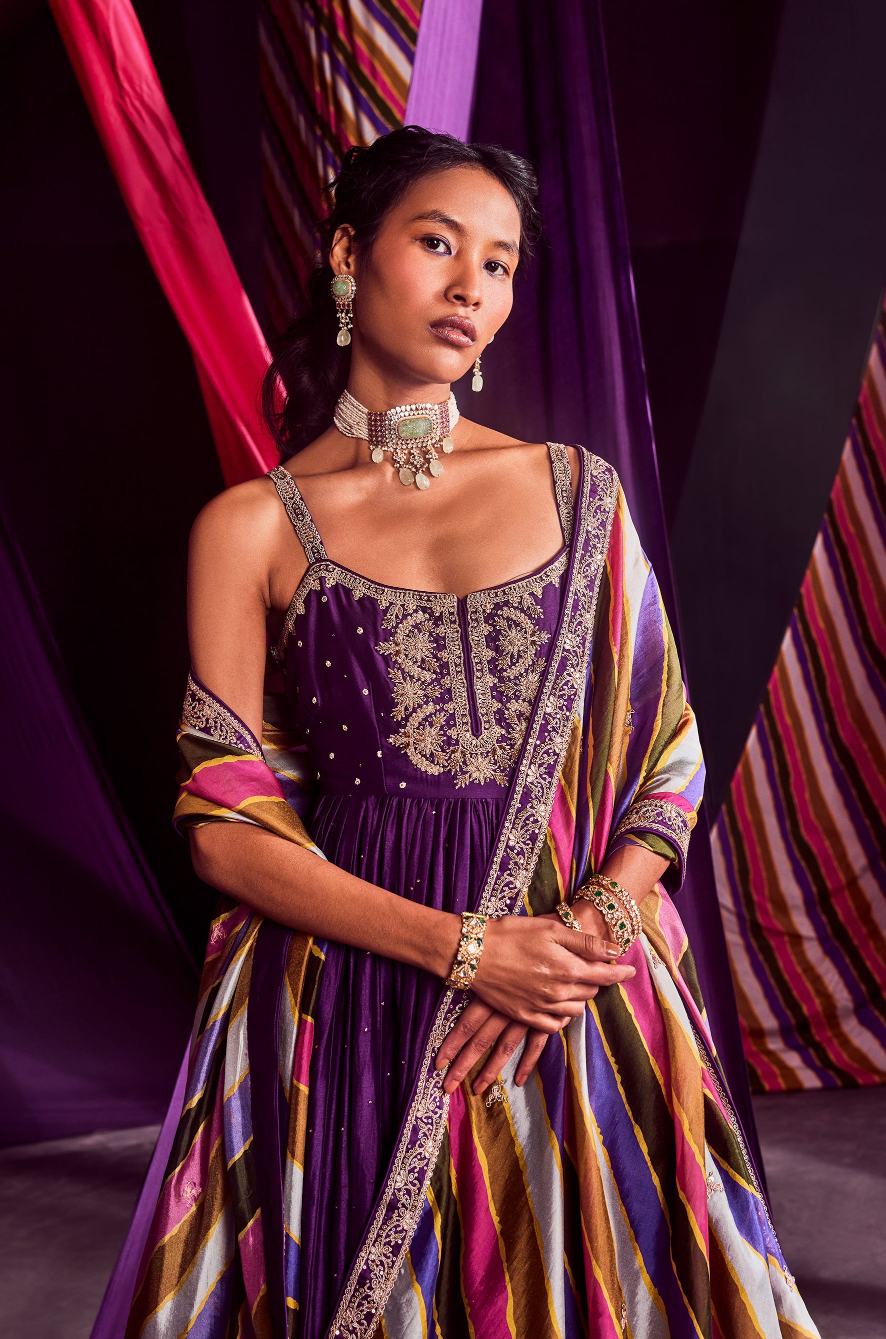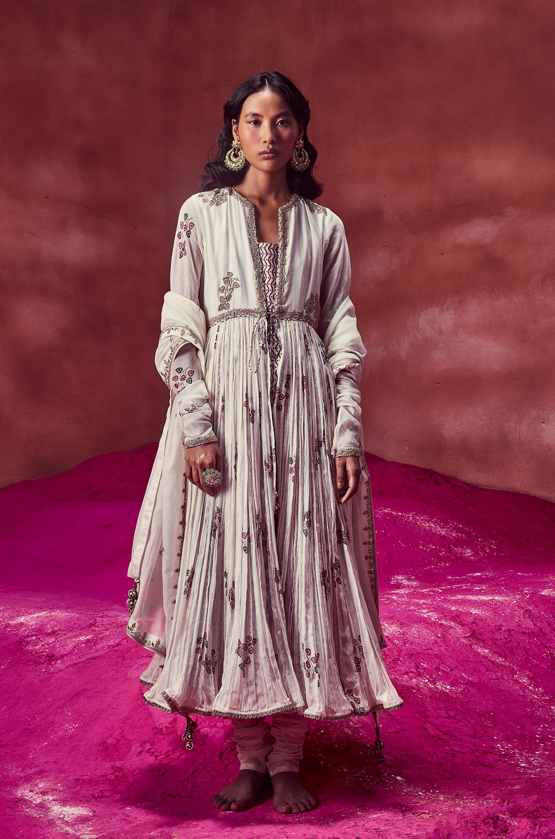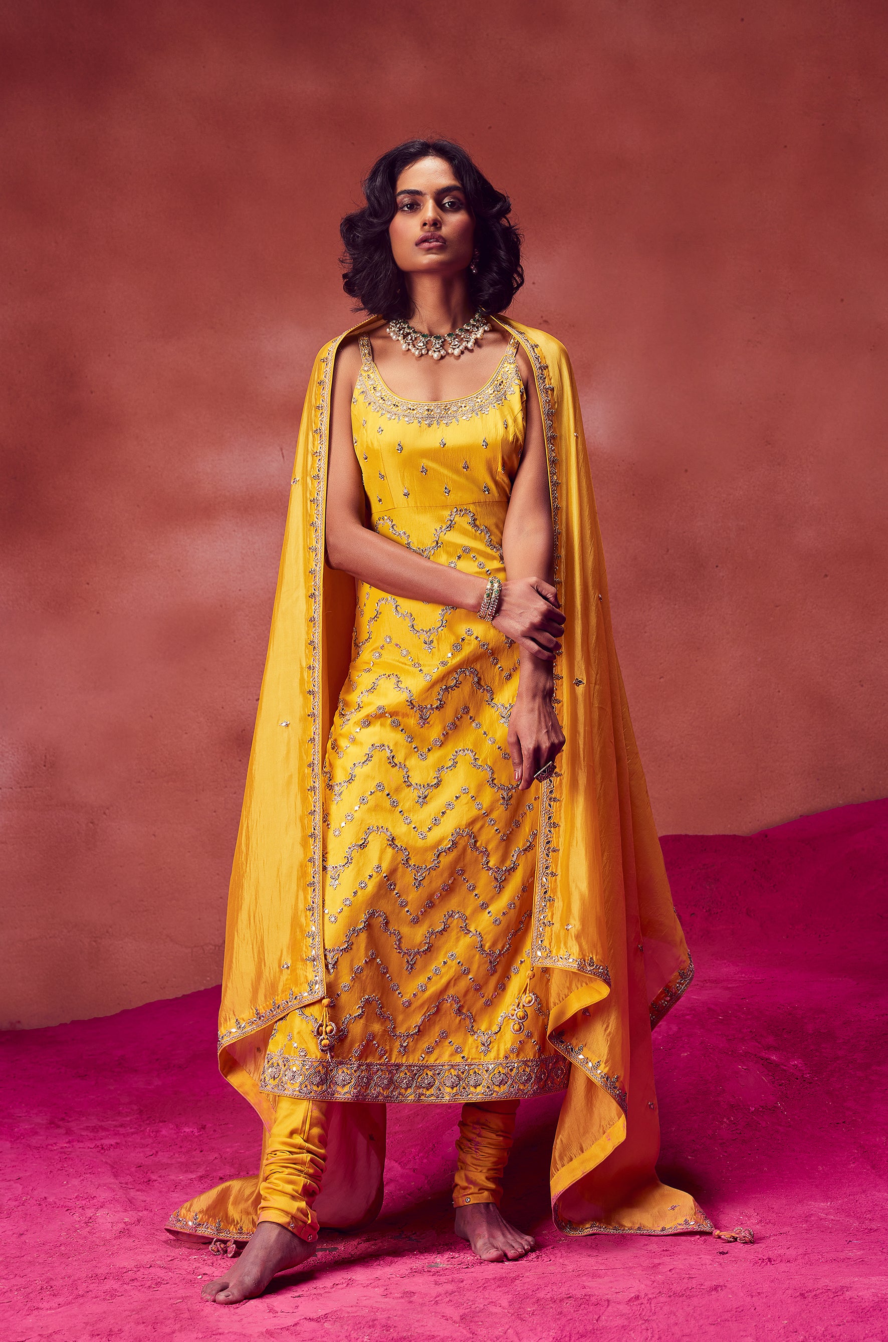 Banarasi Silk Kurta With Pants & Printed Dupatta