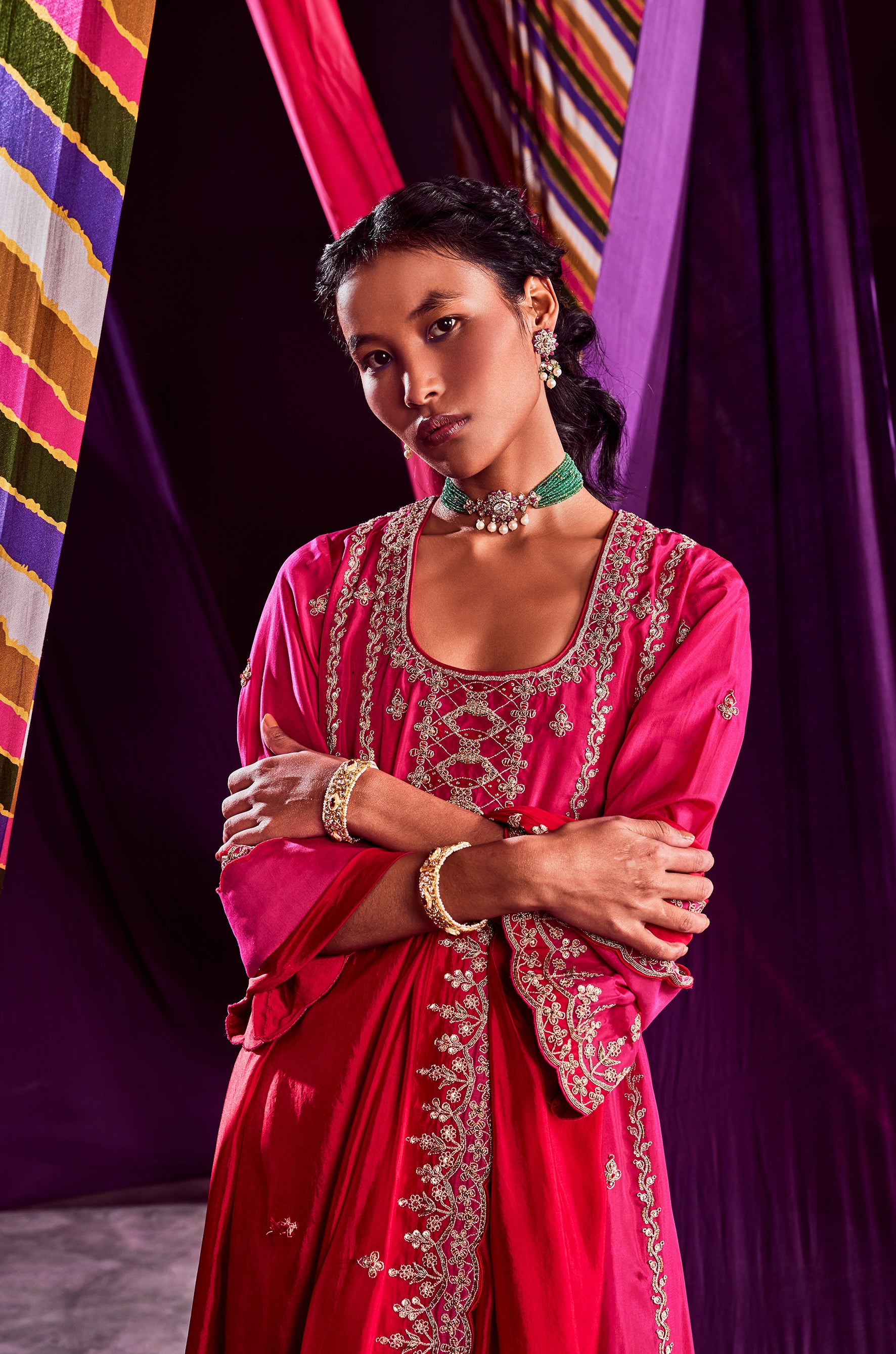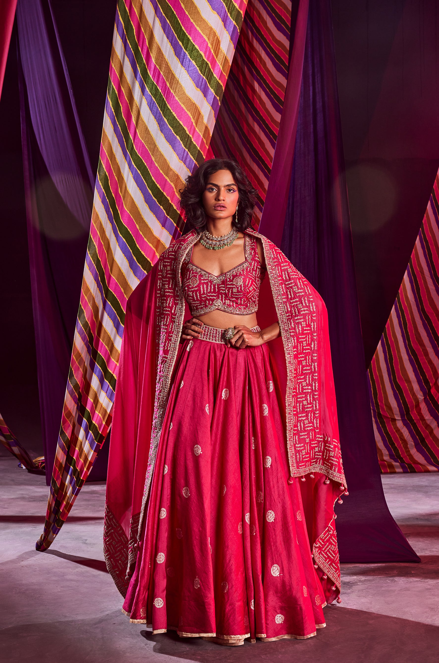 Rani Pink Heavy Lehenga Paired With Blouse & Dupatta