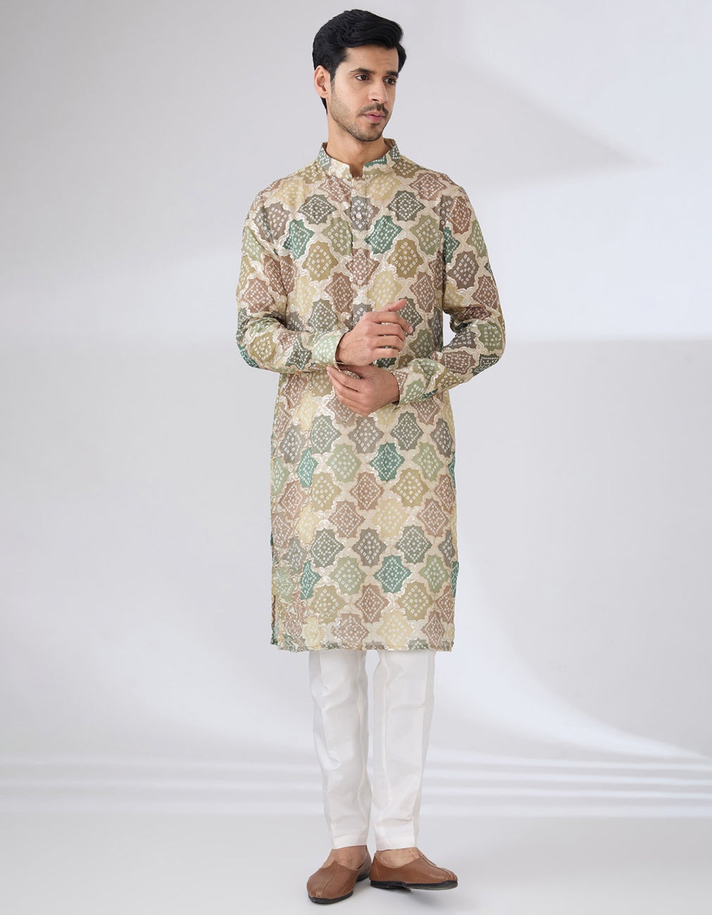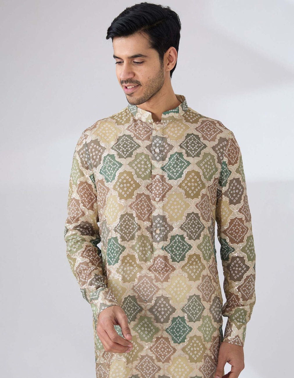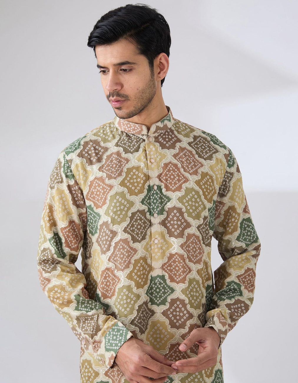 Multi Green Bandhni Kurta Set