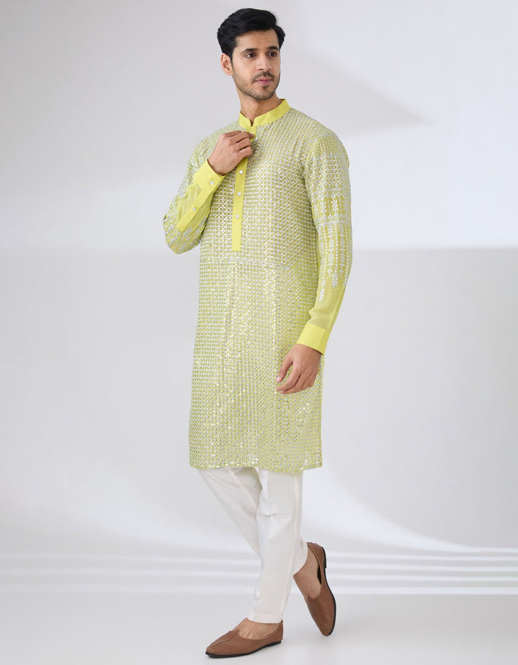 Neon Yellow Georgette Kurta Set