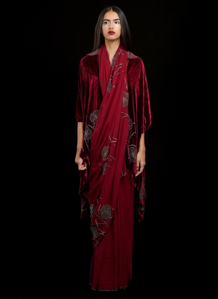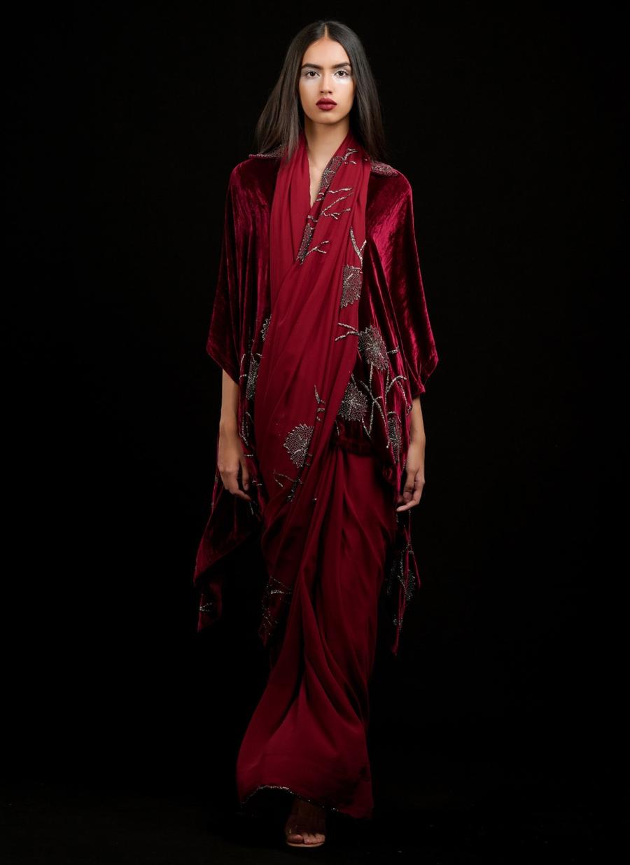 Elegant Indigo Linen Tunic Set with Double Layer and Embroidered Sleeves