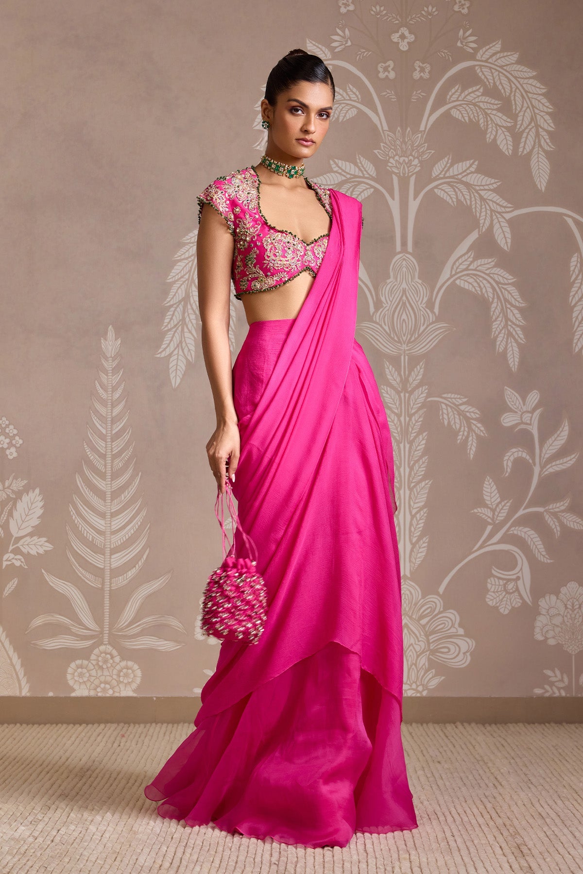 Elegant Lavender Pleated Tunic Set with Discharge Print & Embroidered Sleeves
