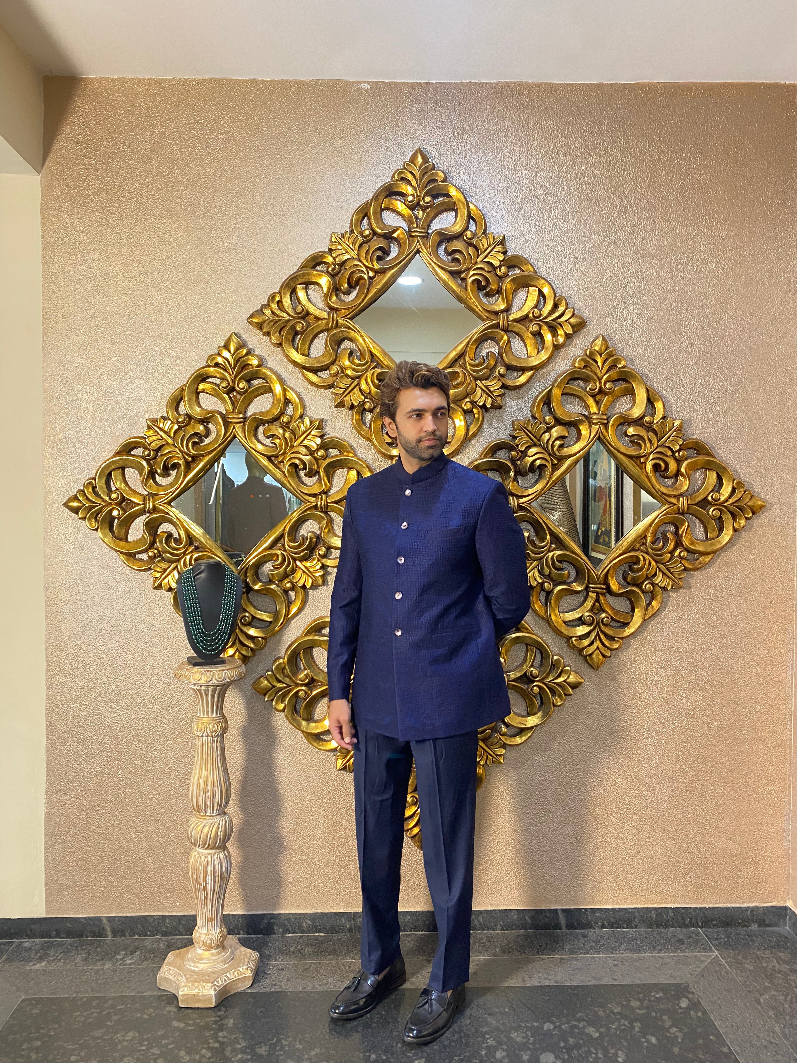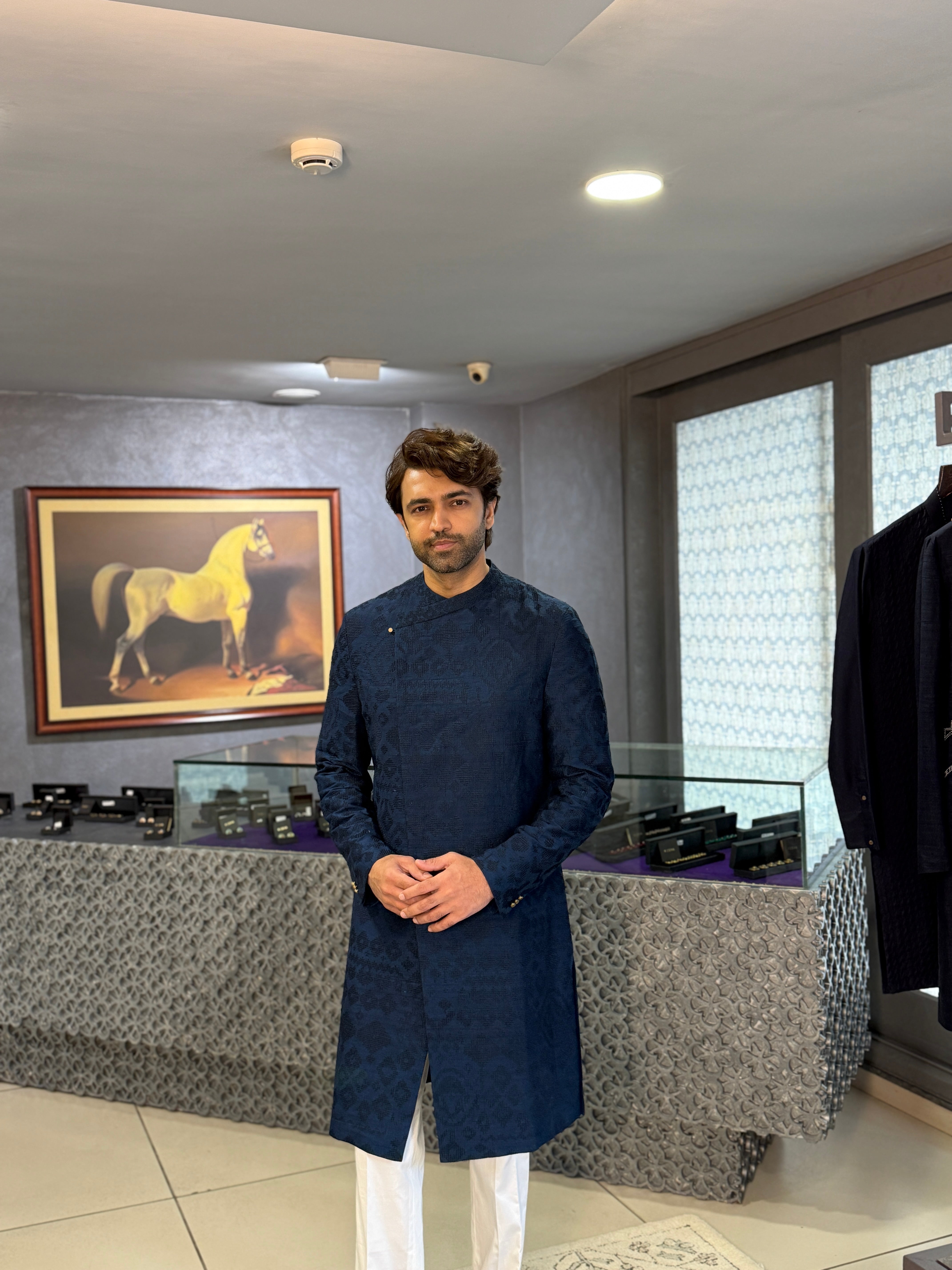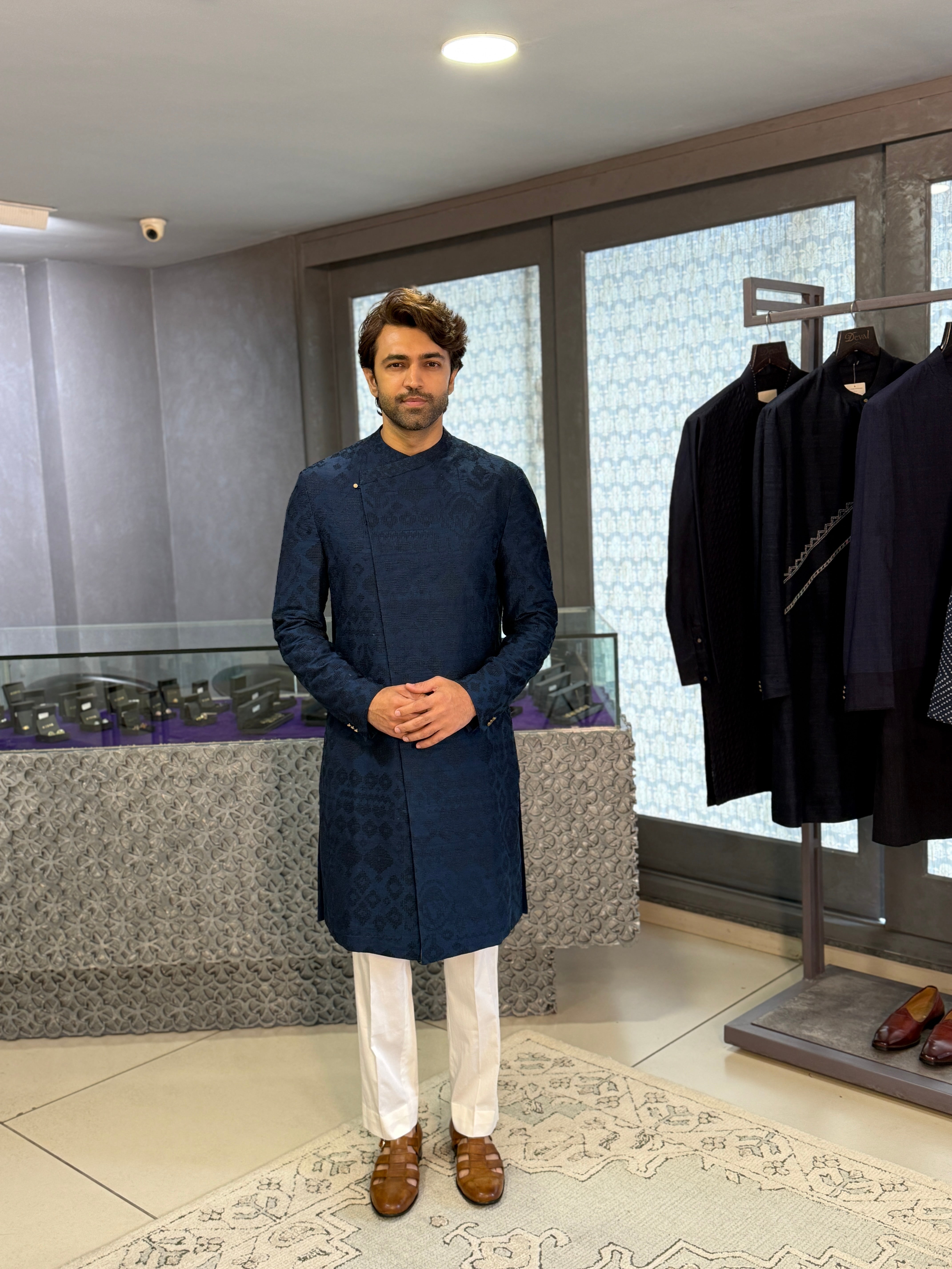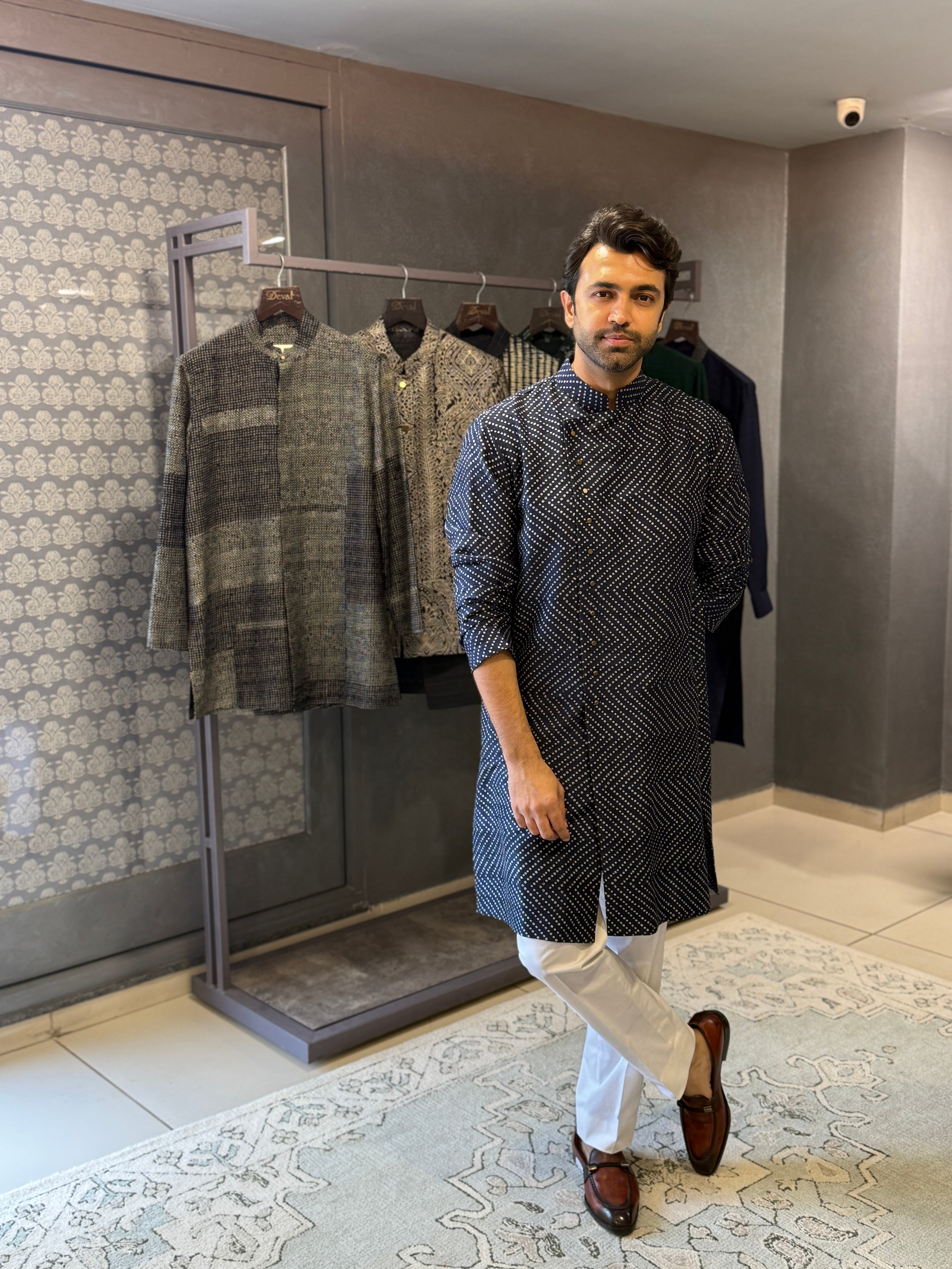Blue Raw Silk & Stretch Overlap Kurta Set