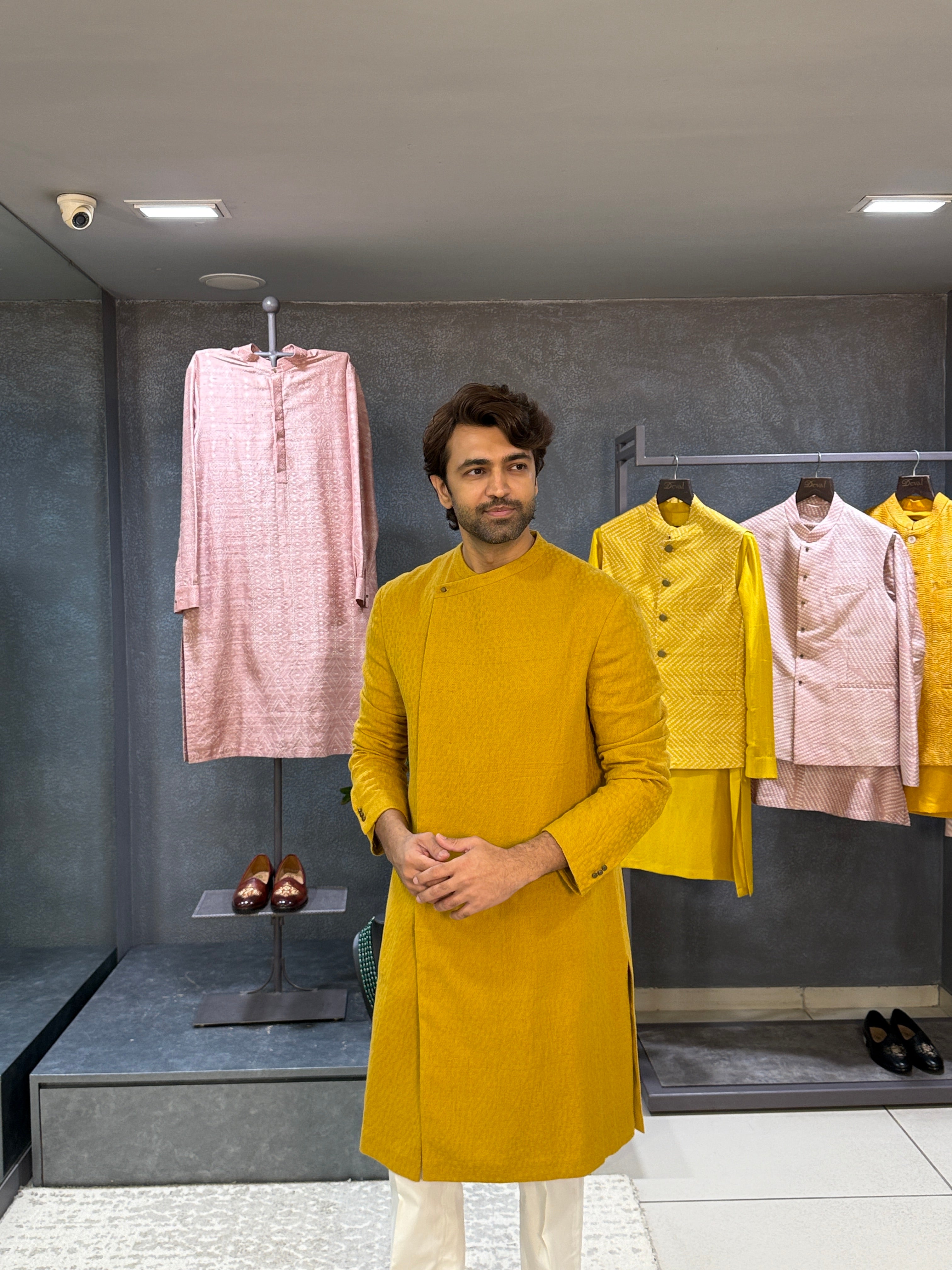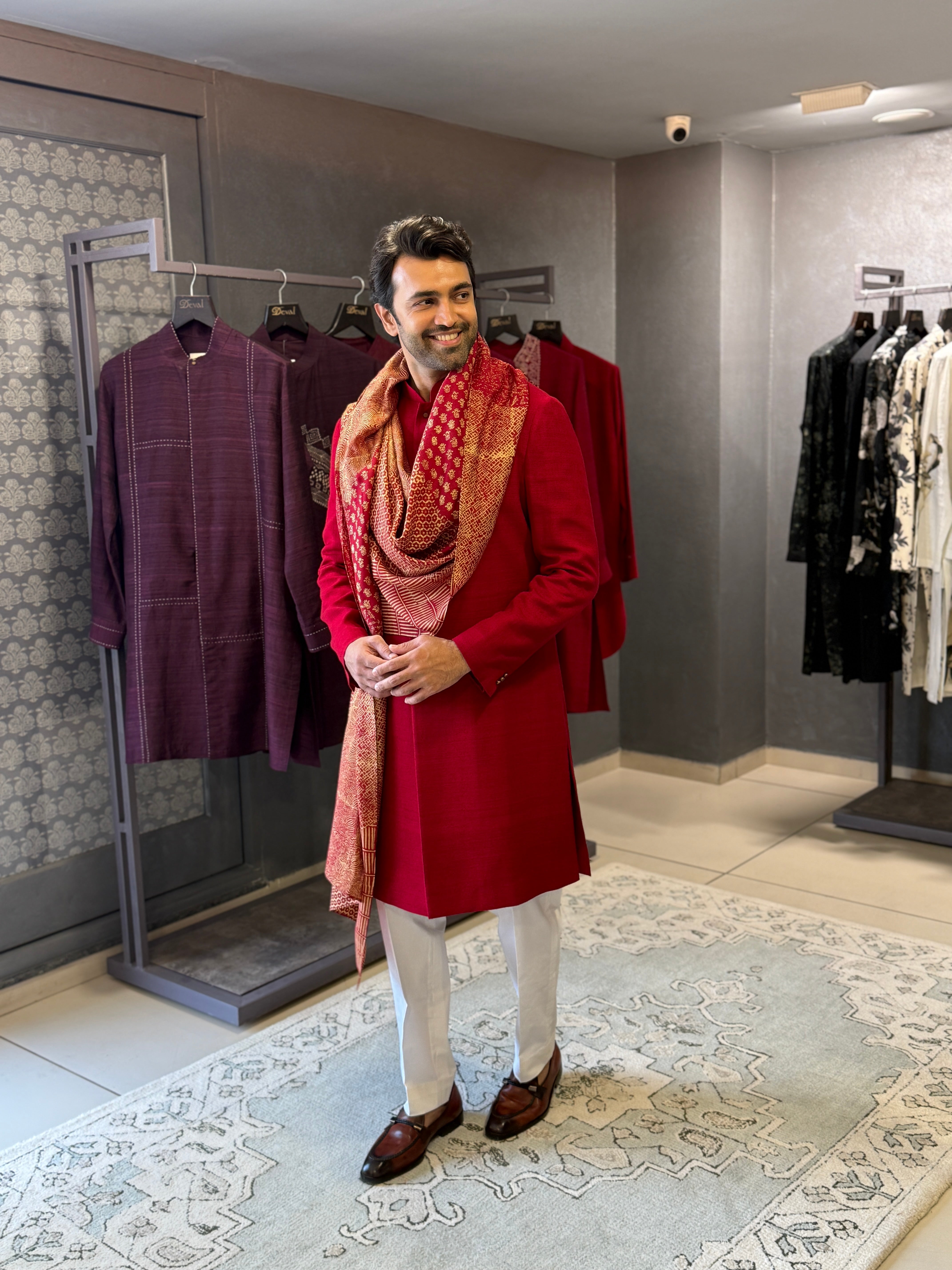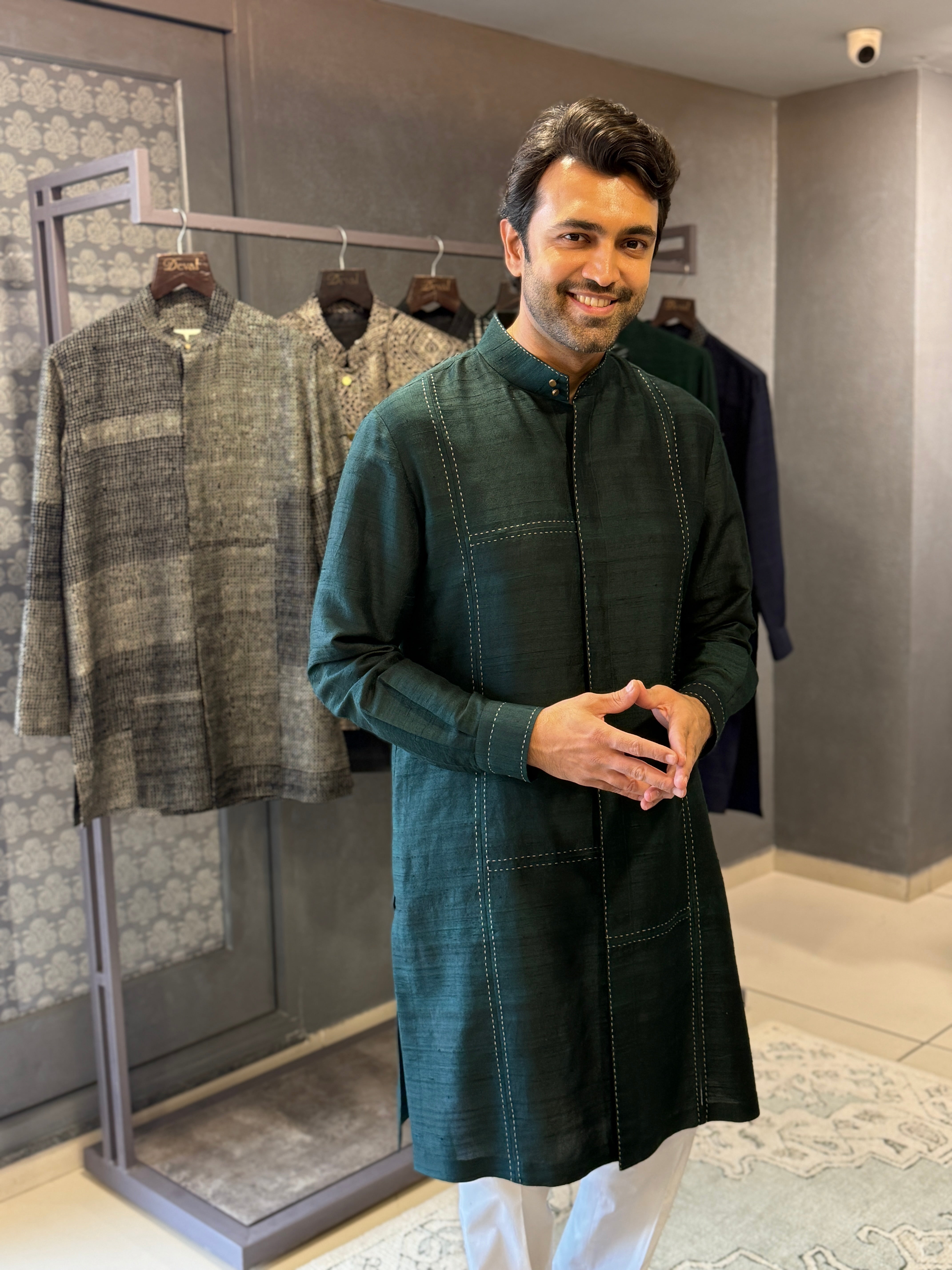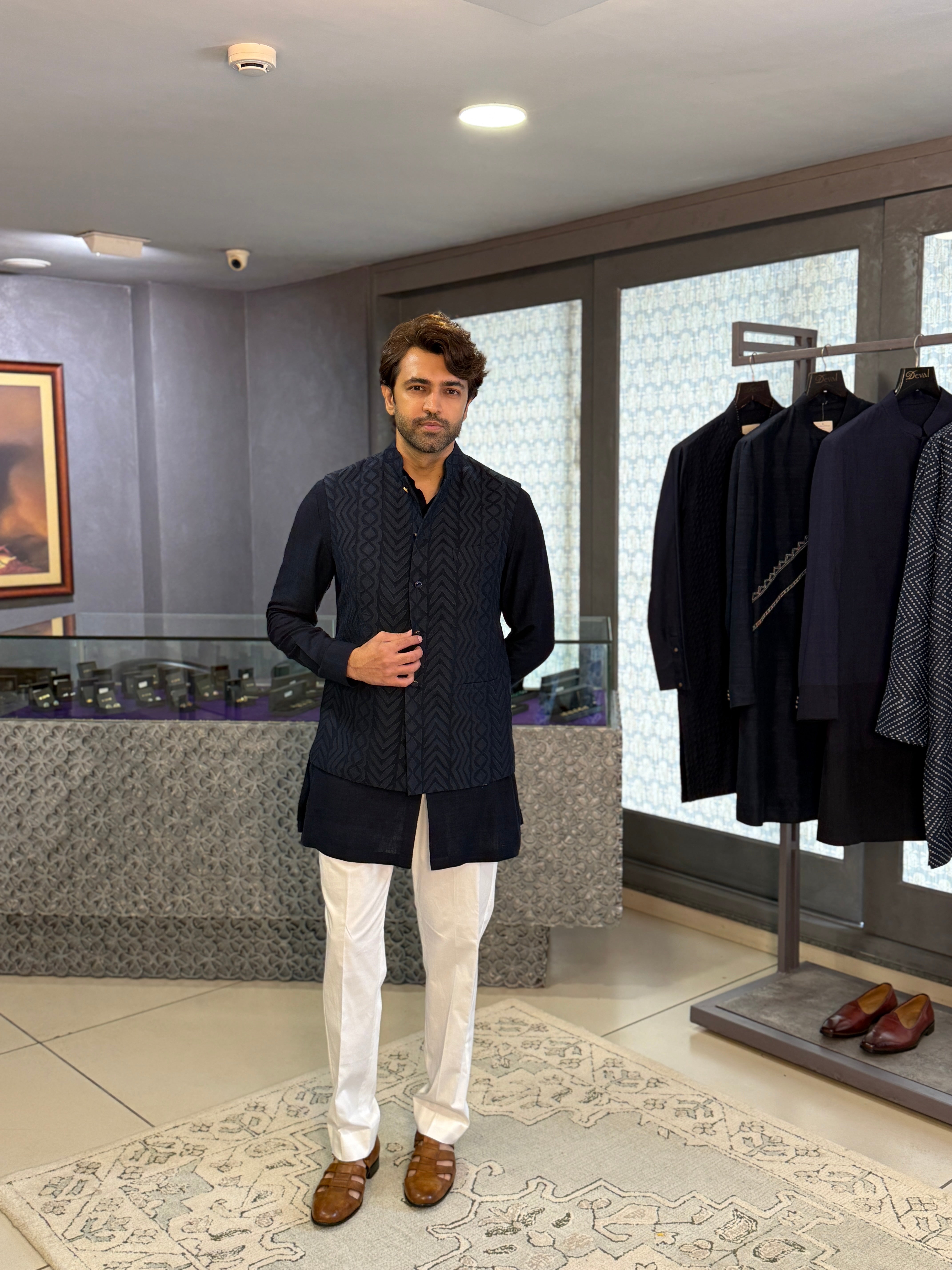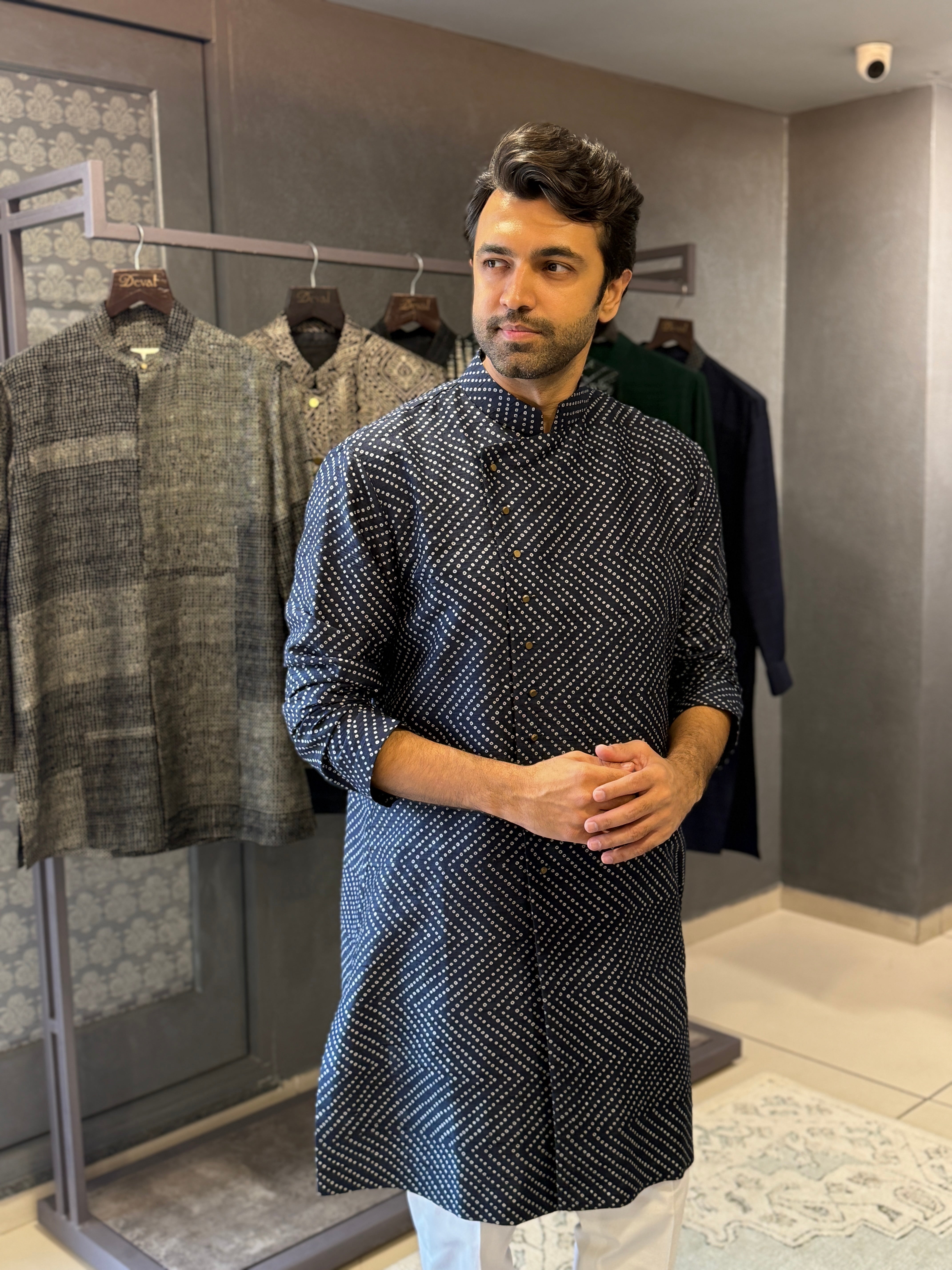 Blue Raw Silk & Stretch Overlap Kurta Set