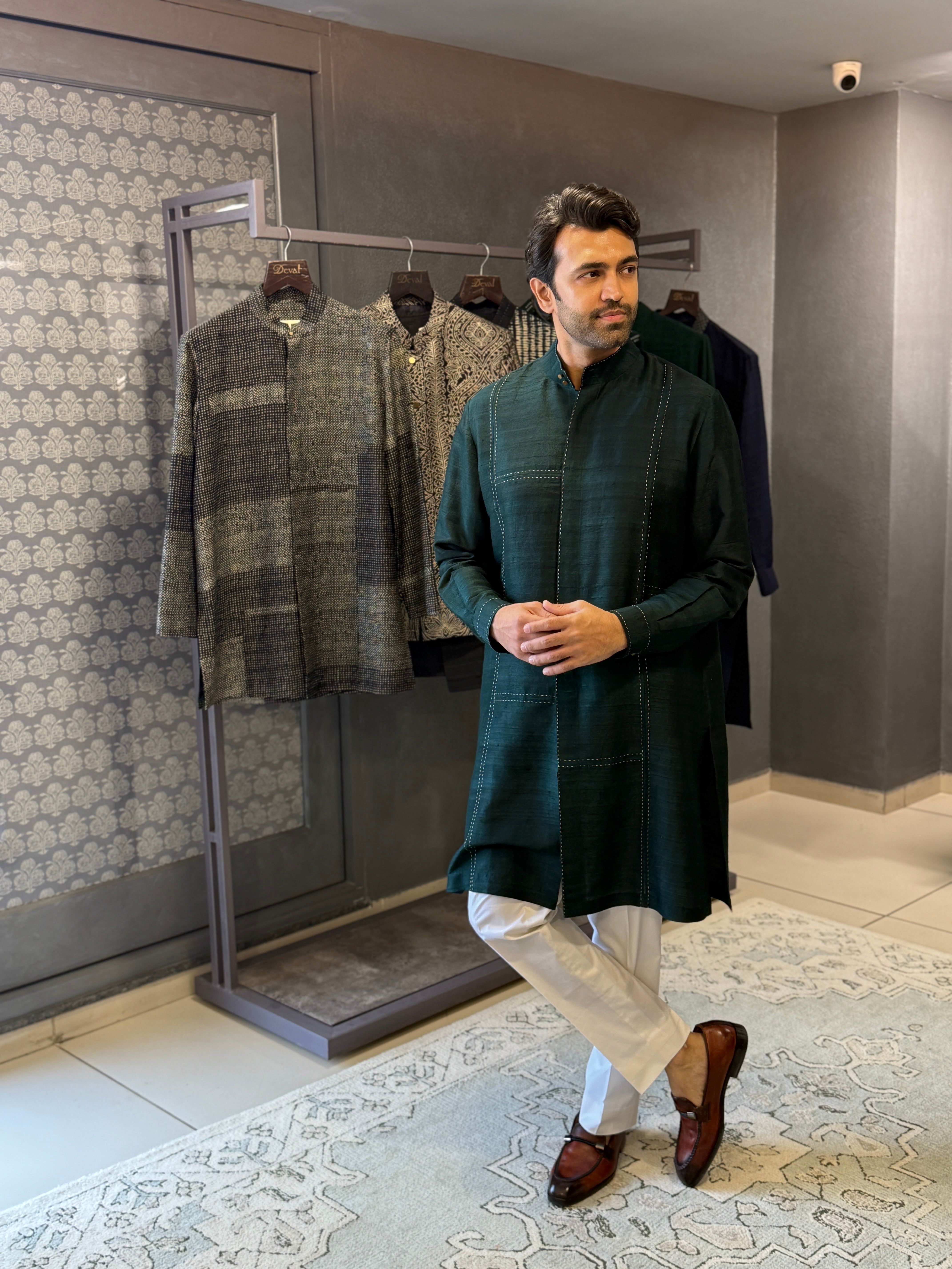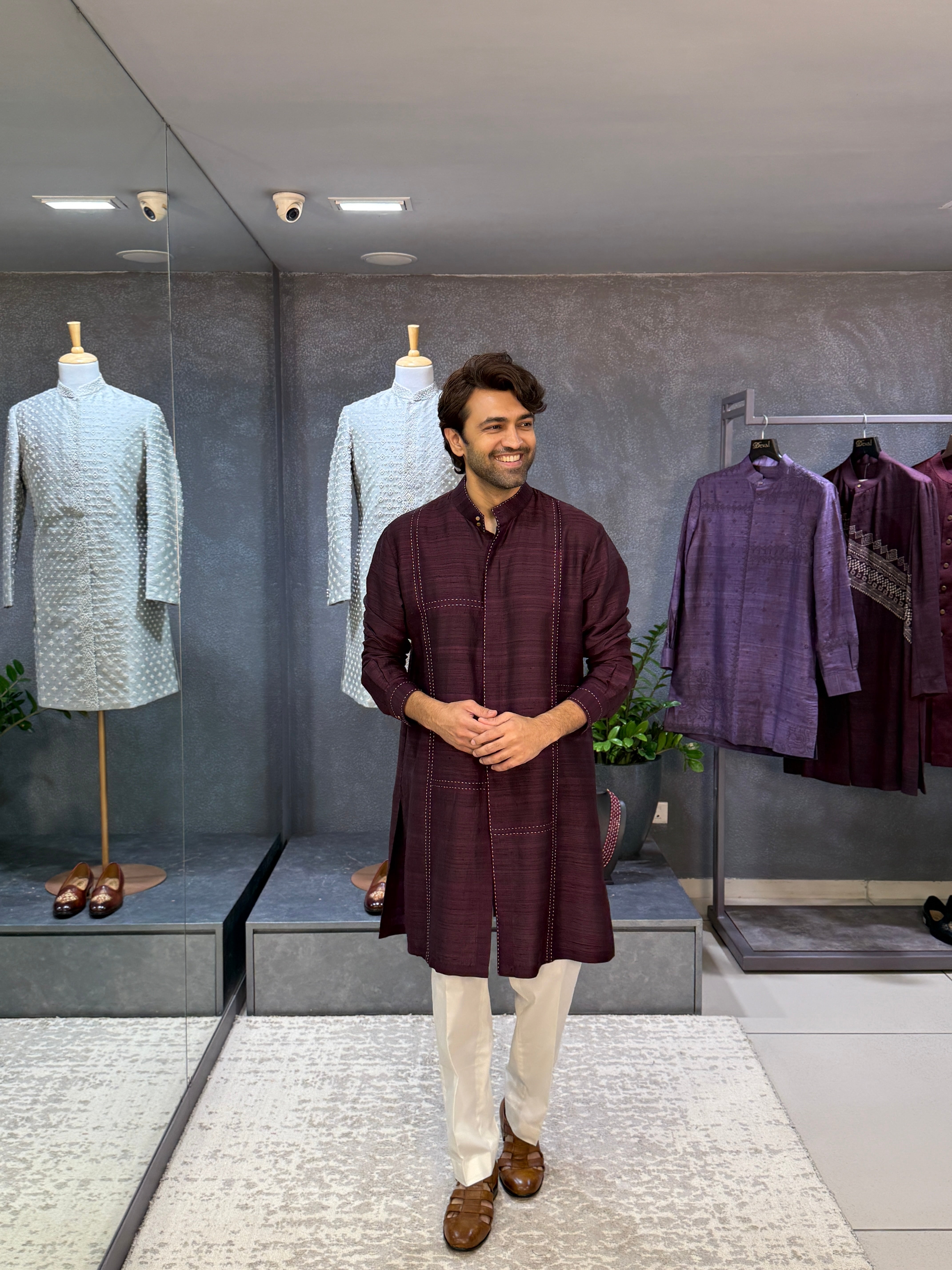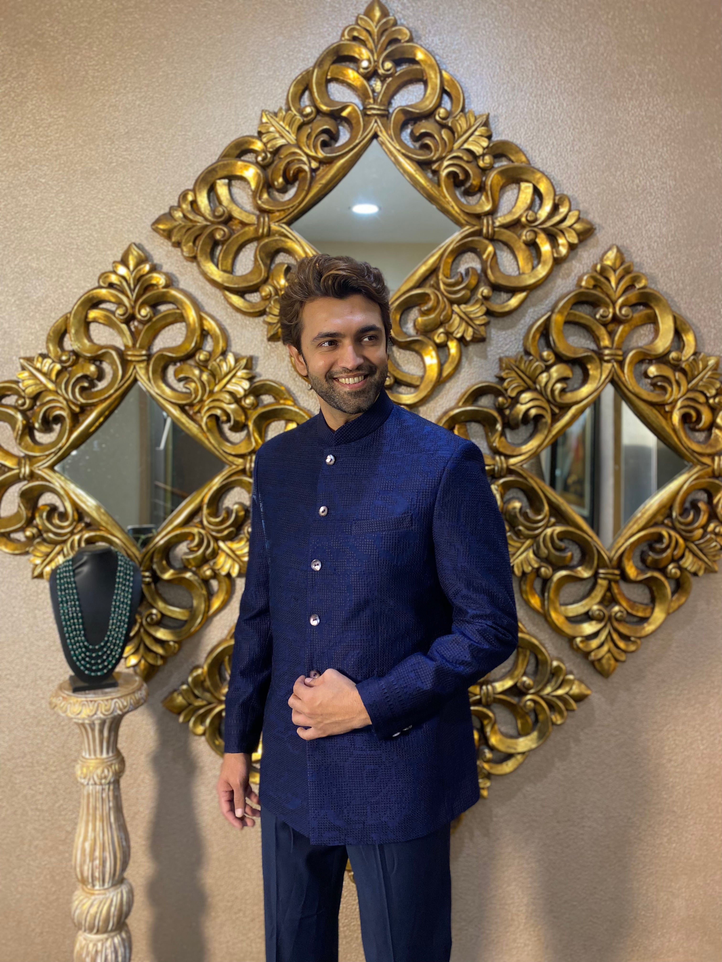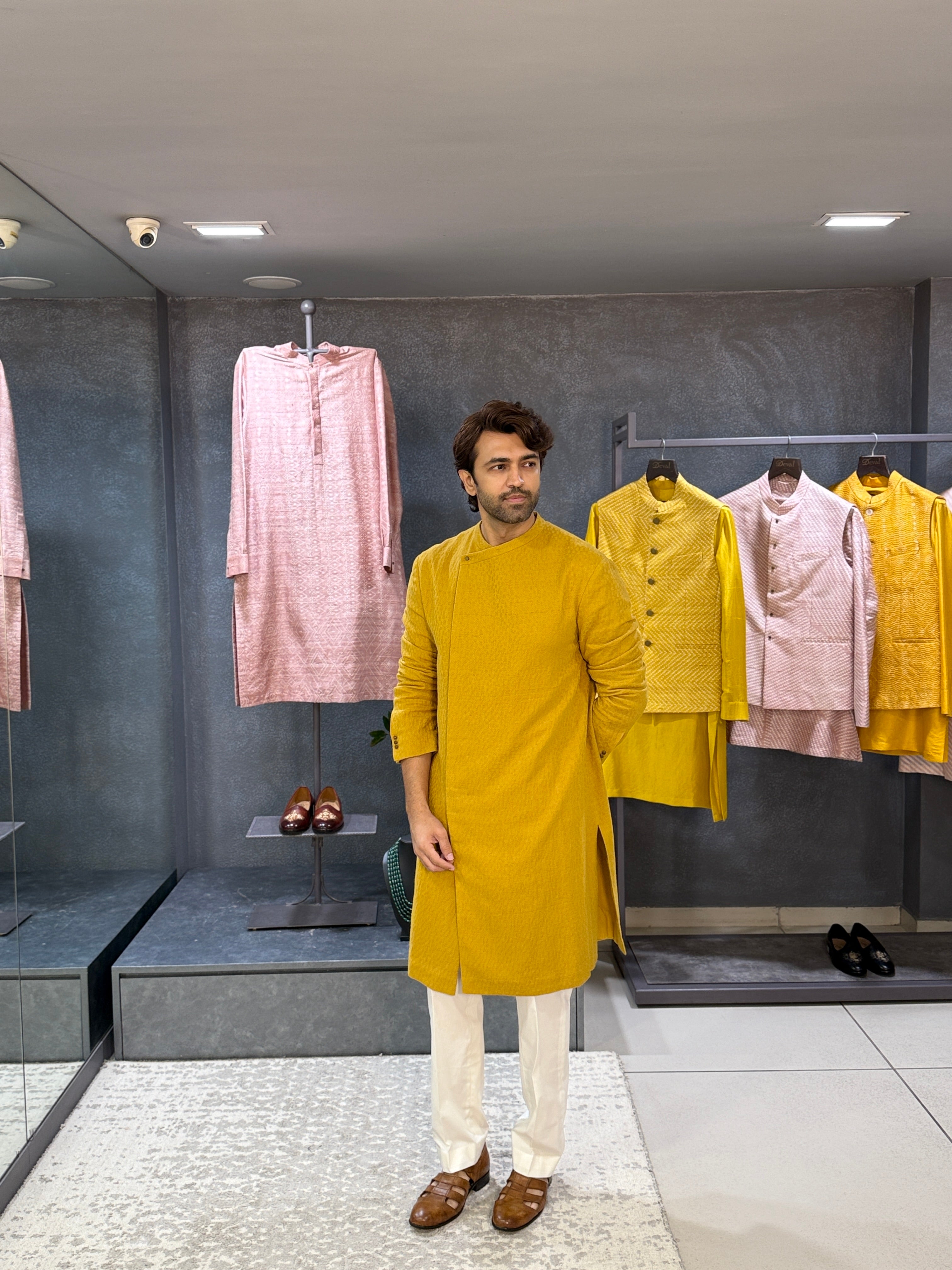 Blue Raw Silk & Stretch Overlap Kurta Set