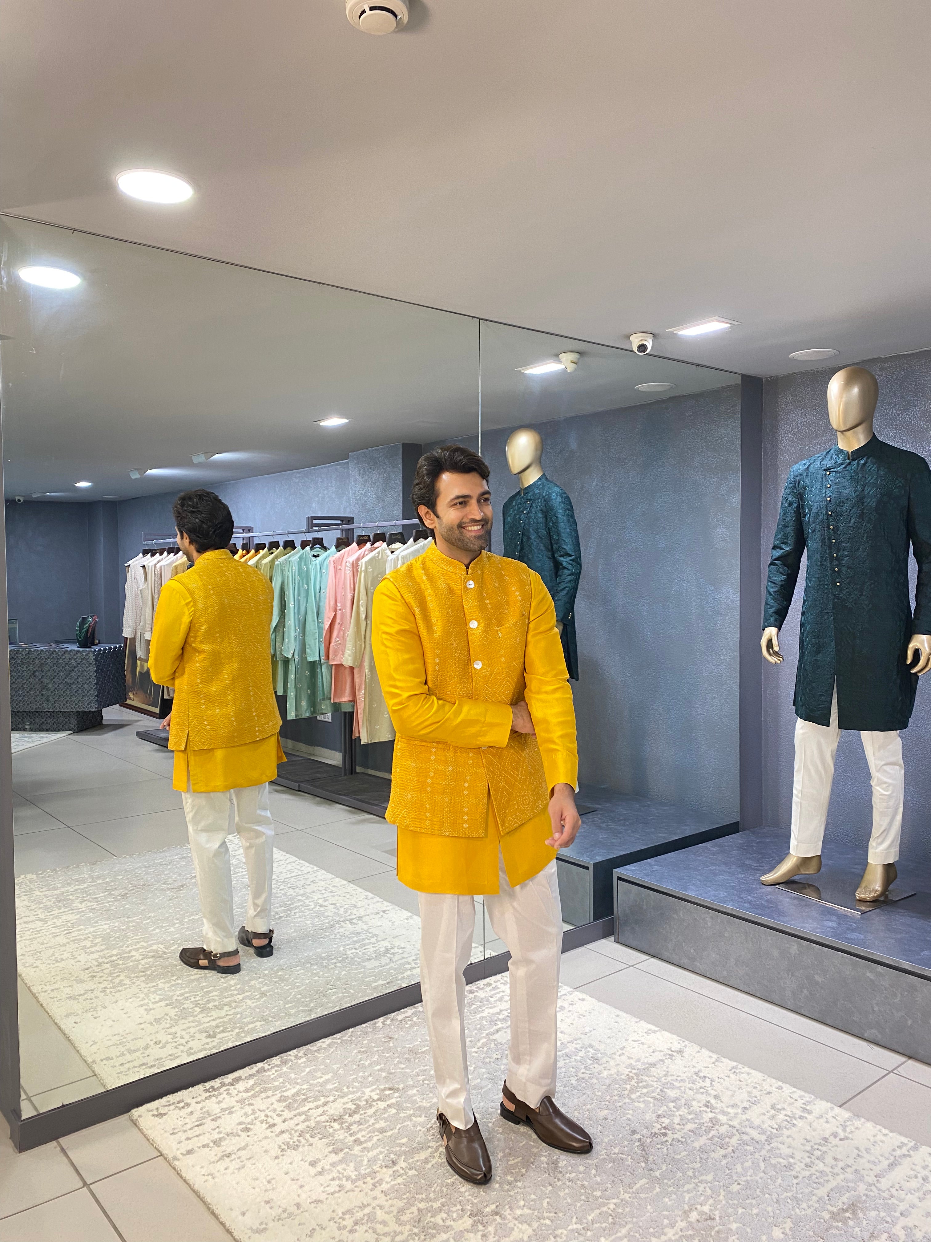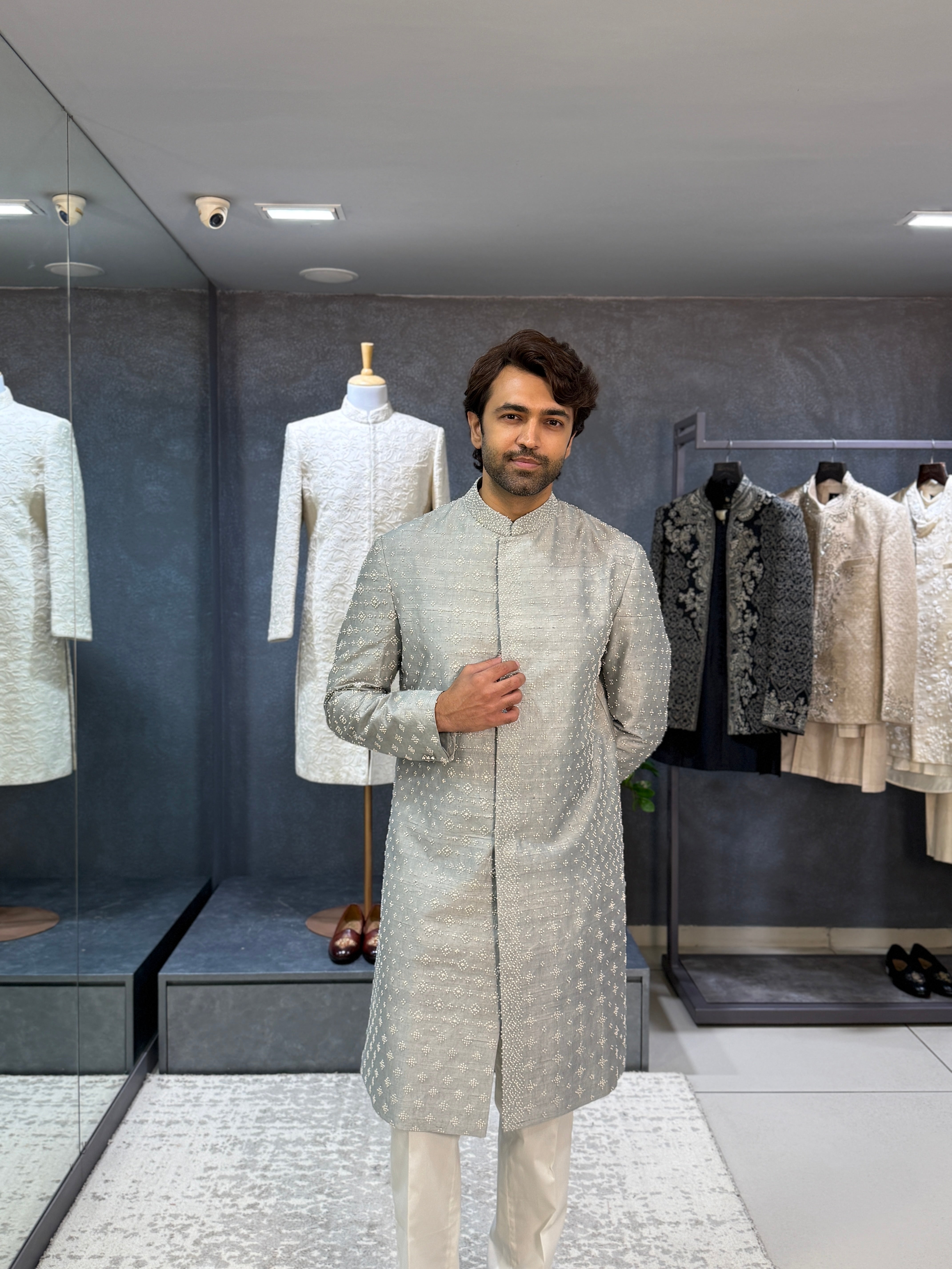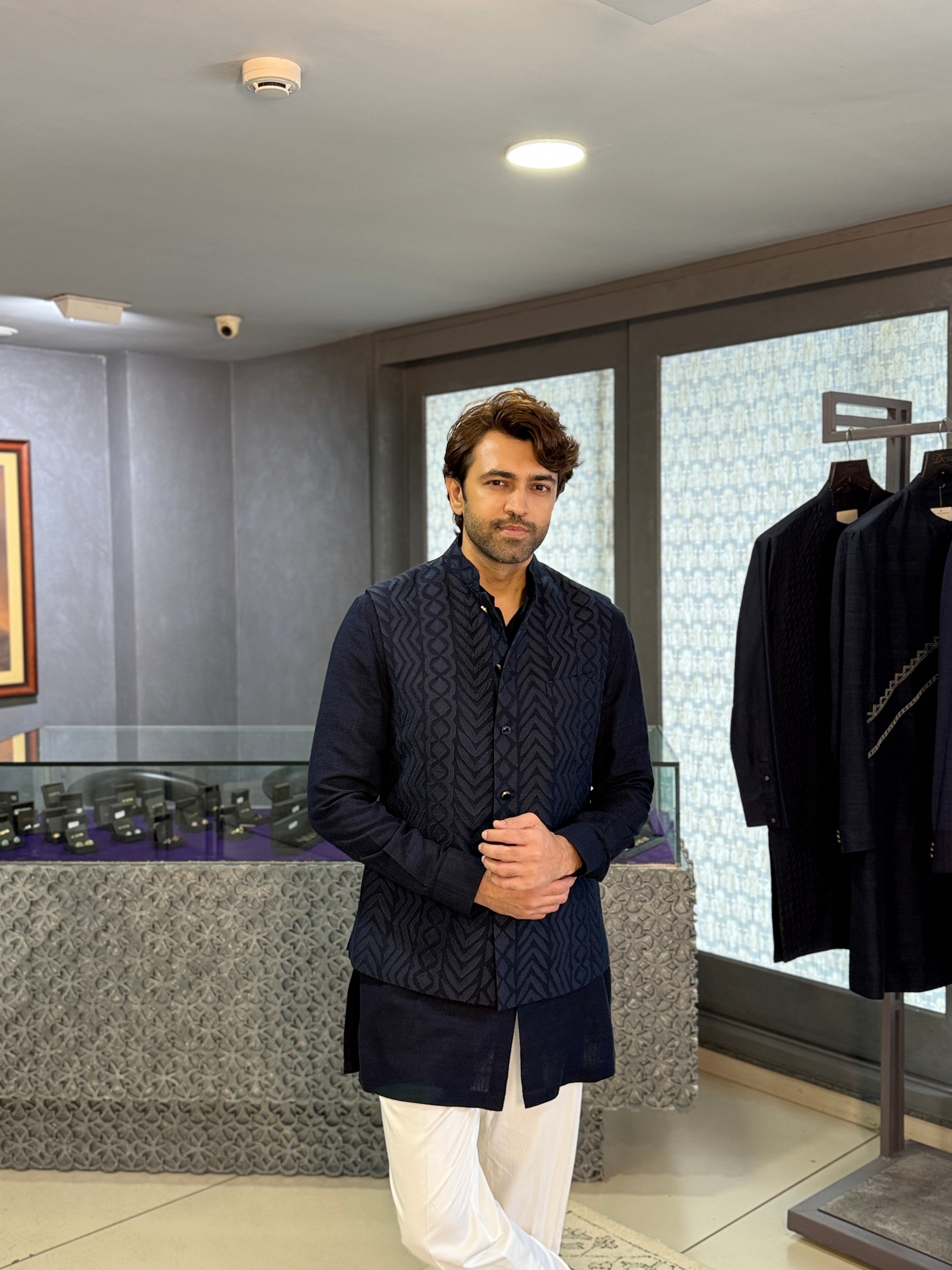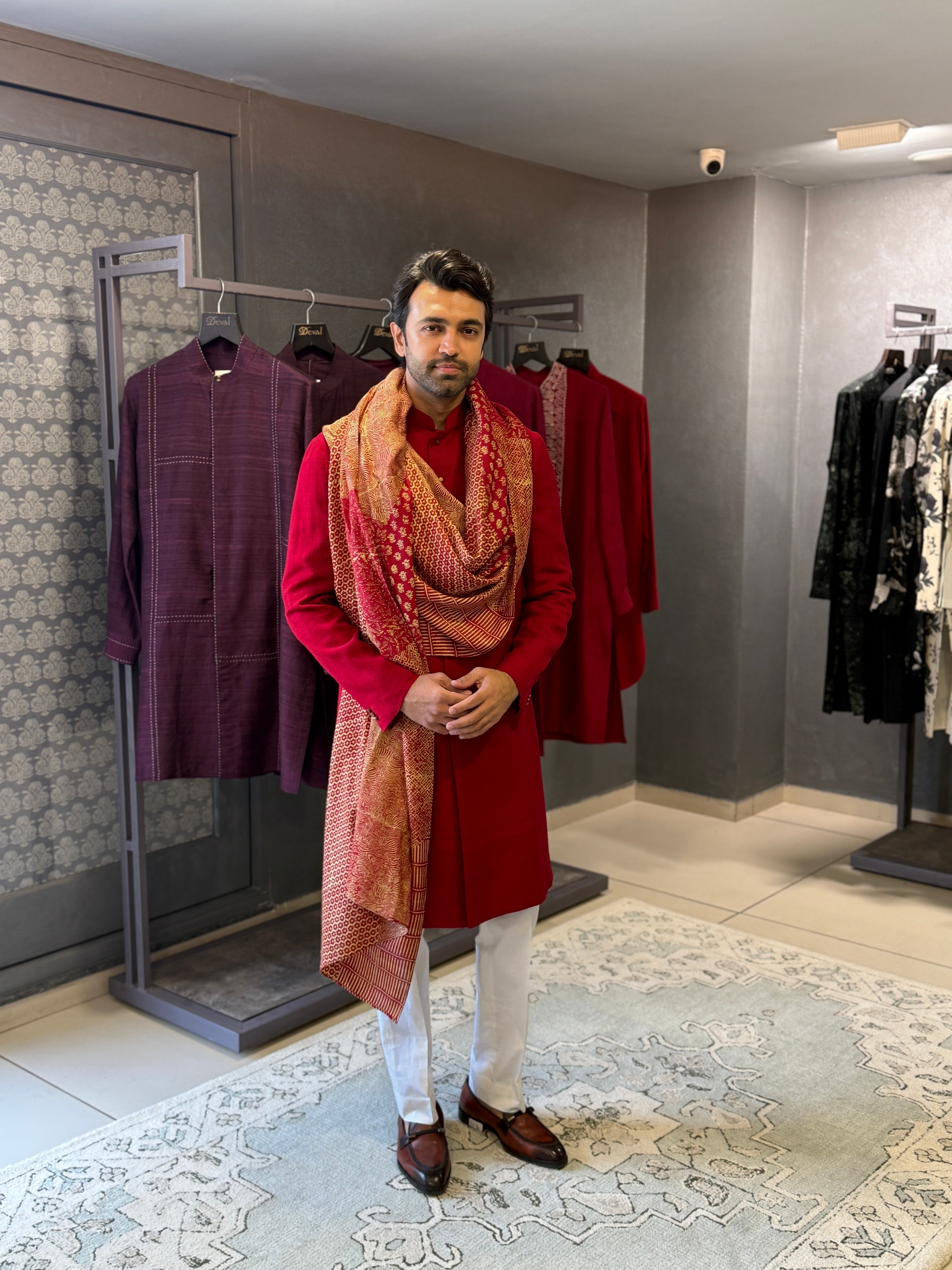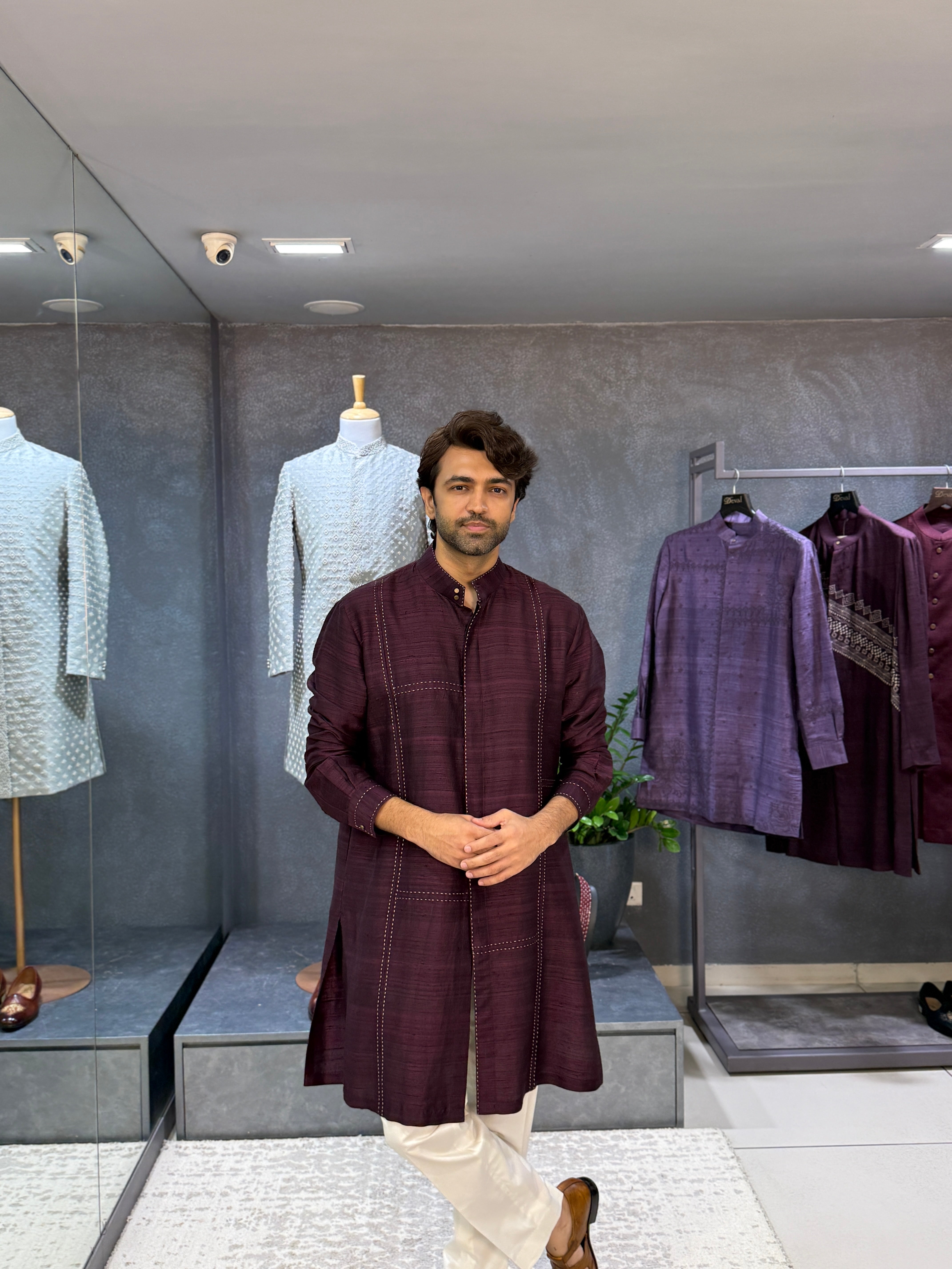 Blue Raw Silk & Stretch Overlap Kurta Set
