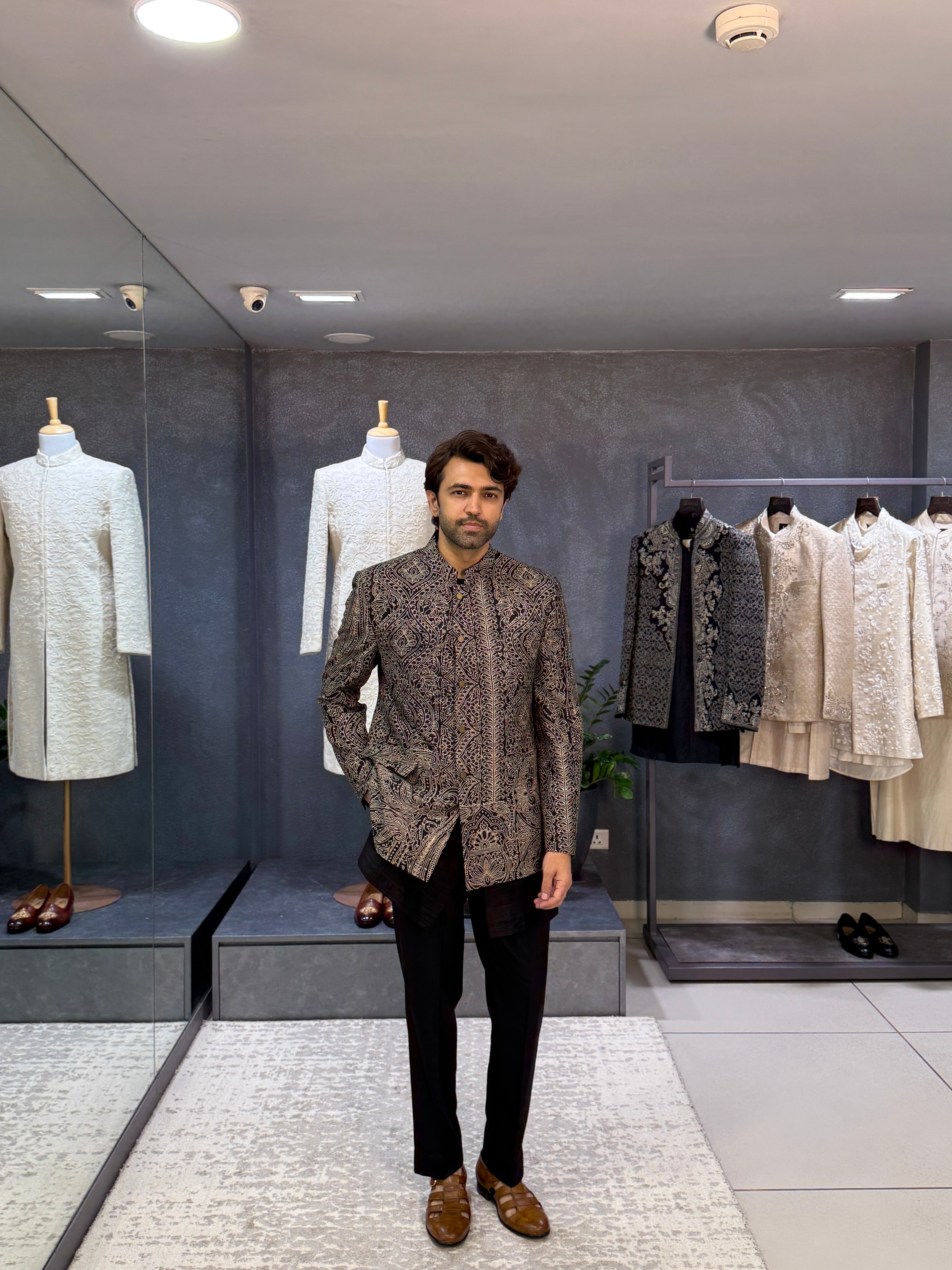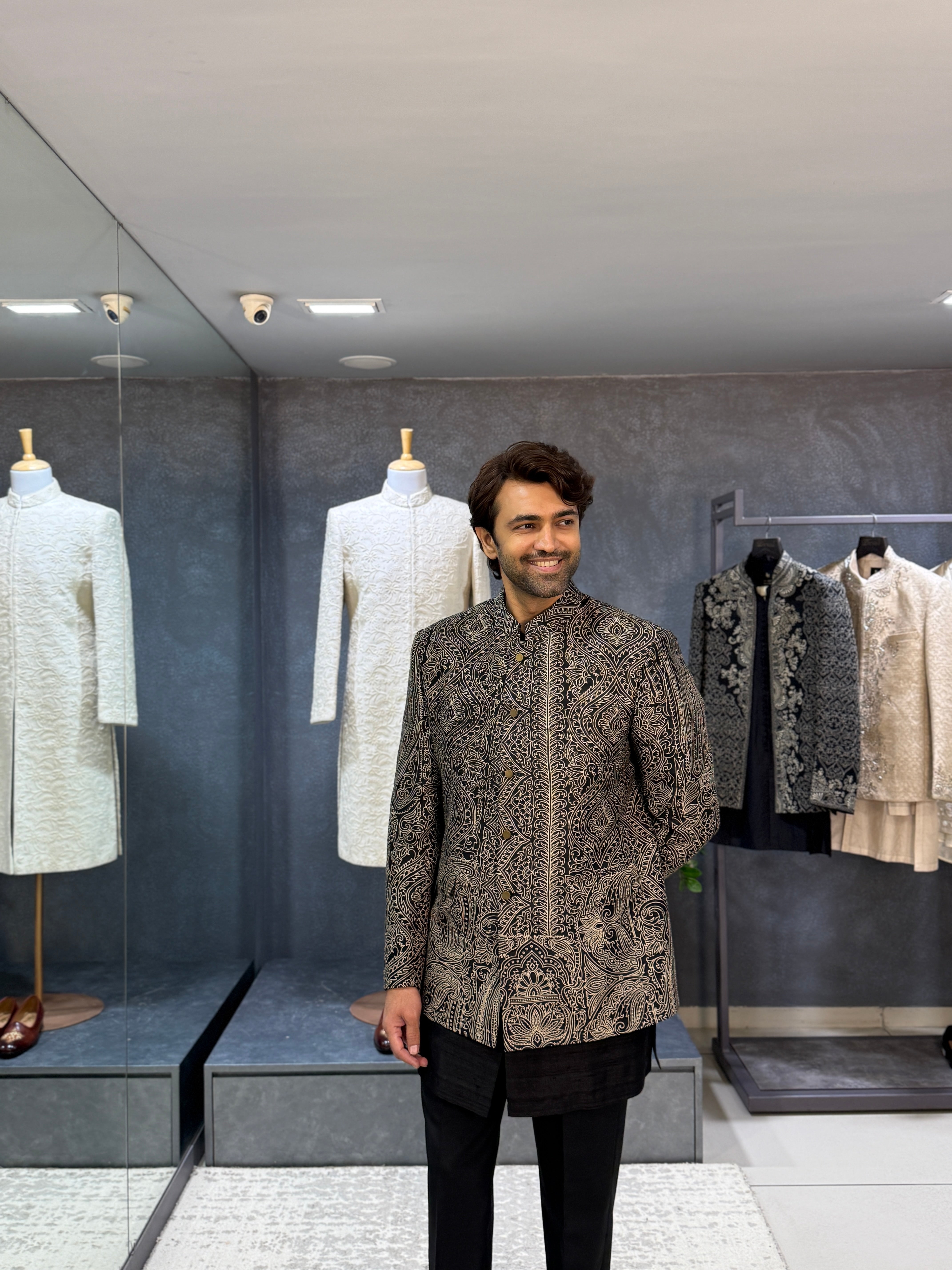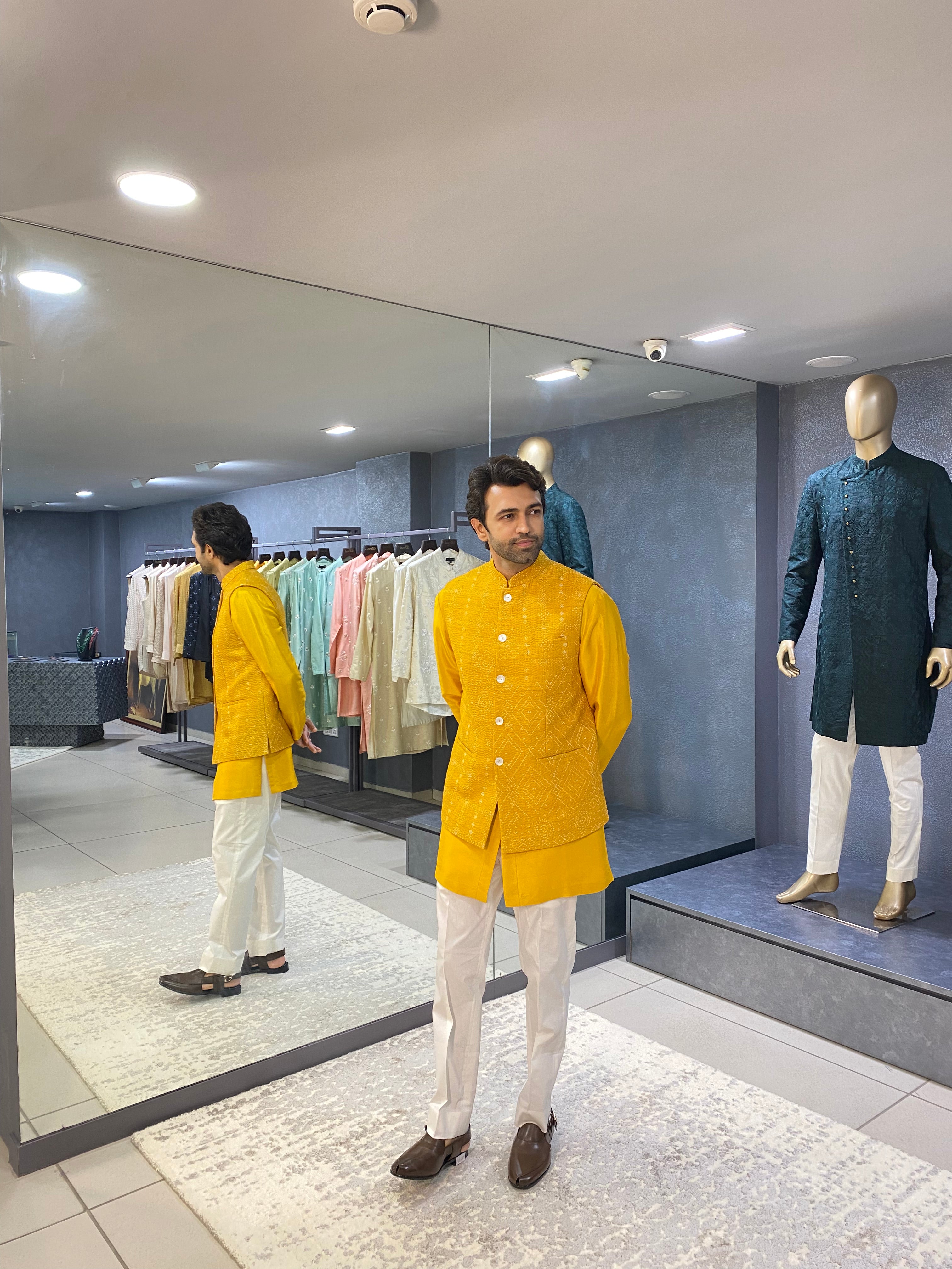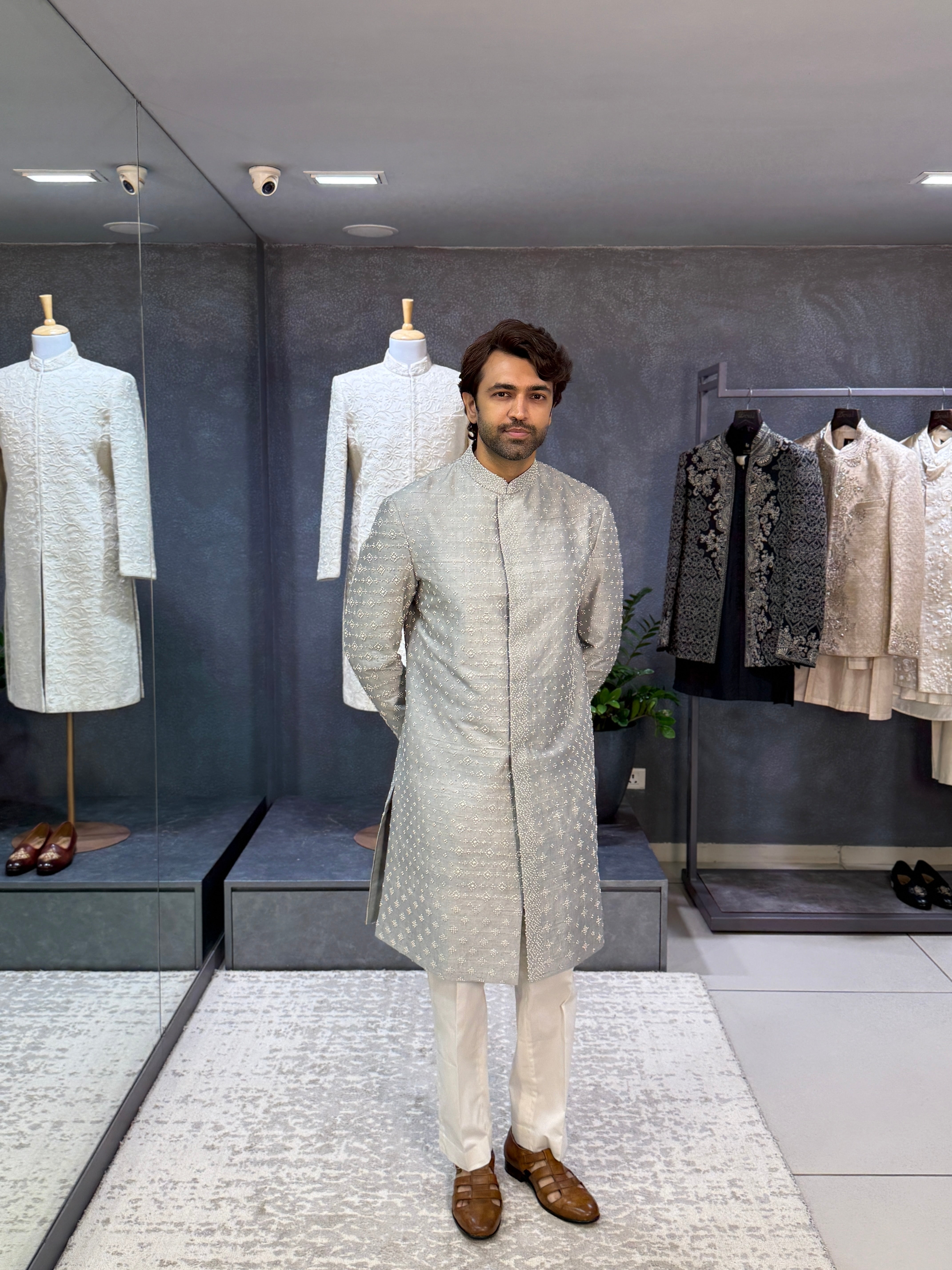 Blue Raw Silk & Stretch Overlap Kurta Set