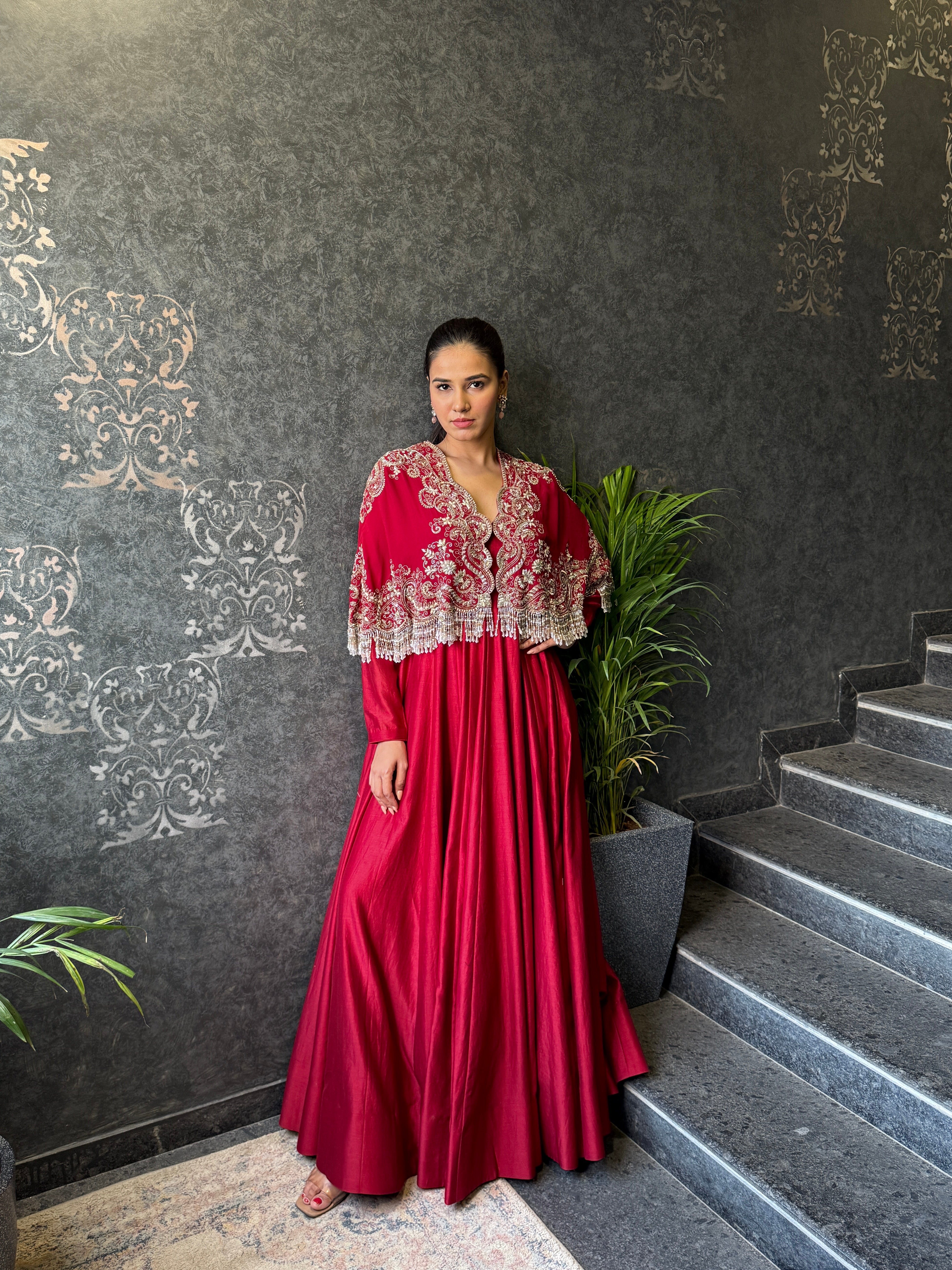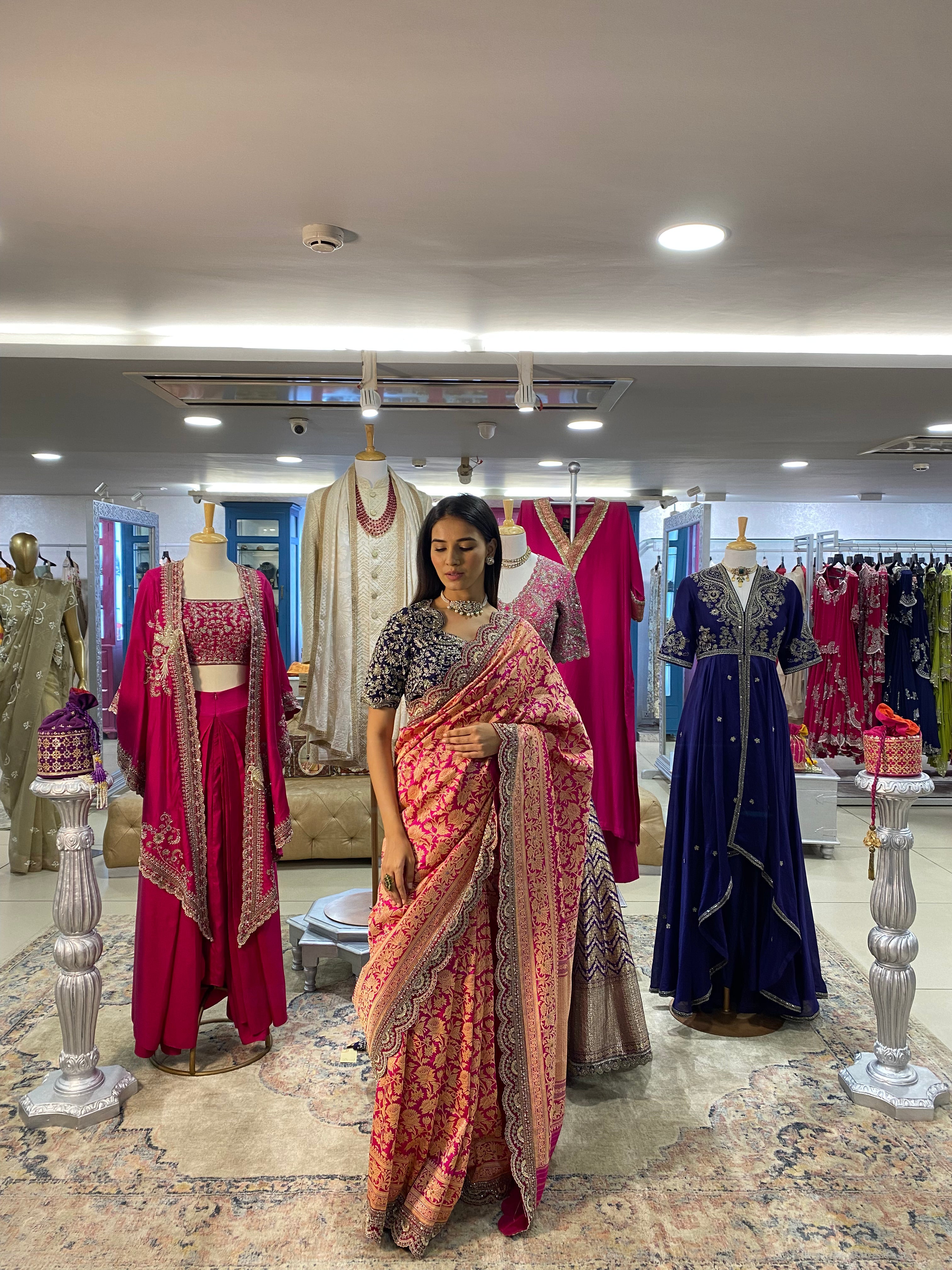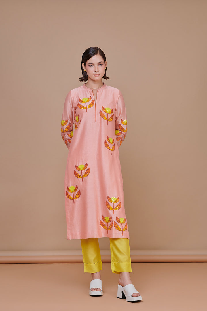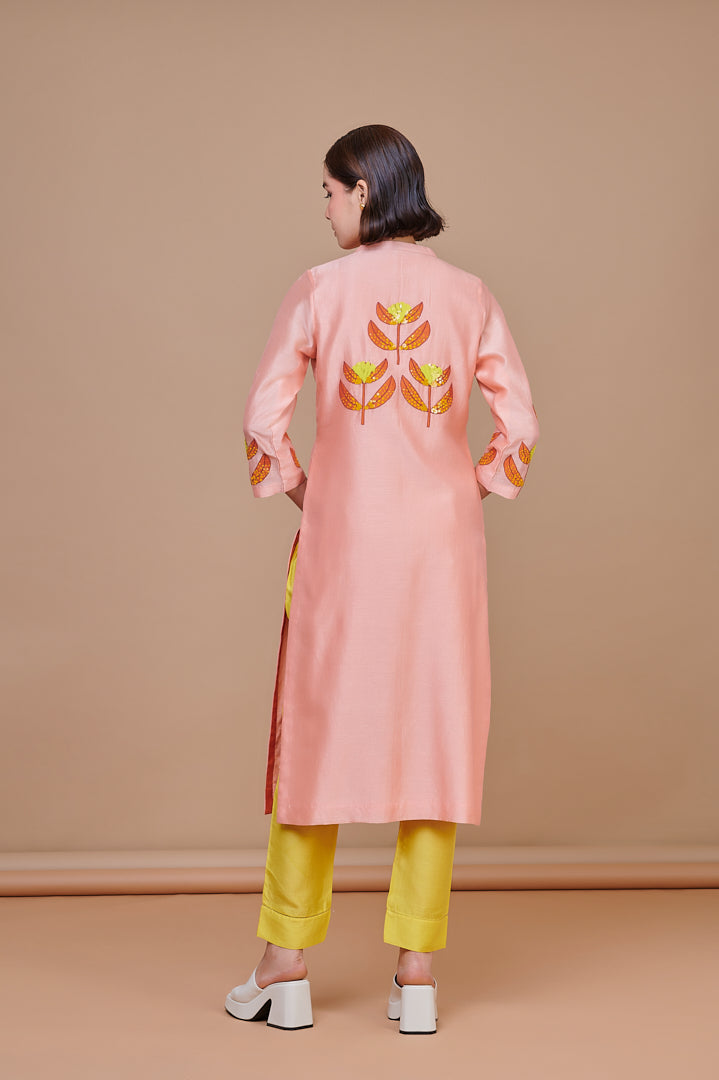 Pink Patchwork and Hand Embroidered Floral Motif Kurta Set