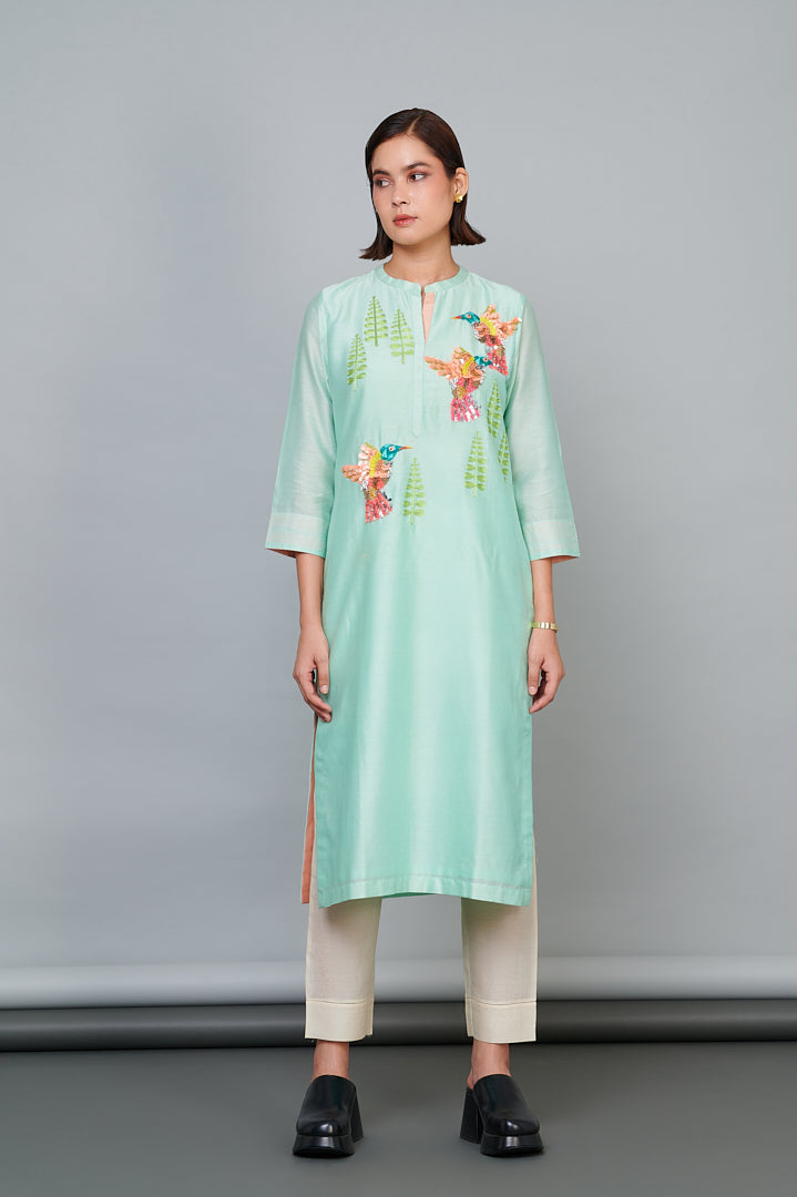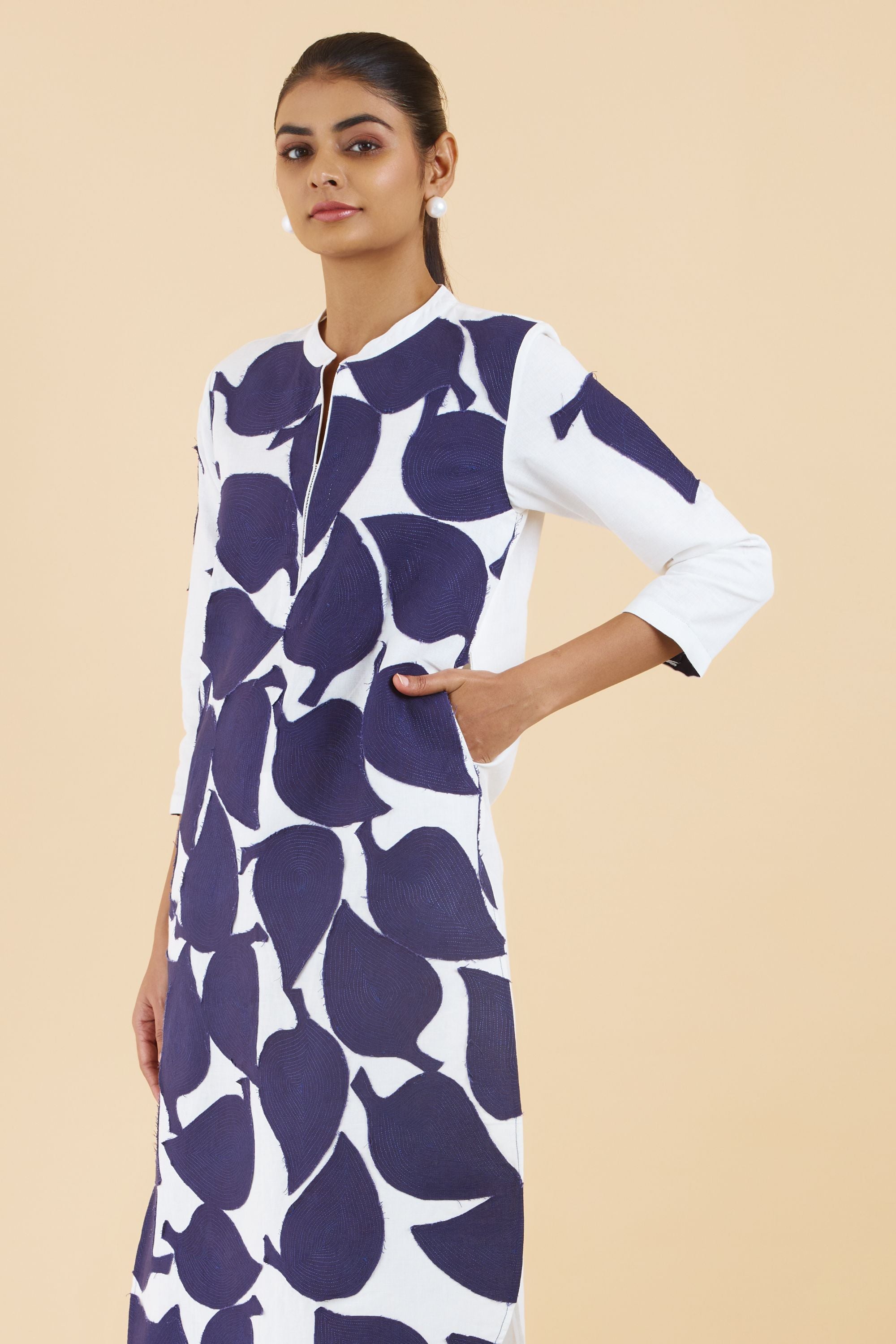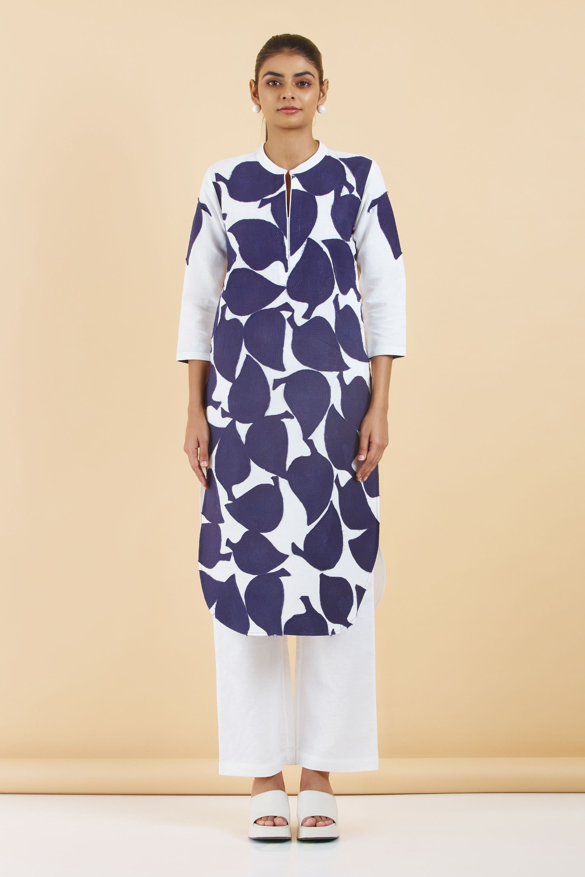 Ivory Indigo Patchwork Cotton Linen Kurta Set