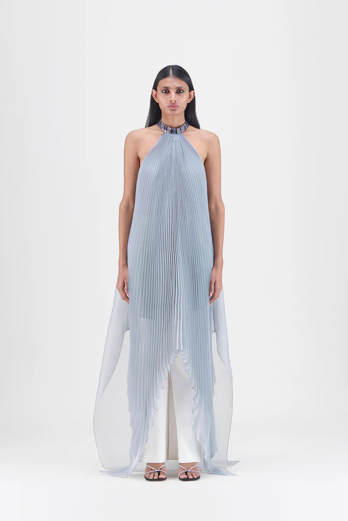 PLEATED HALTER DRESS