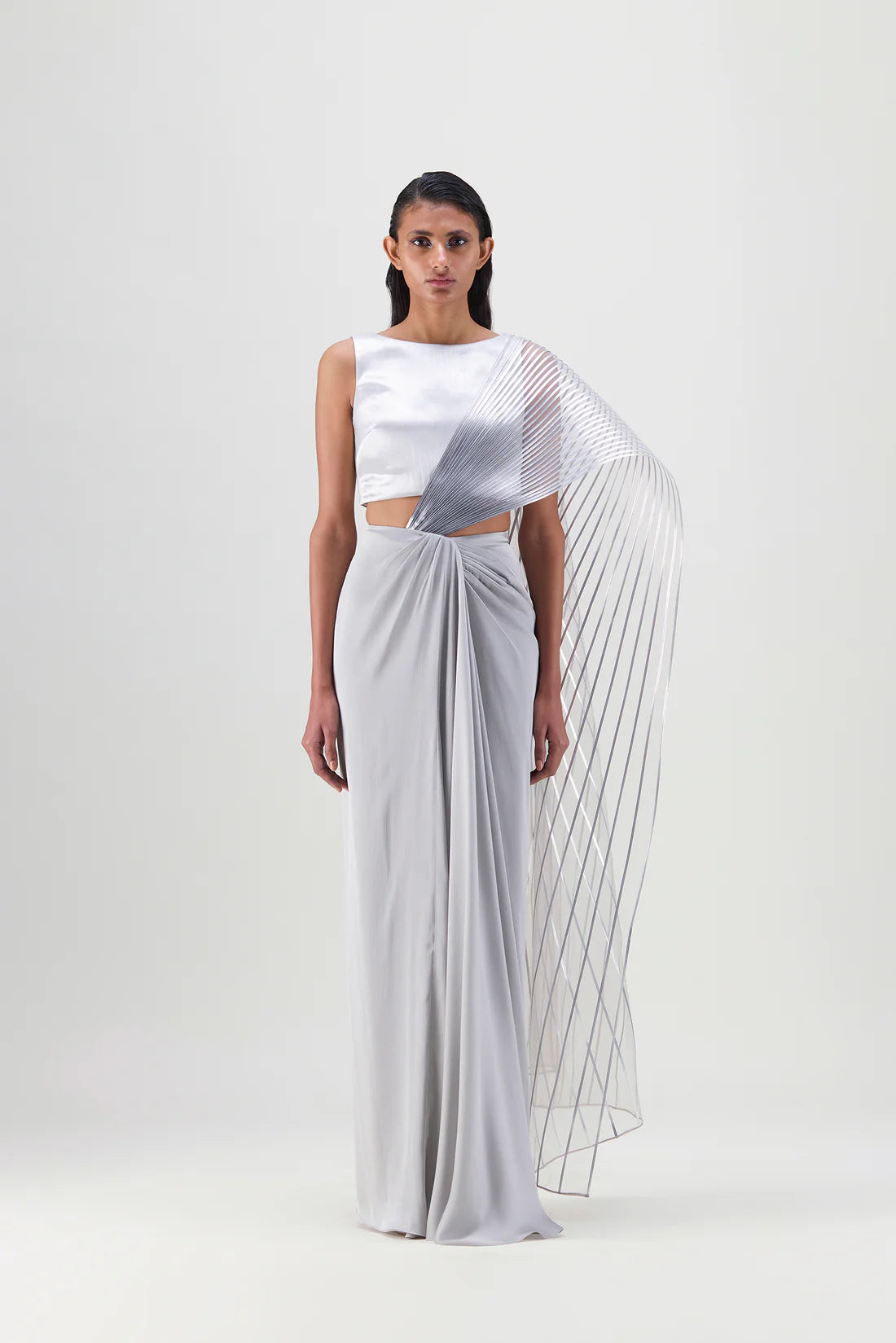 METALLIC WINGED SAREE WITH CHIFFON DRAPE