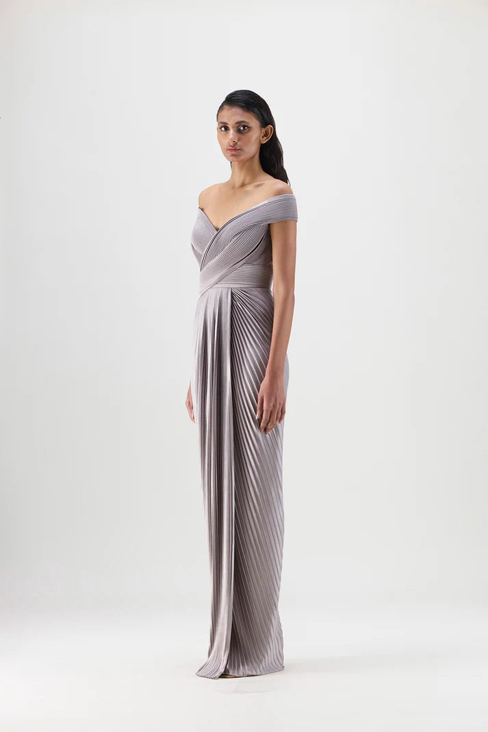 STRUCTURED PLISSÉ GOWN