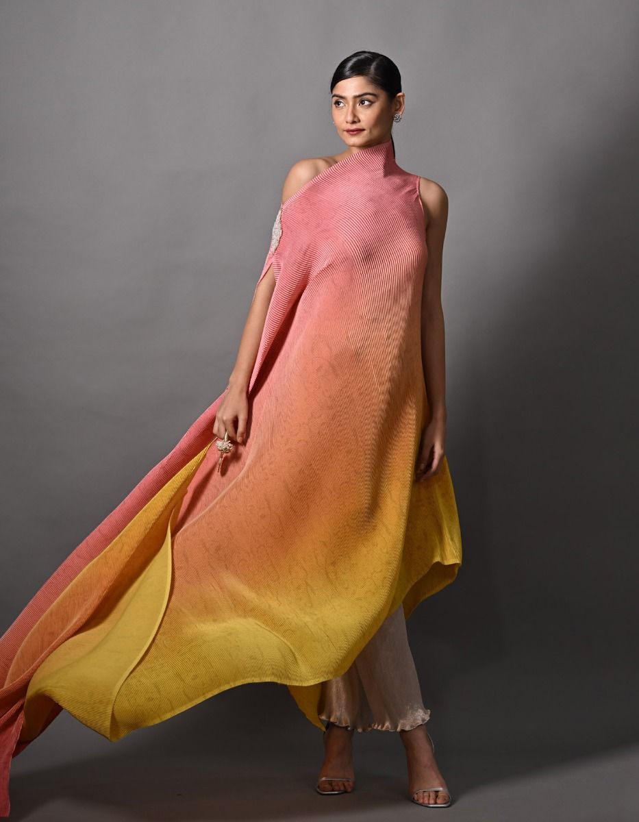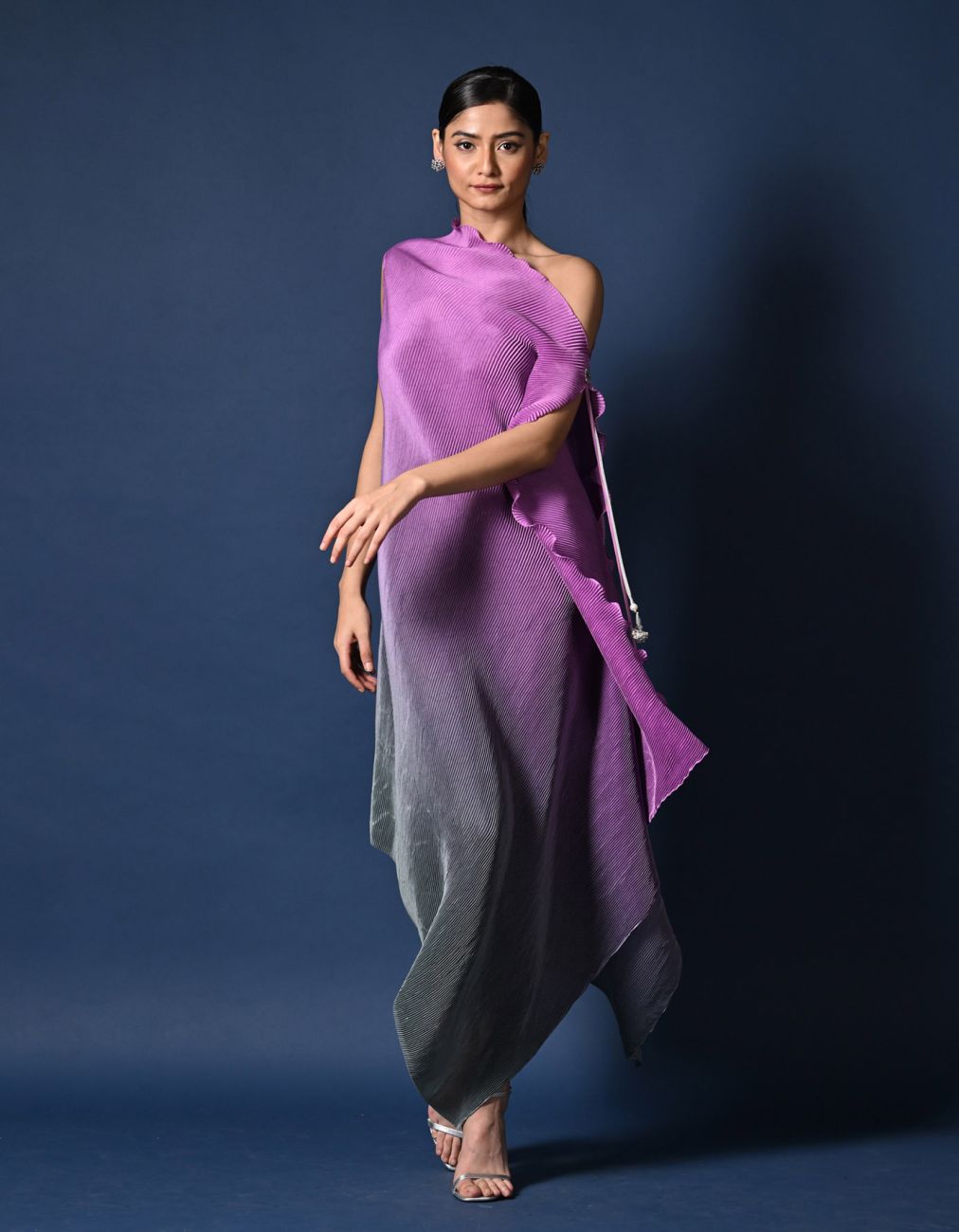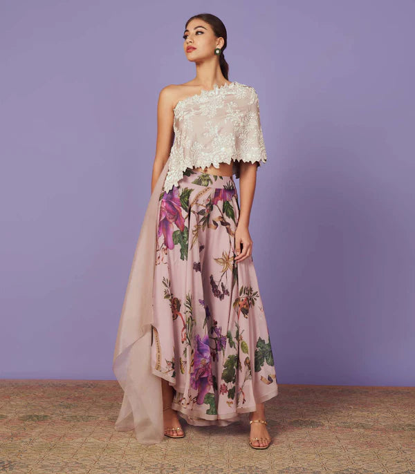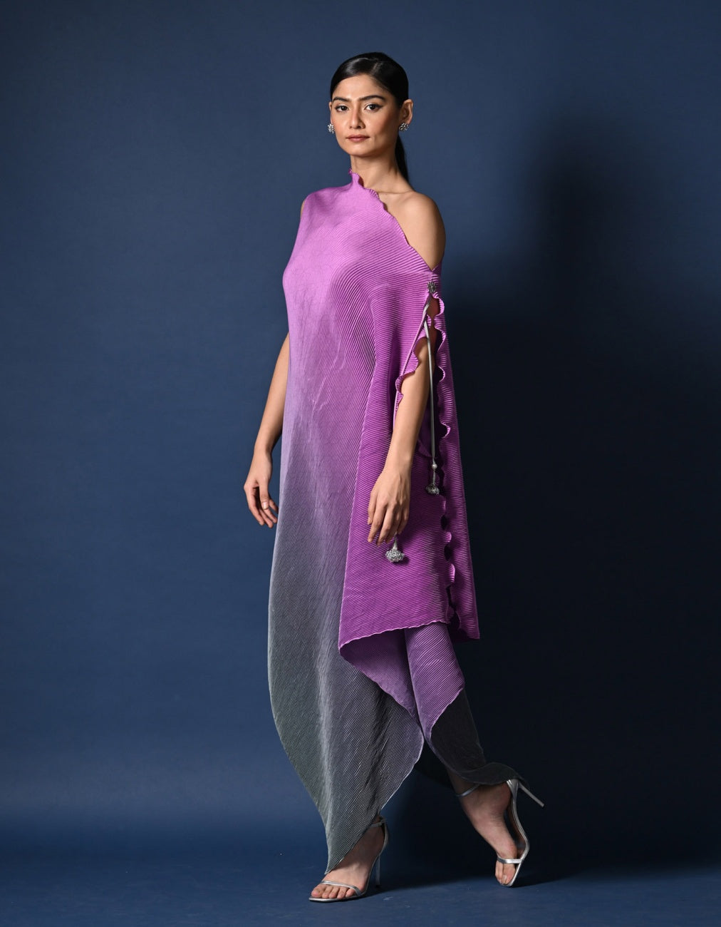 Lavender Pearl Embroidered One-Shoulder Cape Set