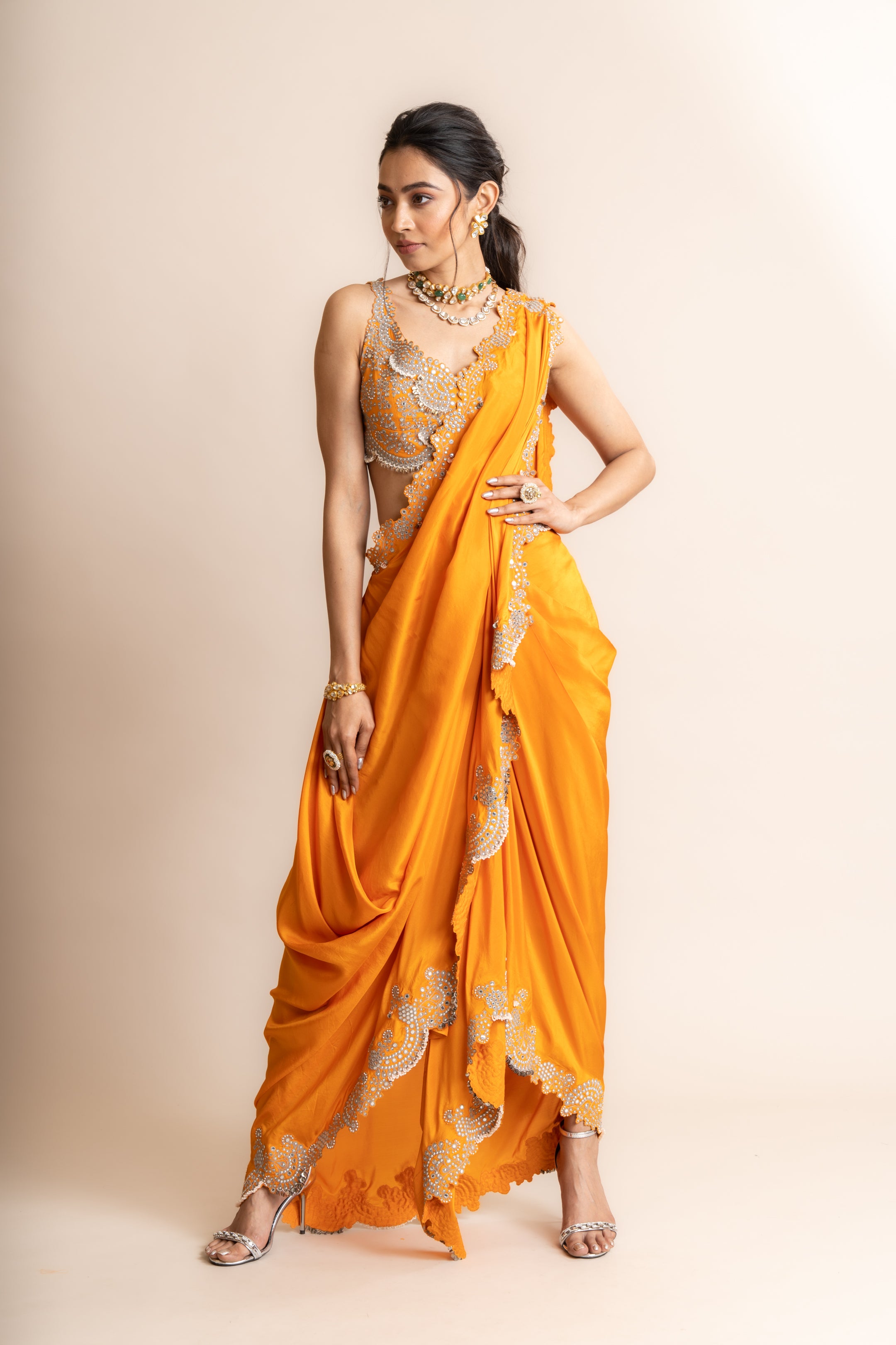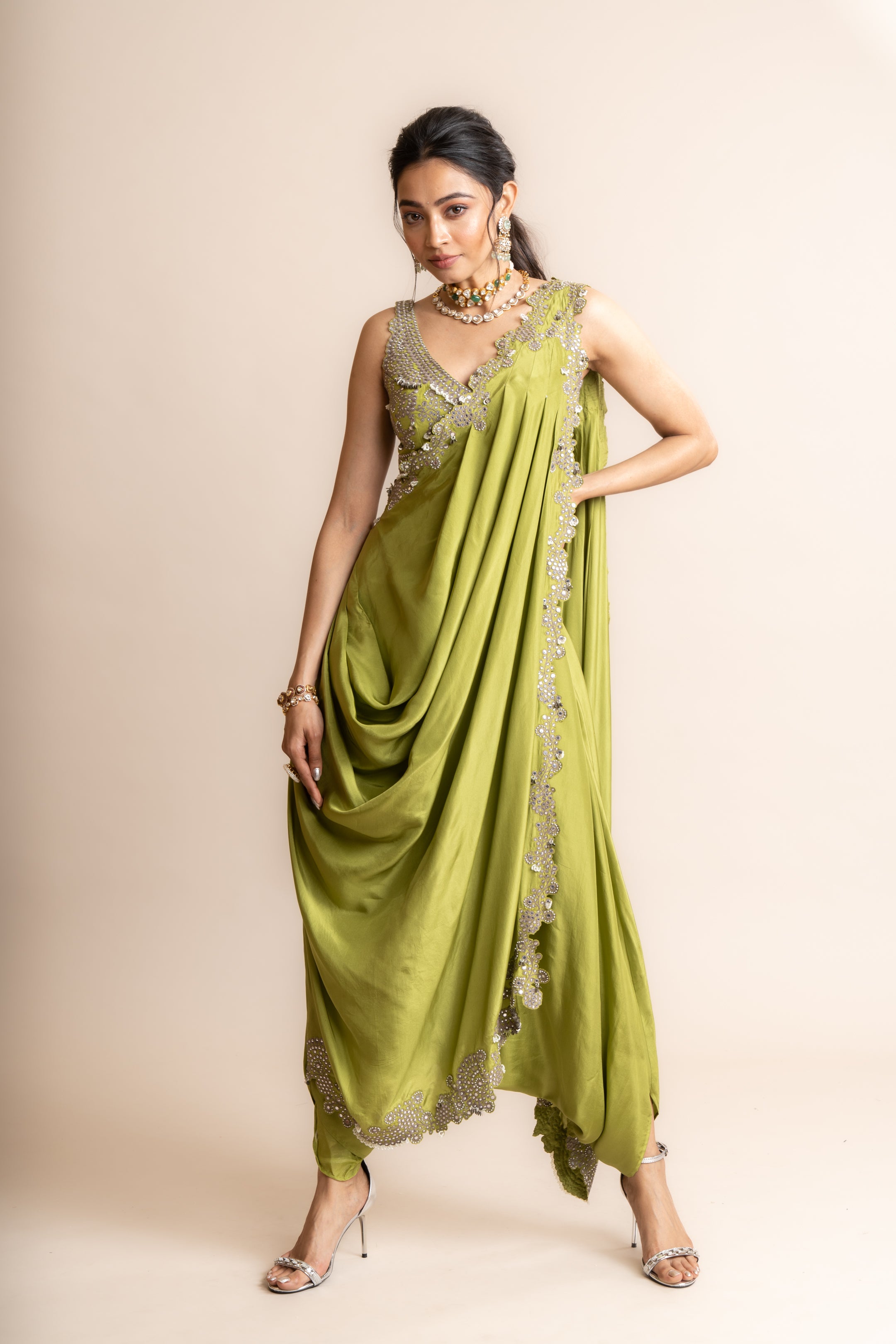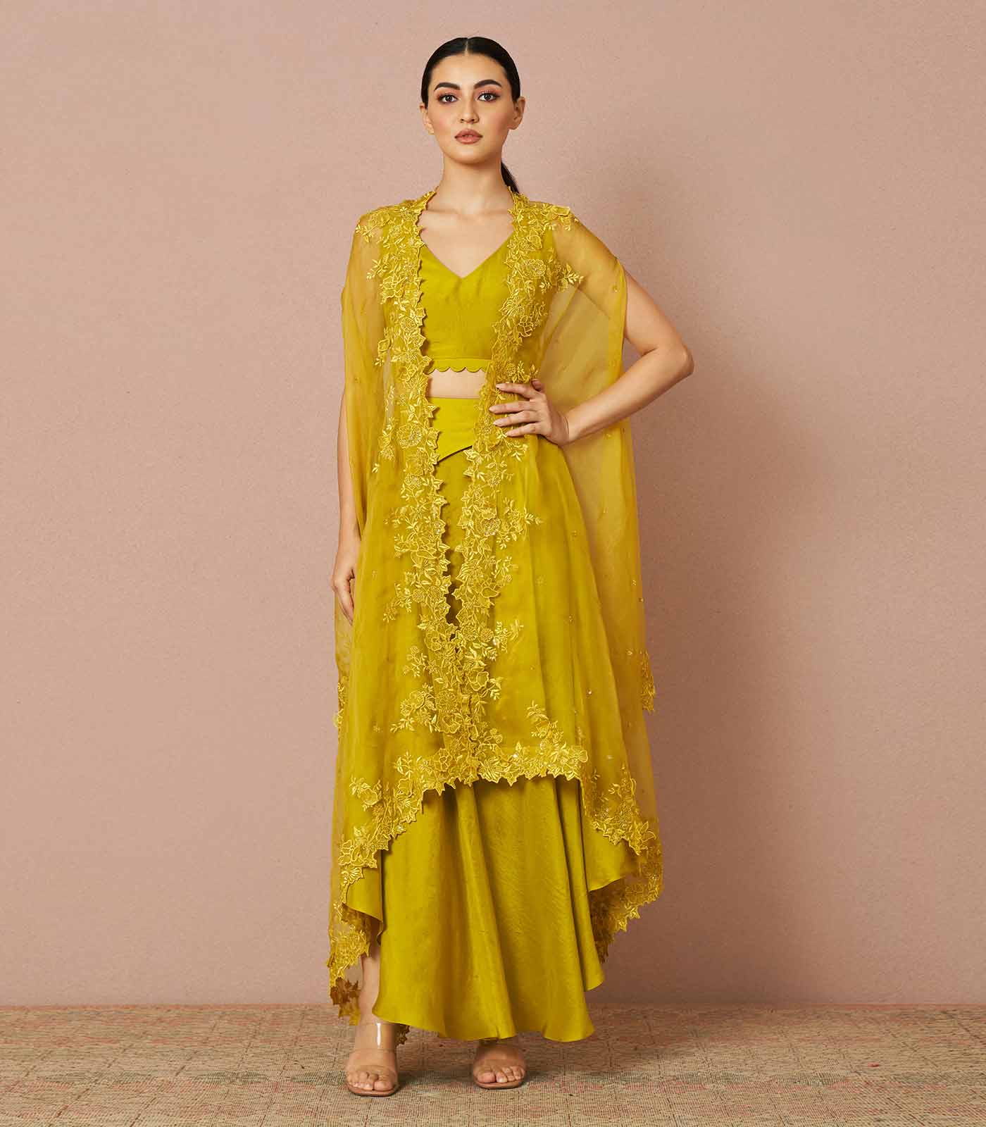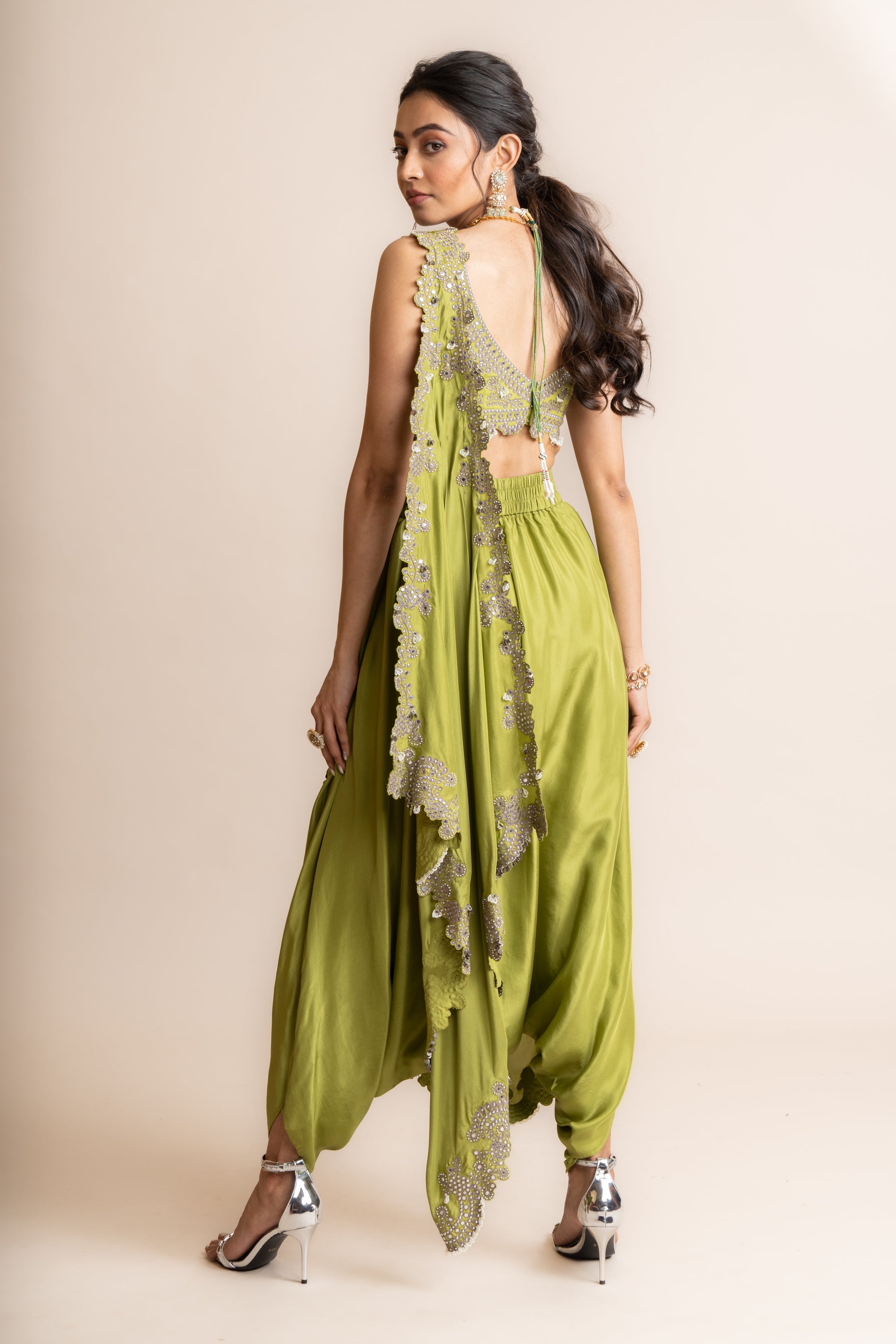 Lavender Pearl Embroidered One-Shoulder Cape Set