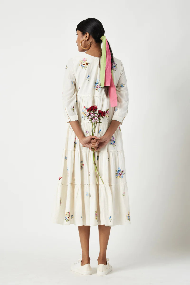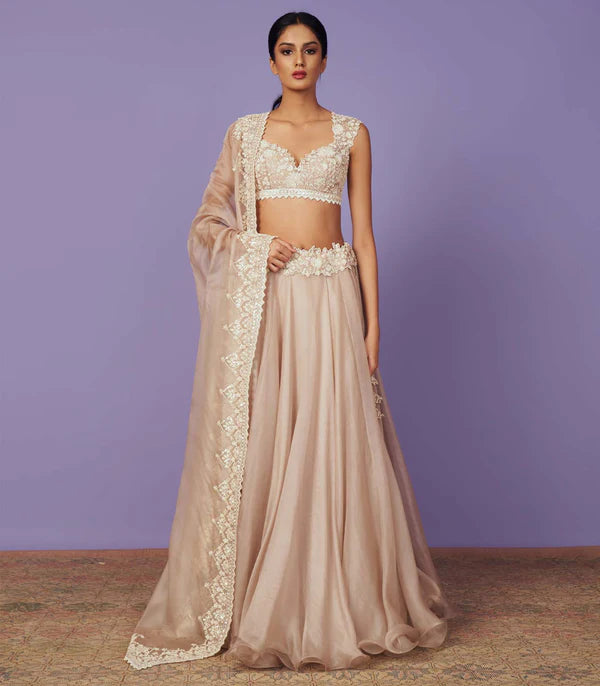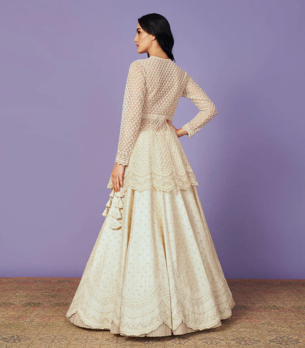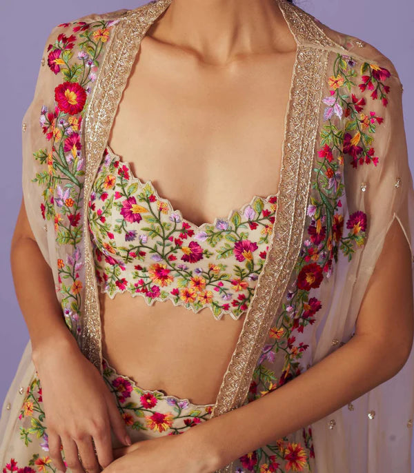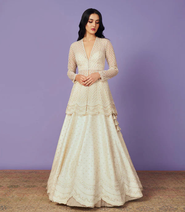 Ivory Raw Silk Pearl Hand Embroidered Lehenga Set