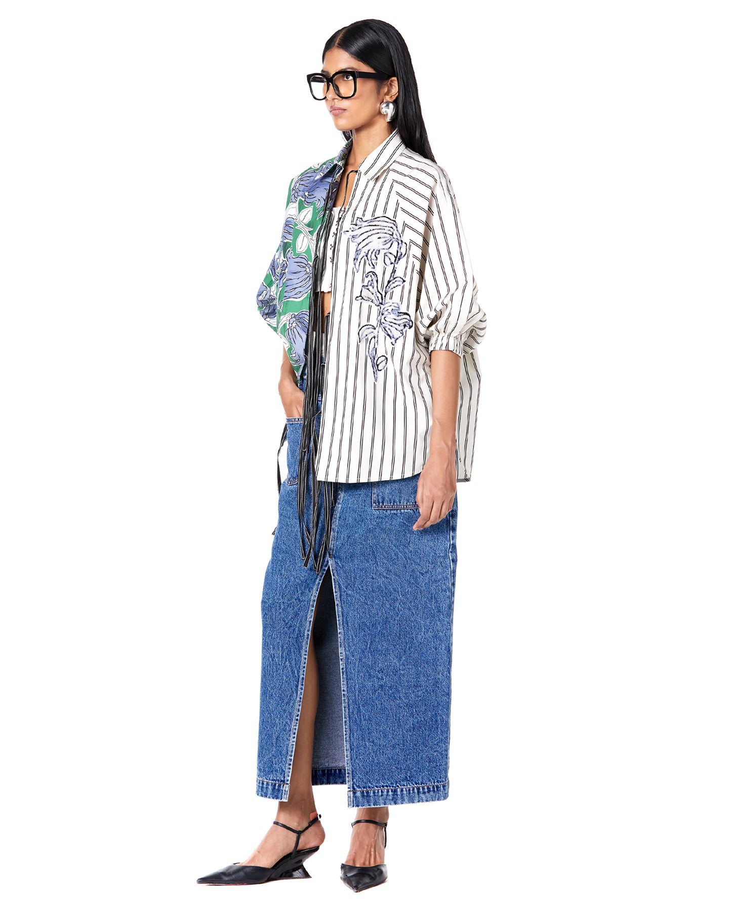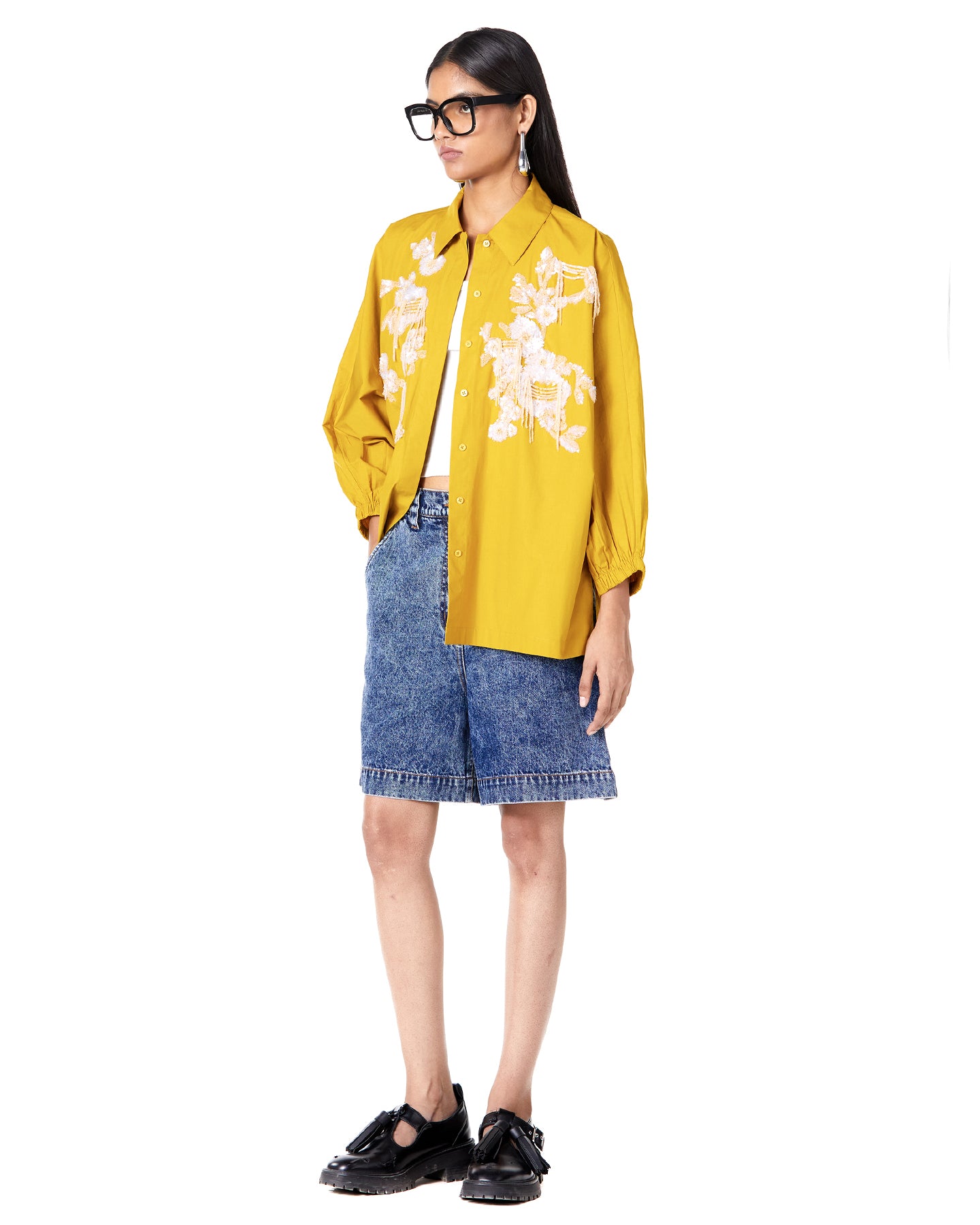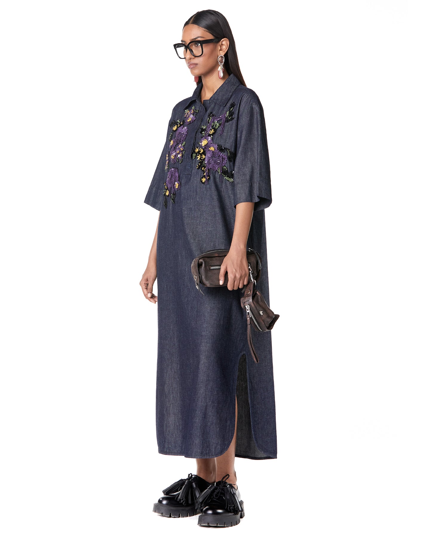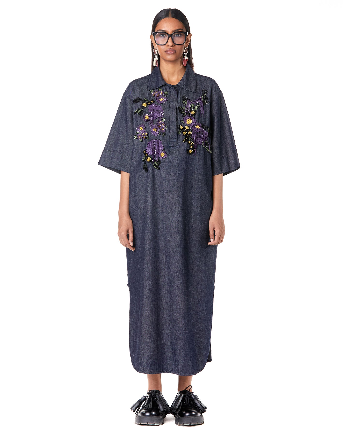 BOUQUET DENIM SHIRT-DRESS