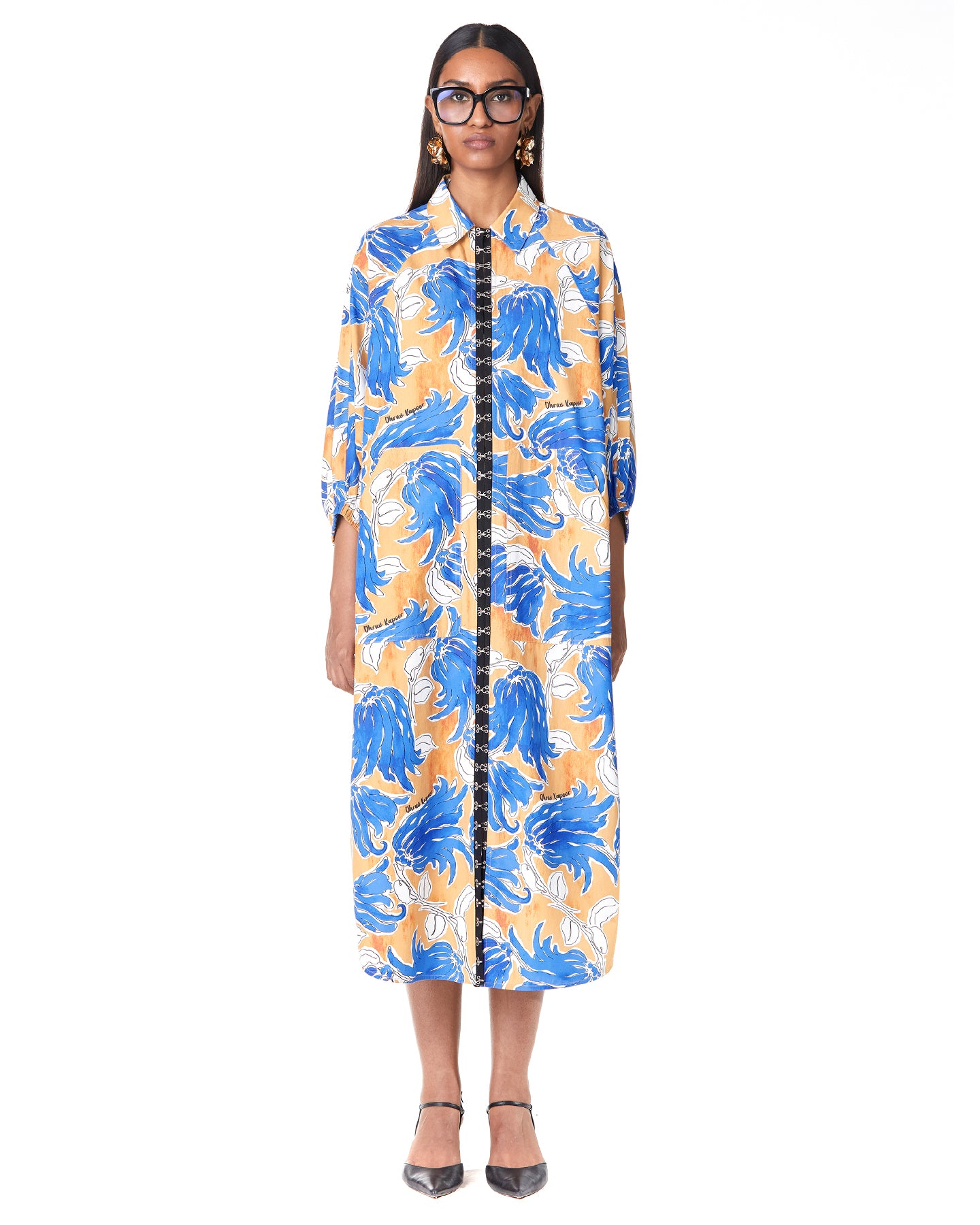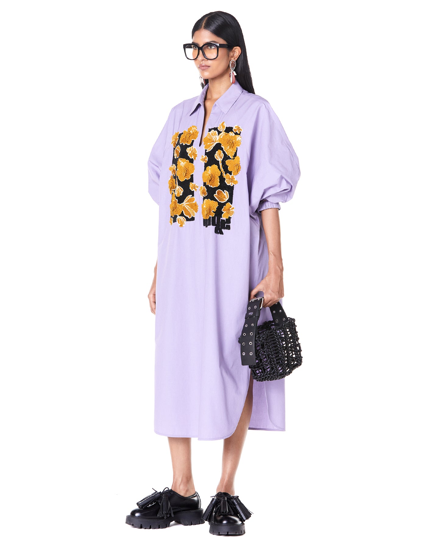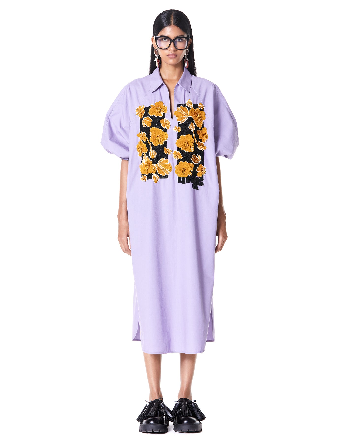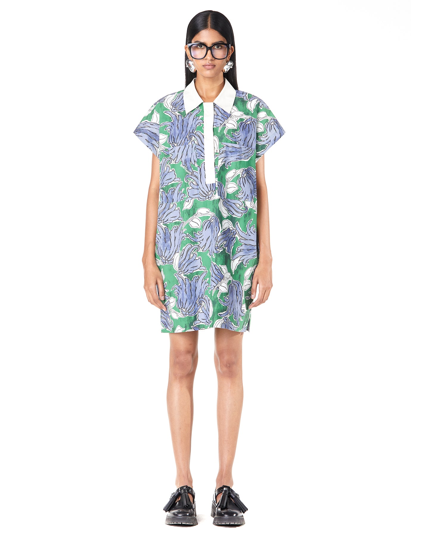 HOOKED FLORA BATWING SHIRT-DRESS