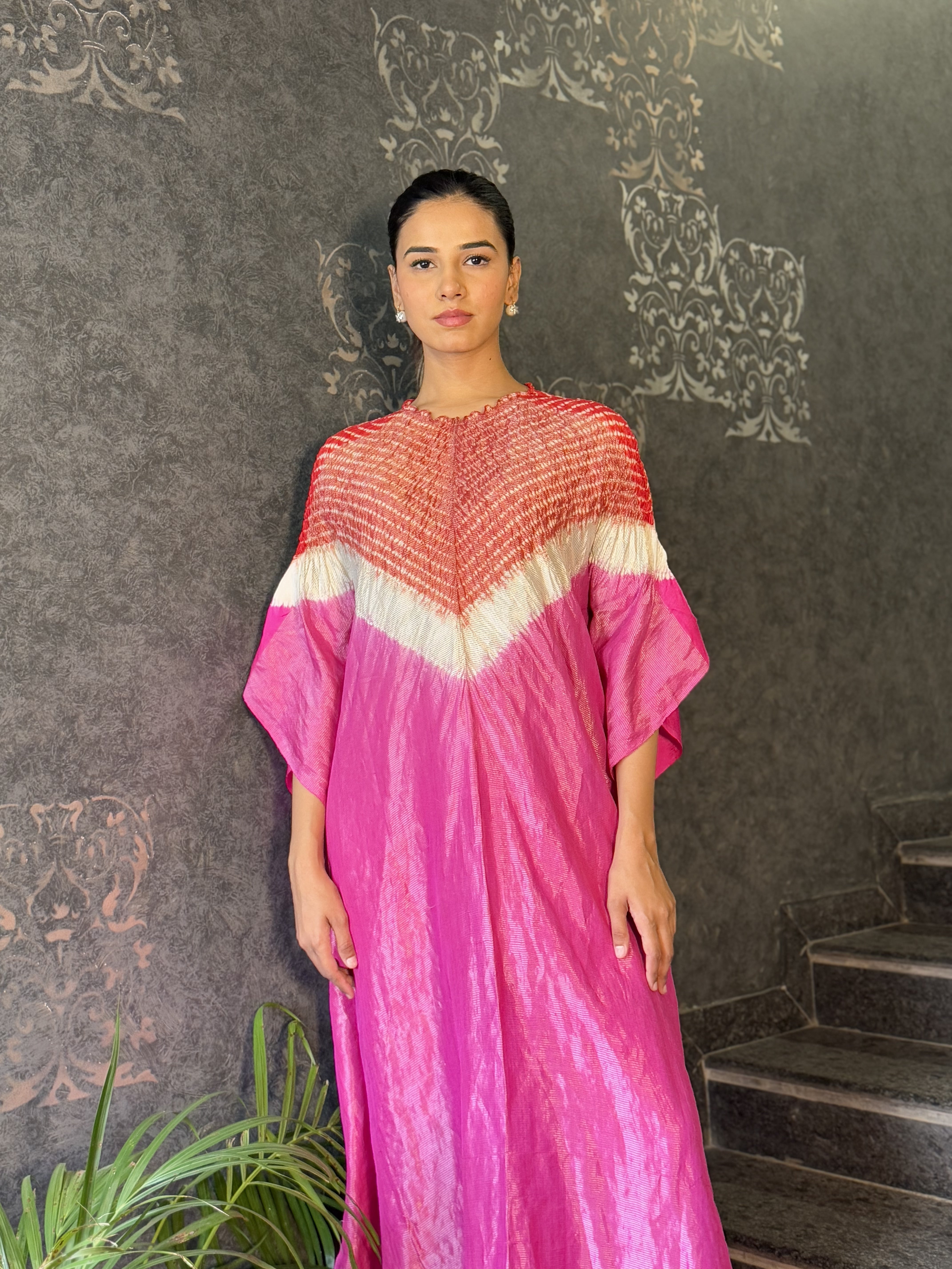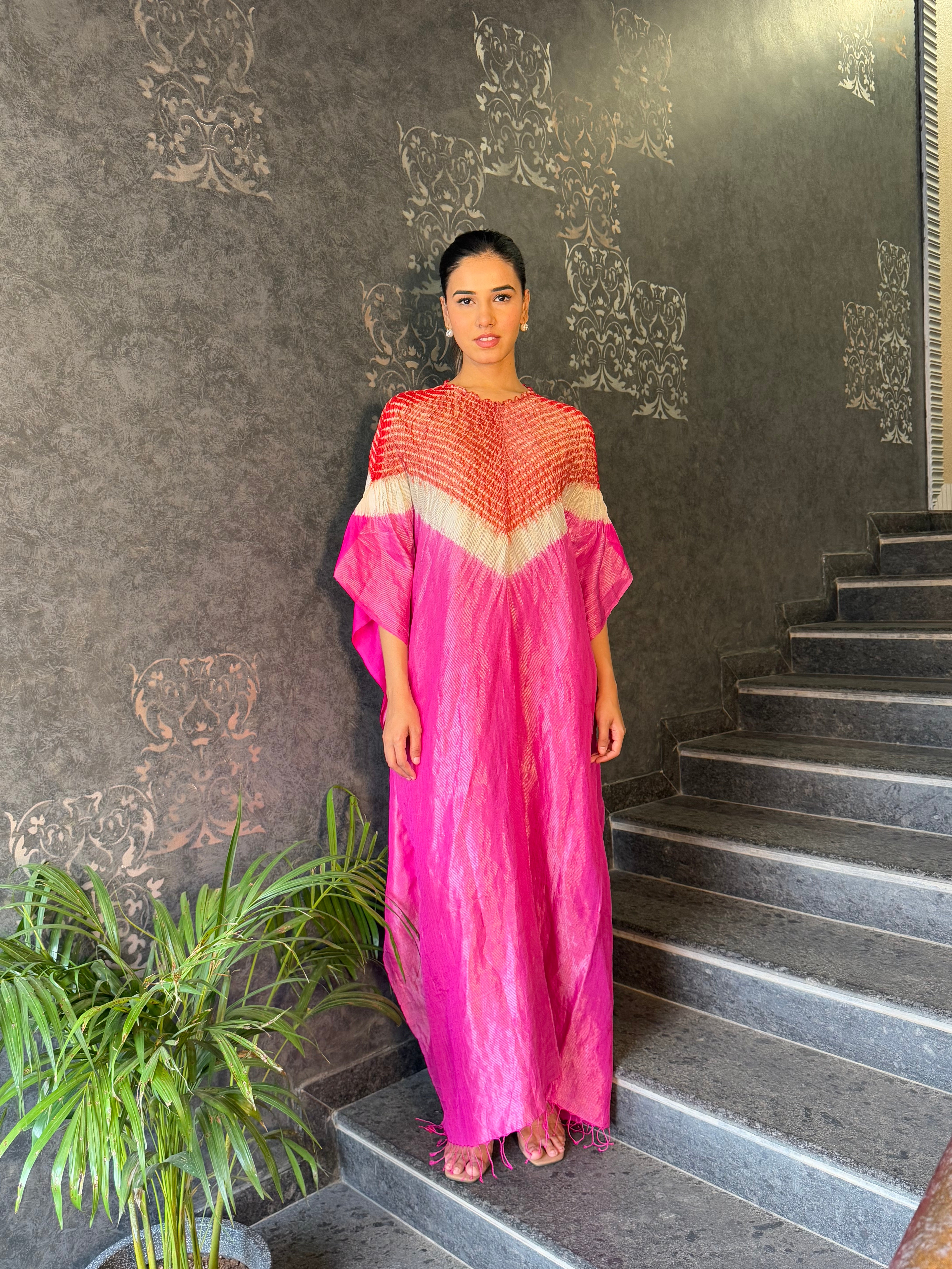 TRIANGLE KAFTAN - METALLIC PINK RED