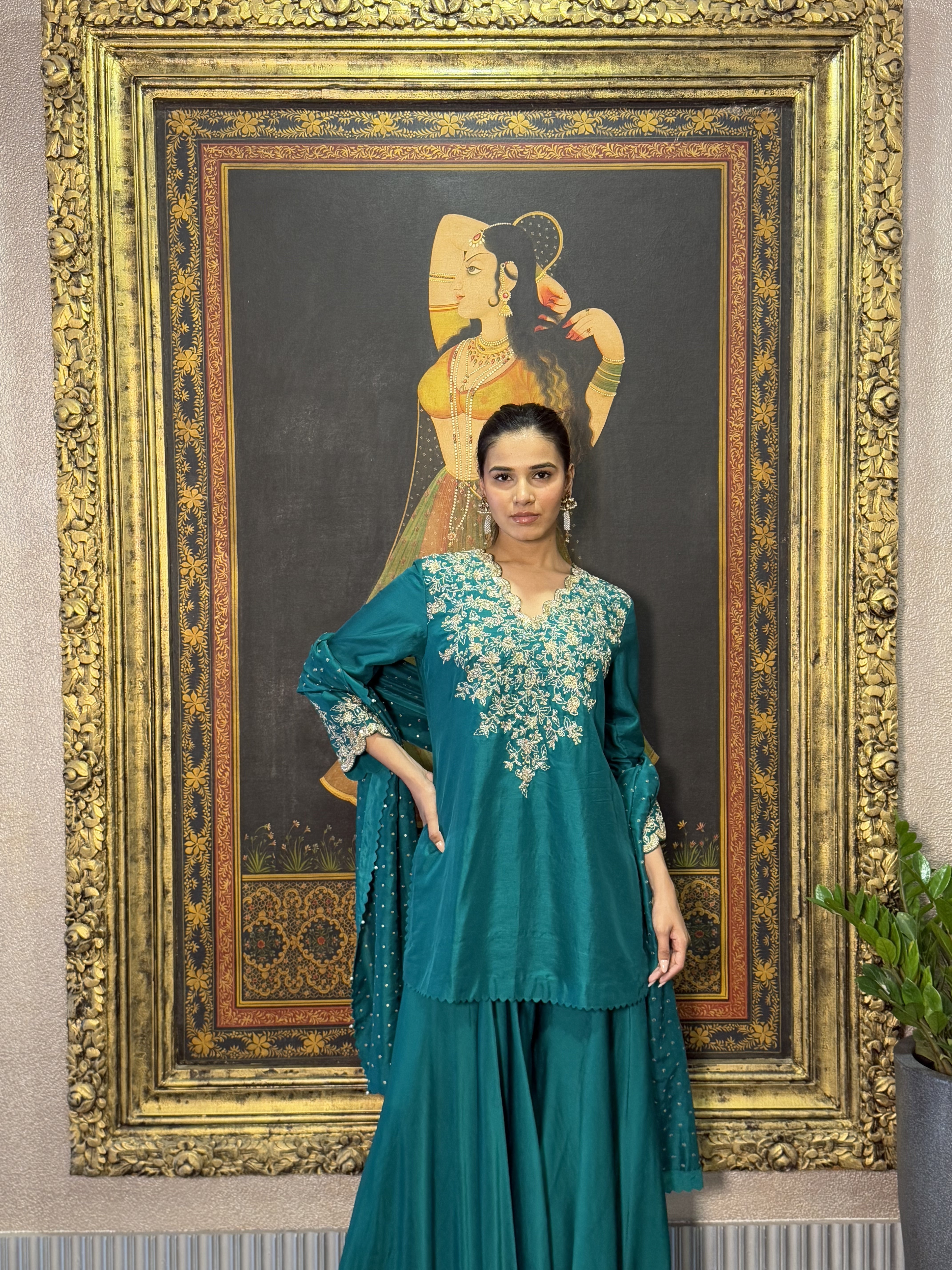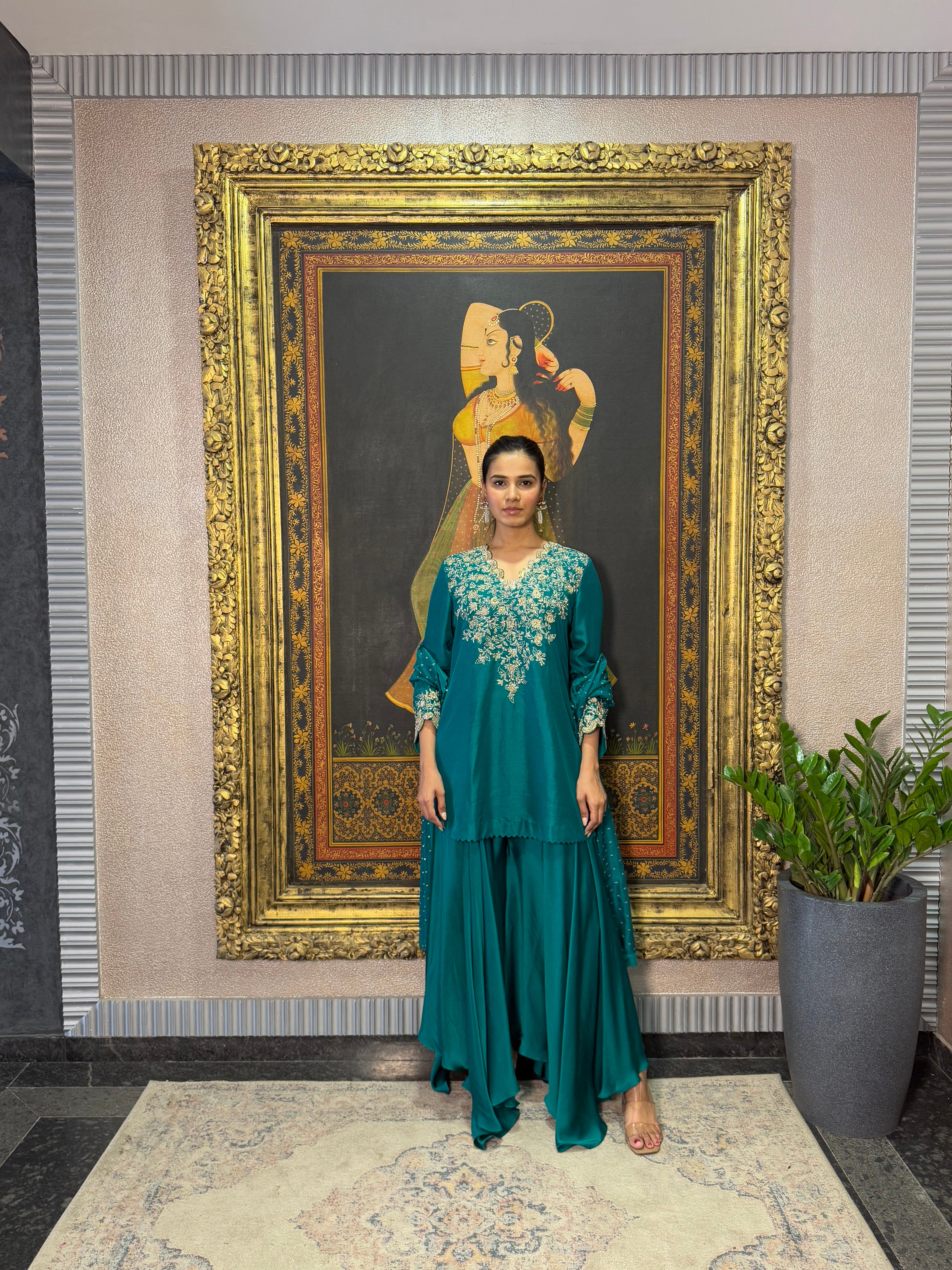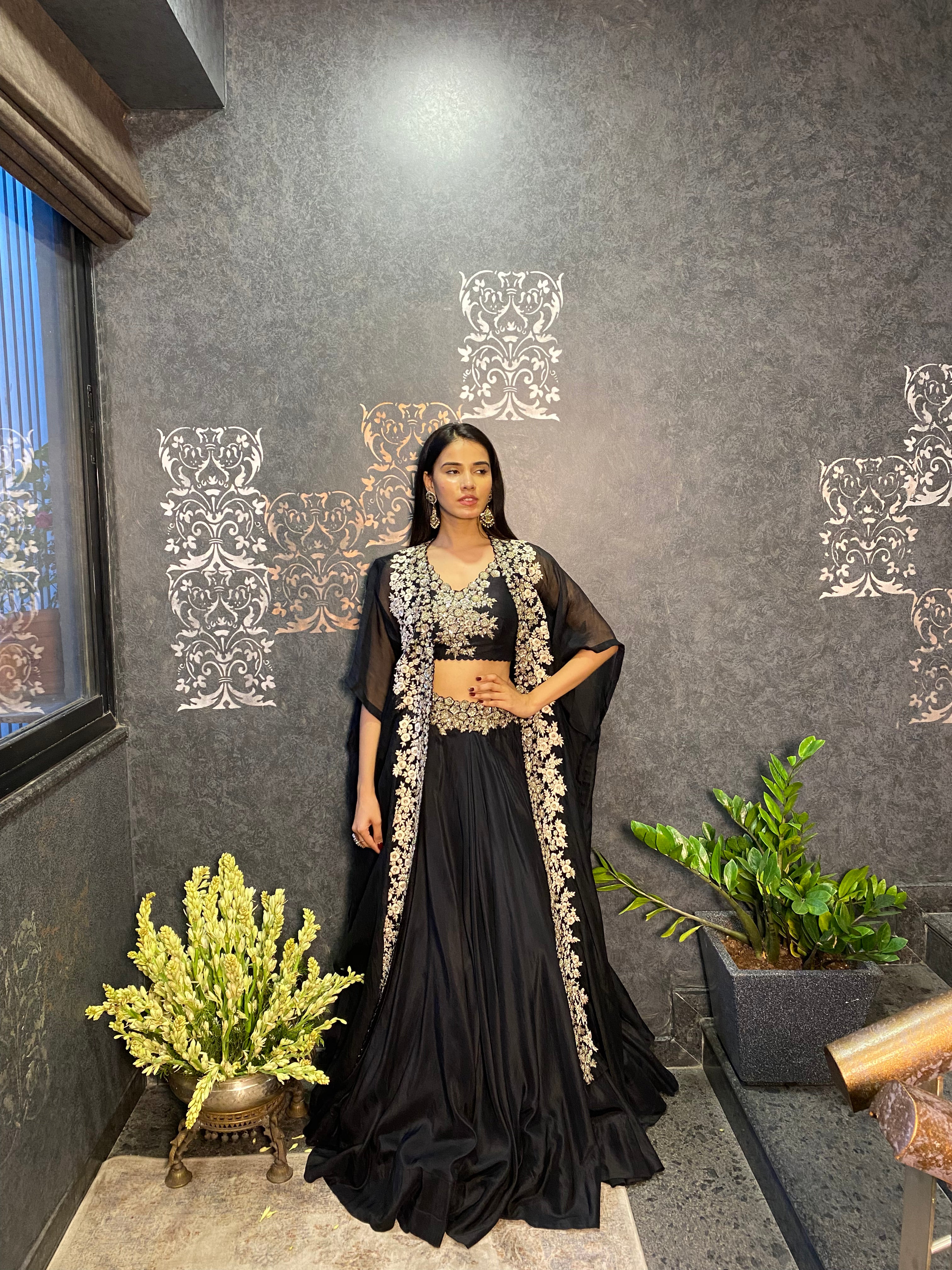 CAPE WITH SHORT JACKETS AND DHOTI PANTS