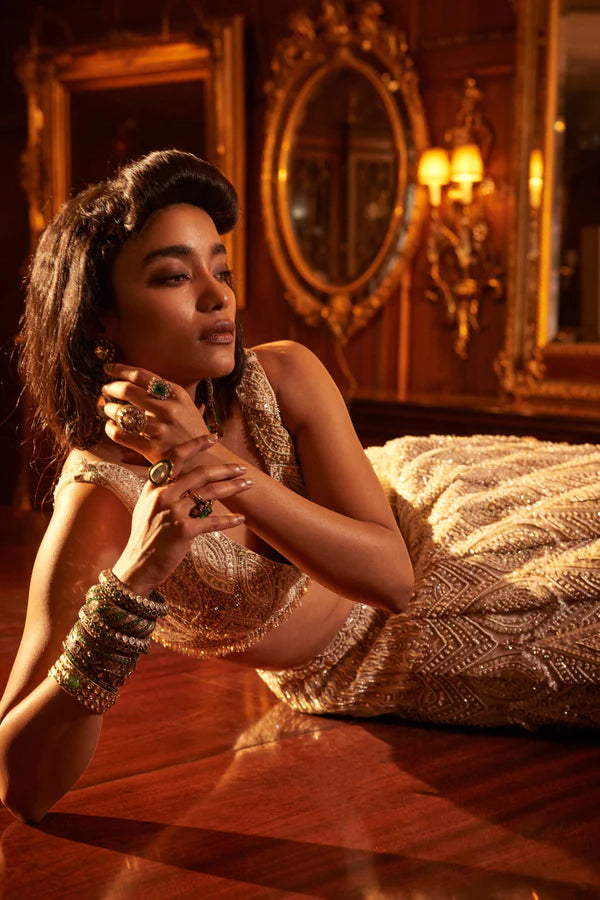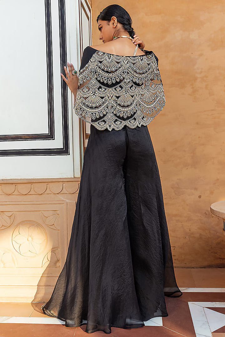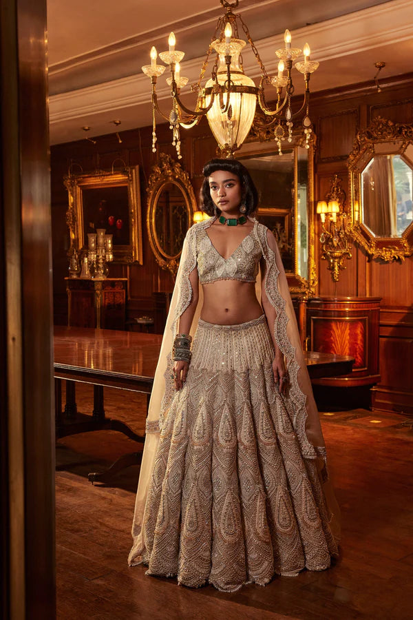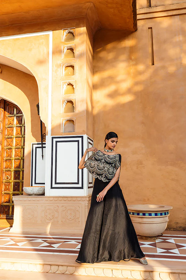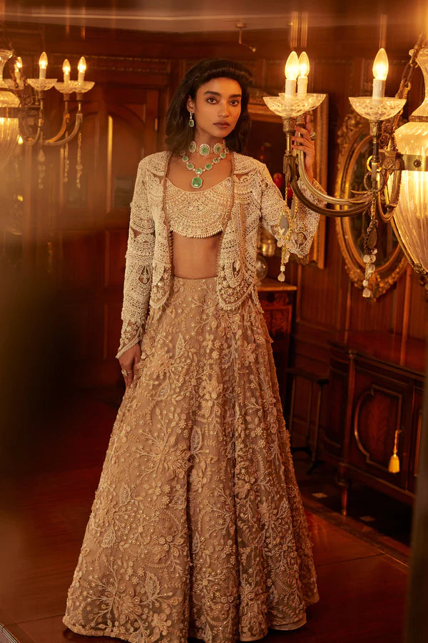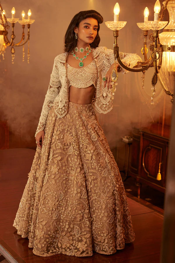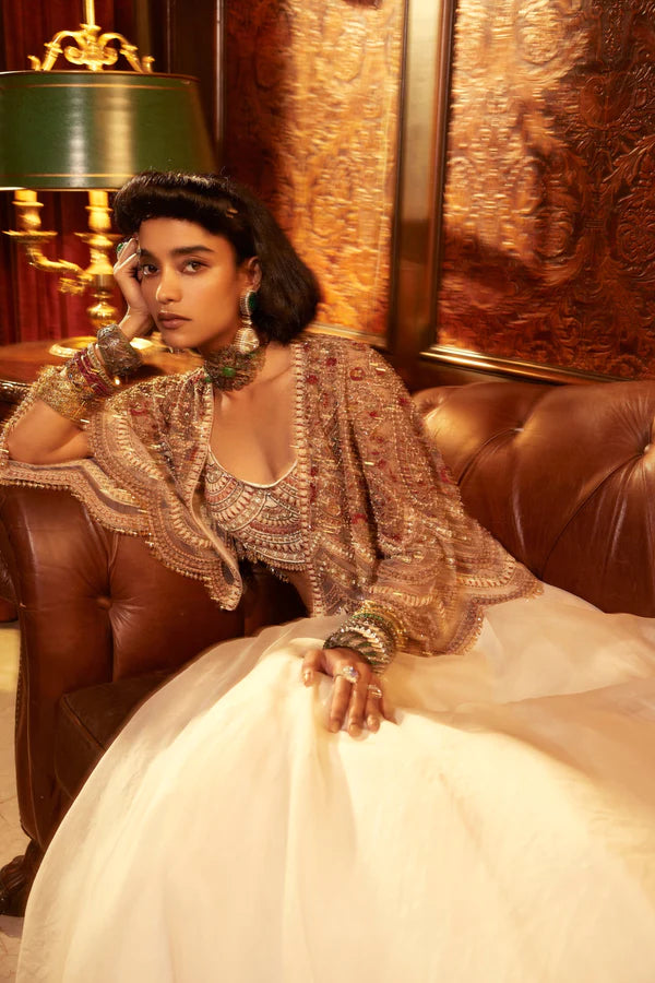 Maroon Organza & Georgette Embellished Jacket Lehenga Set