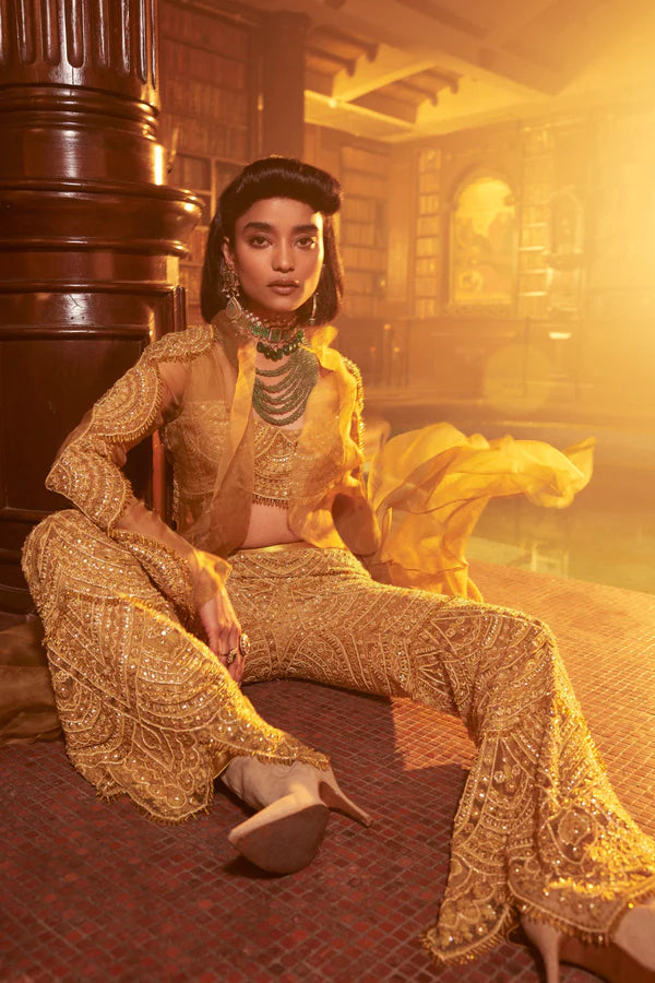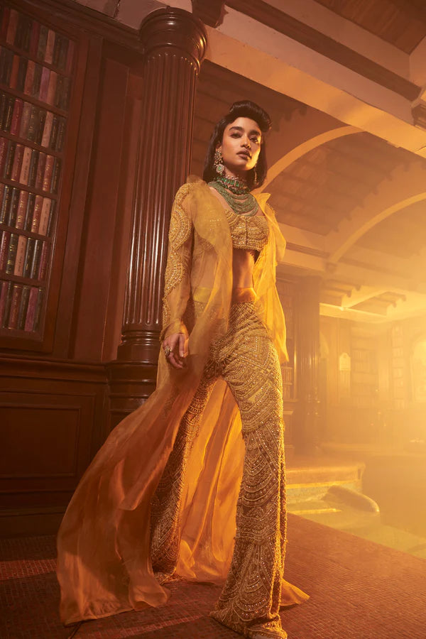 Retro Love Scarlet Red Organza Embellished 3D Jacket Set