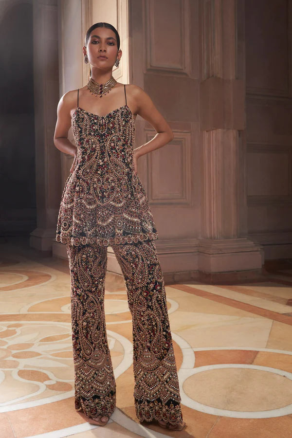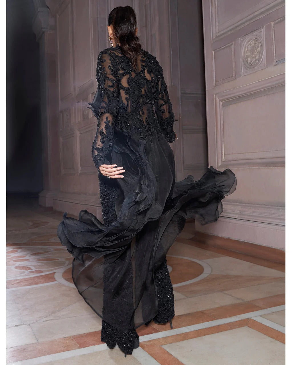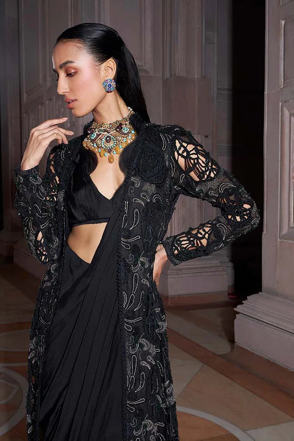 Black Zorah Pure Organza Jacket Set