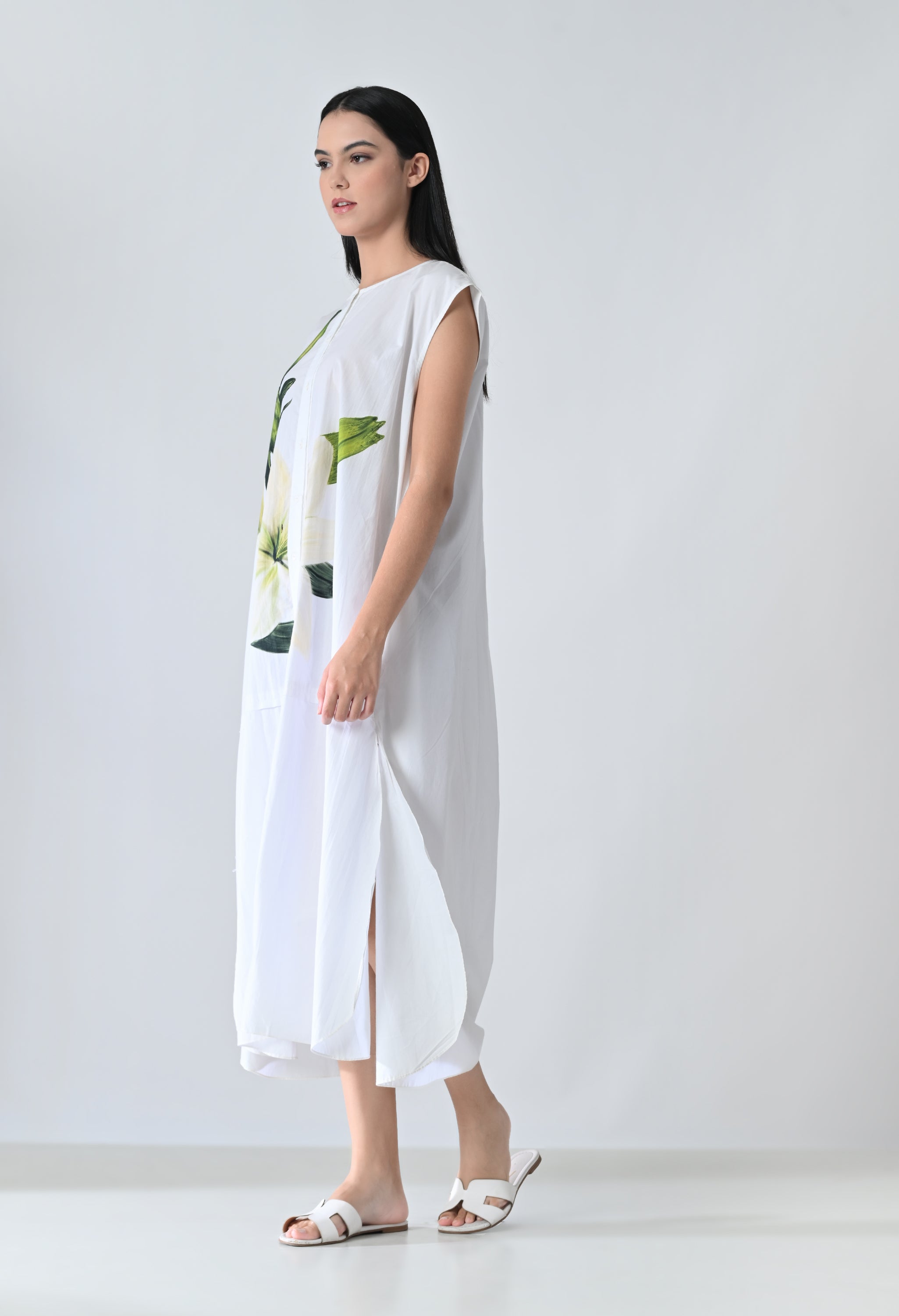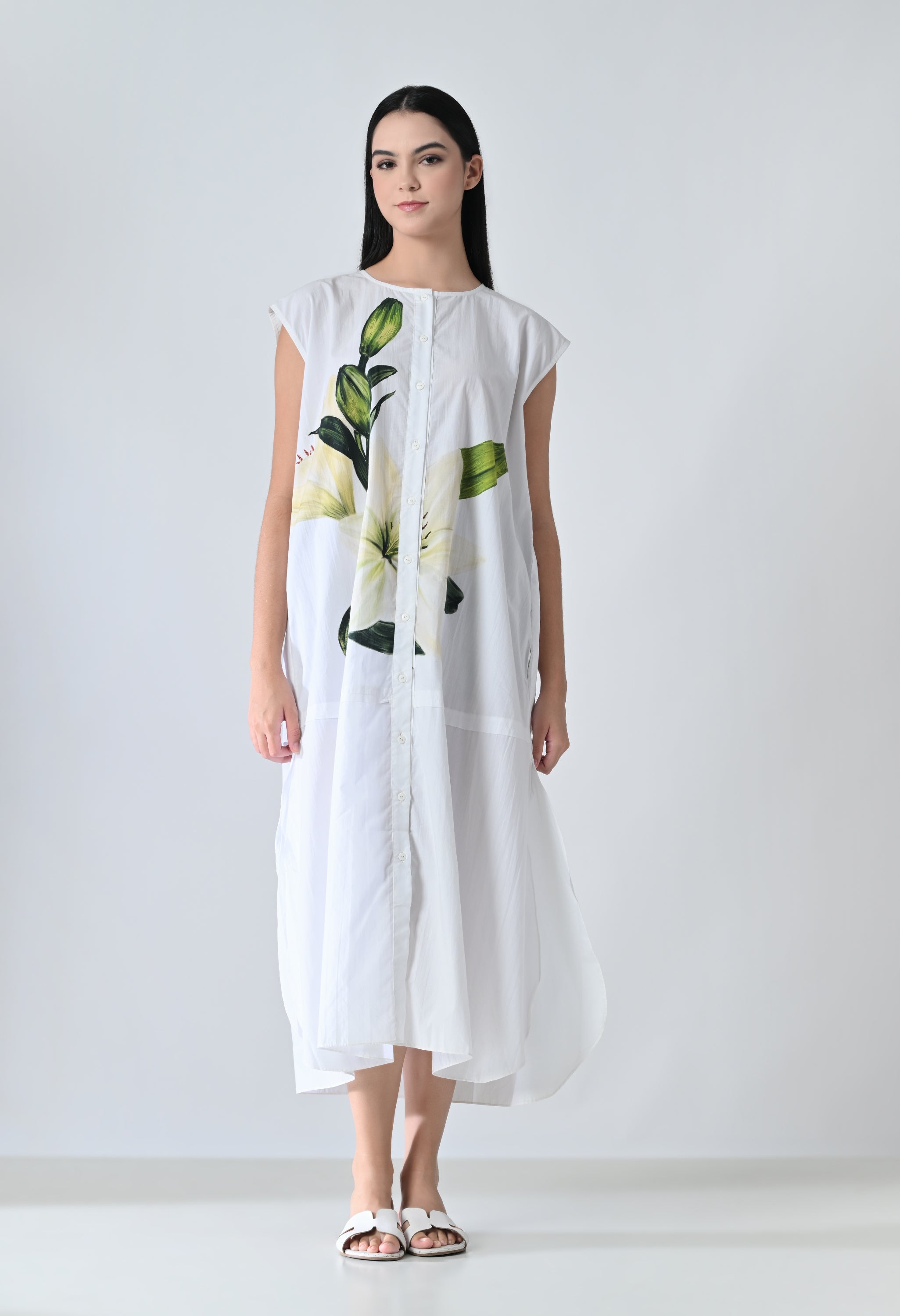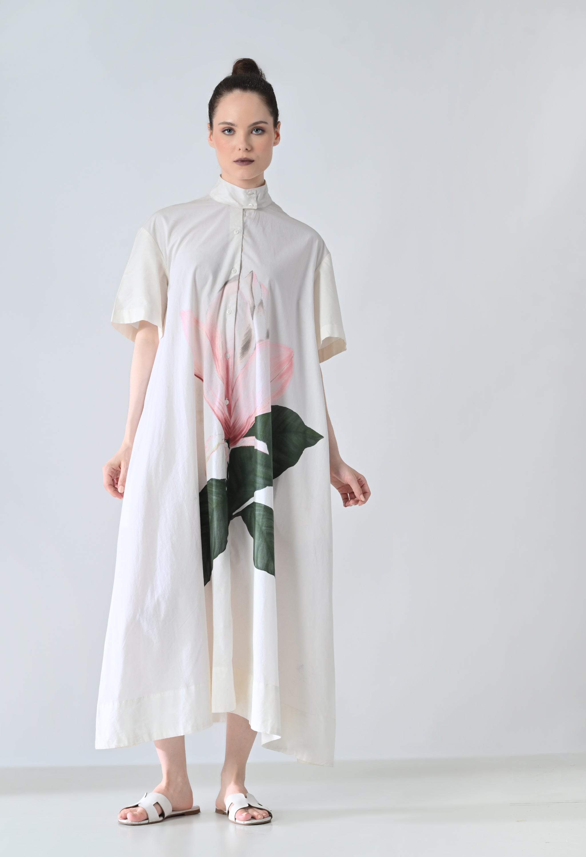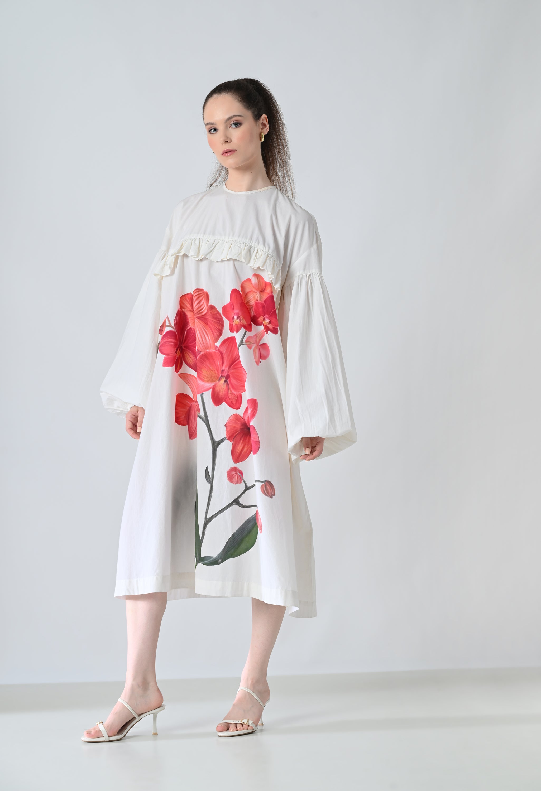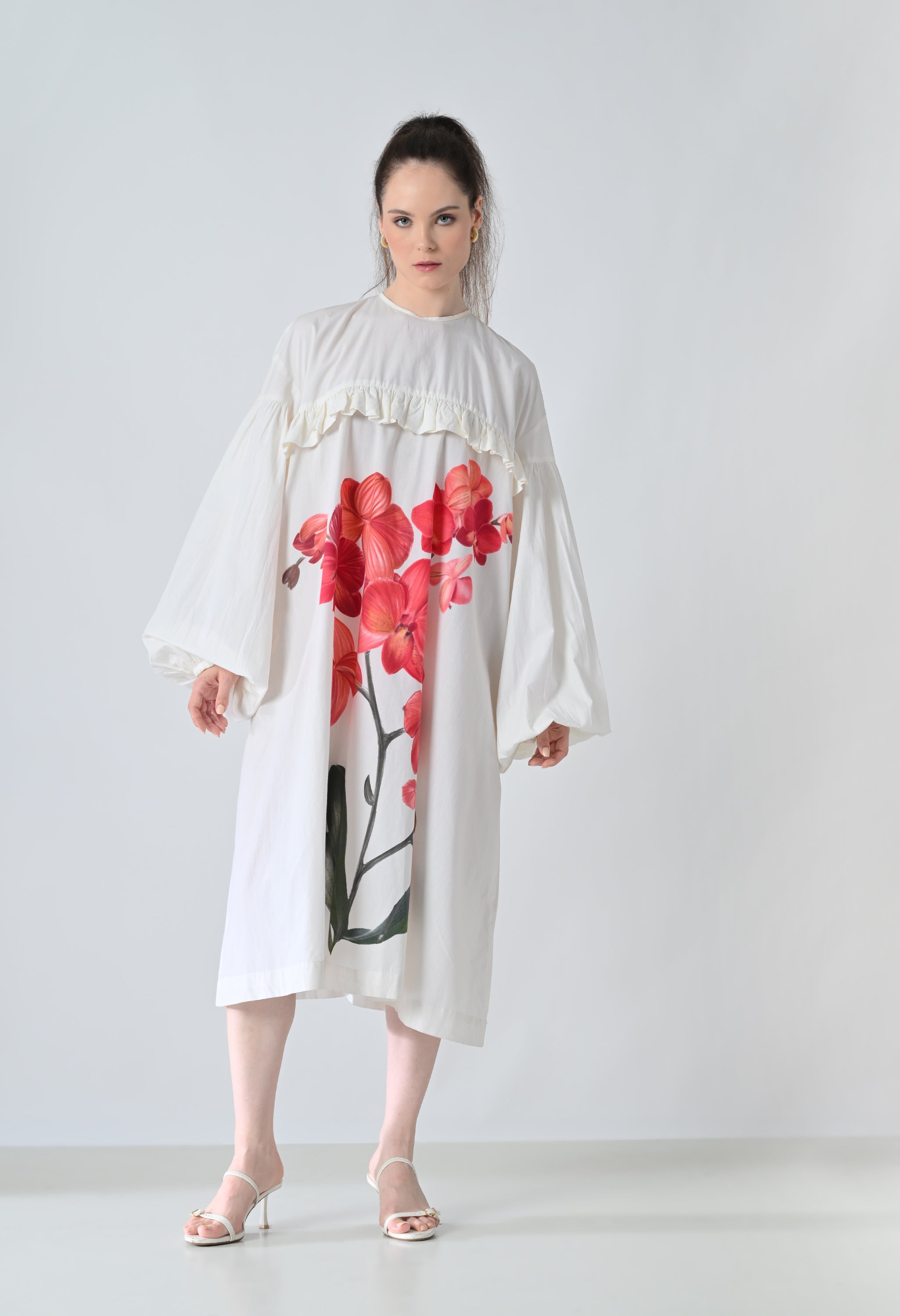Ivory Orchid Printed Statement Shirt Dress