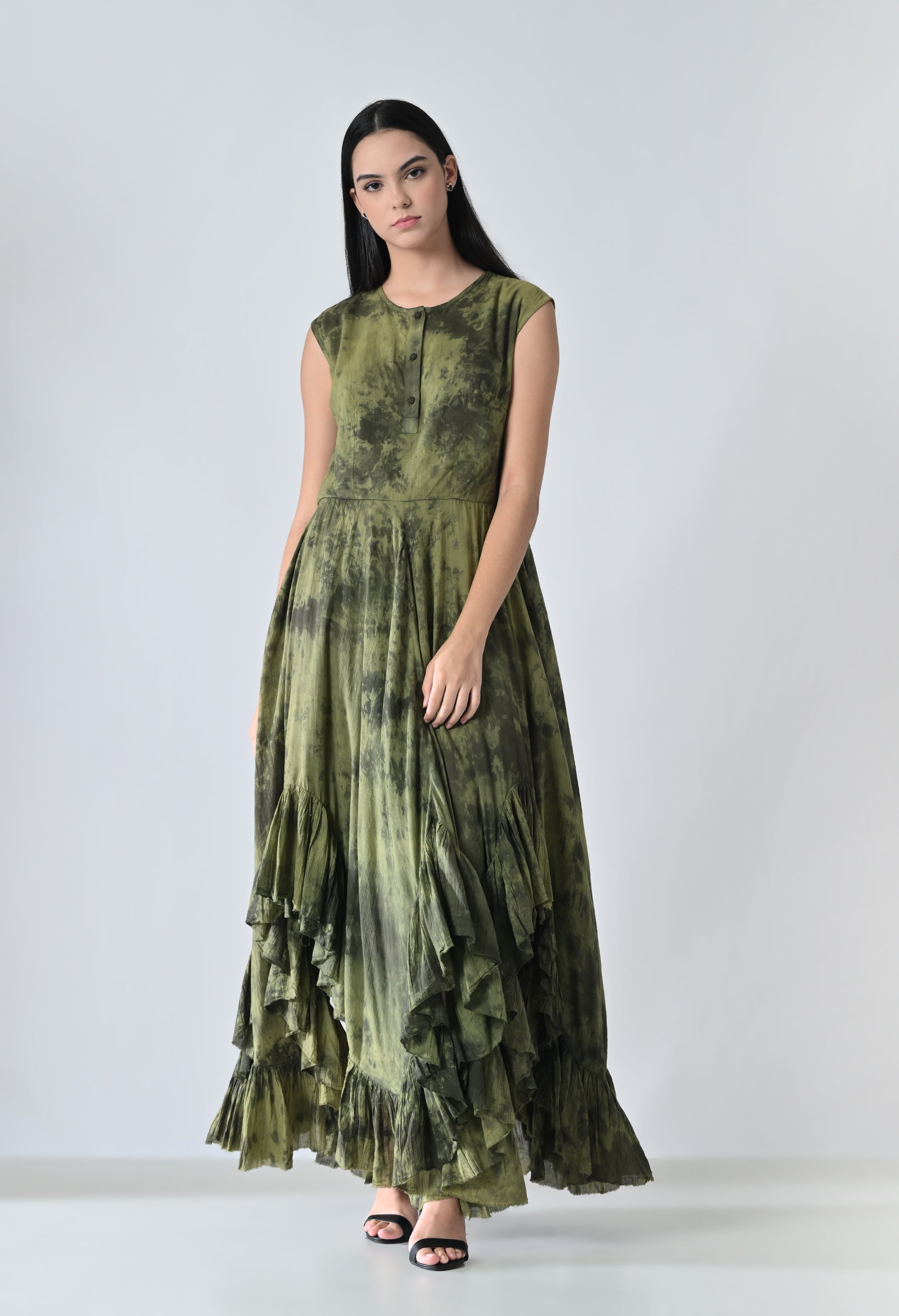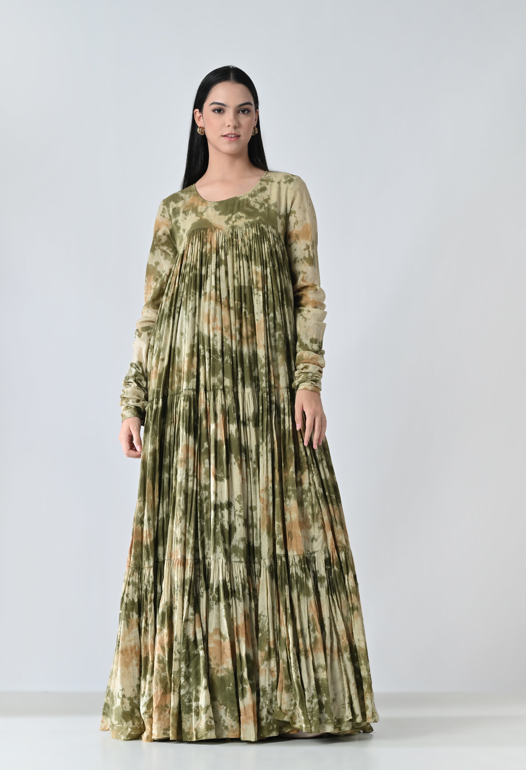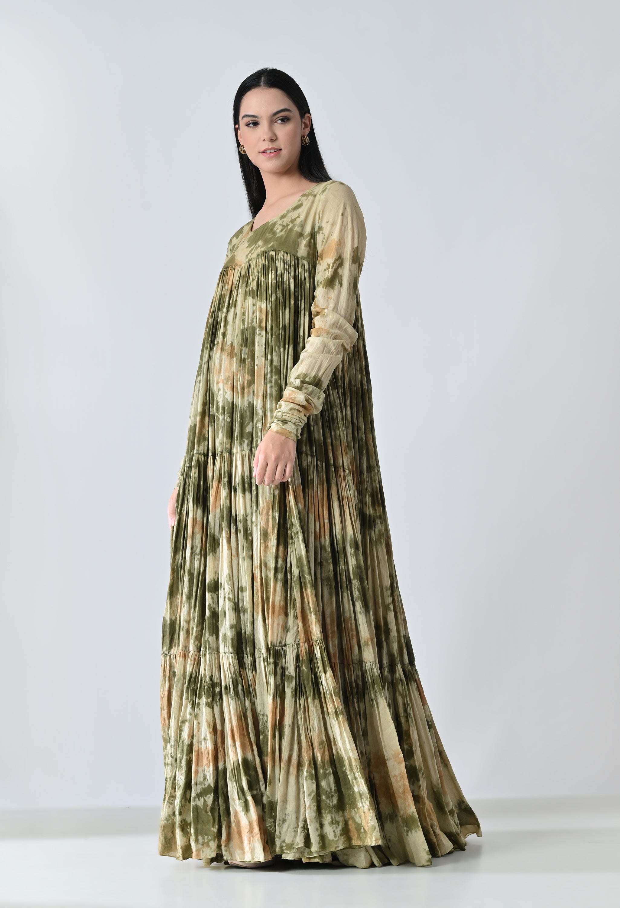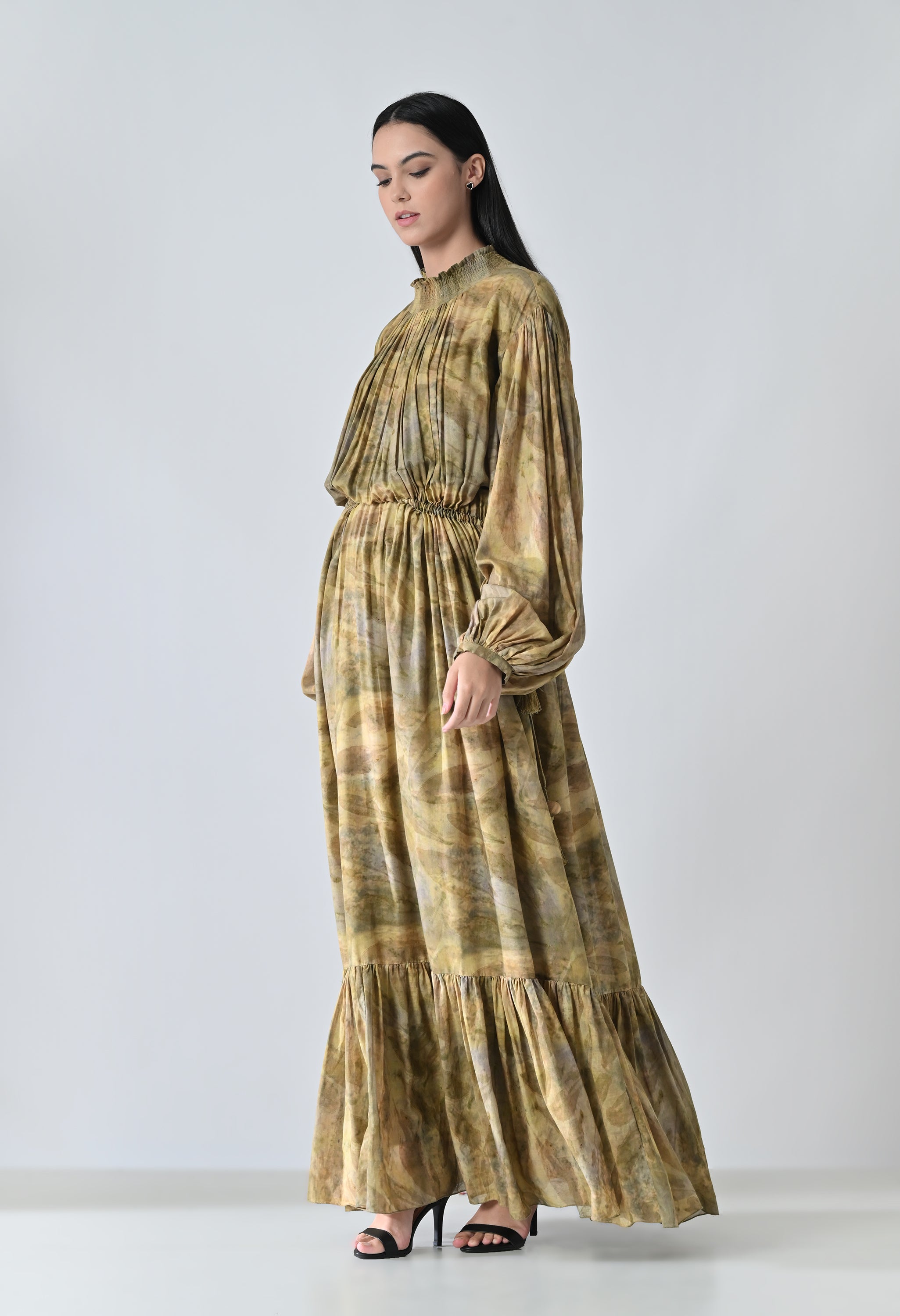 Olive Dye Printed Bloom Long Dress