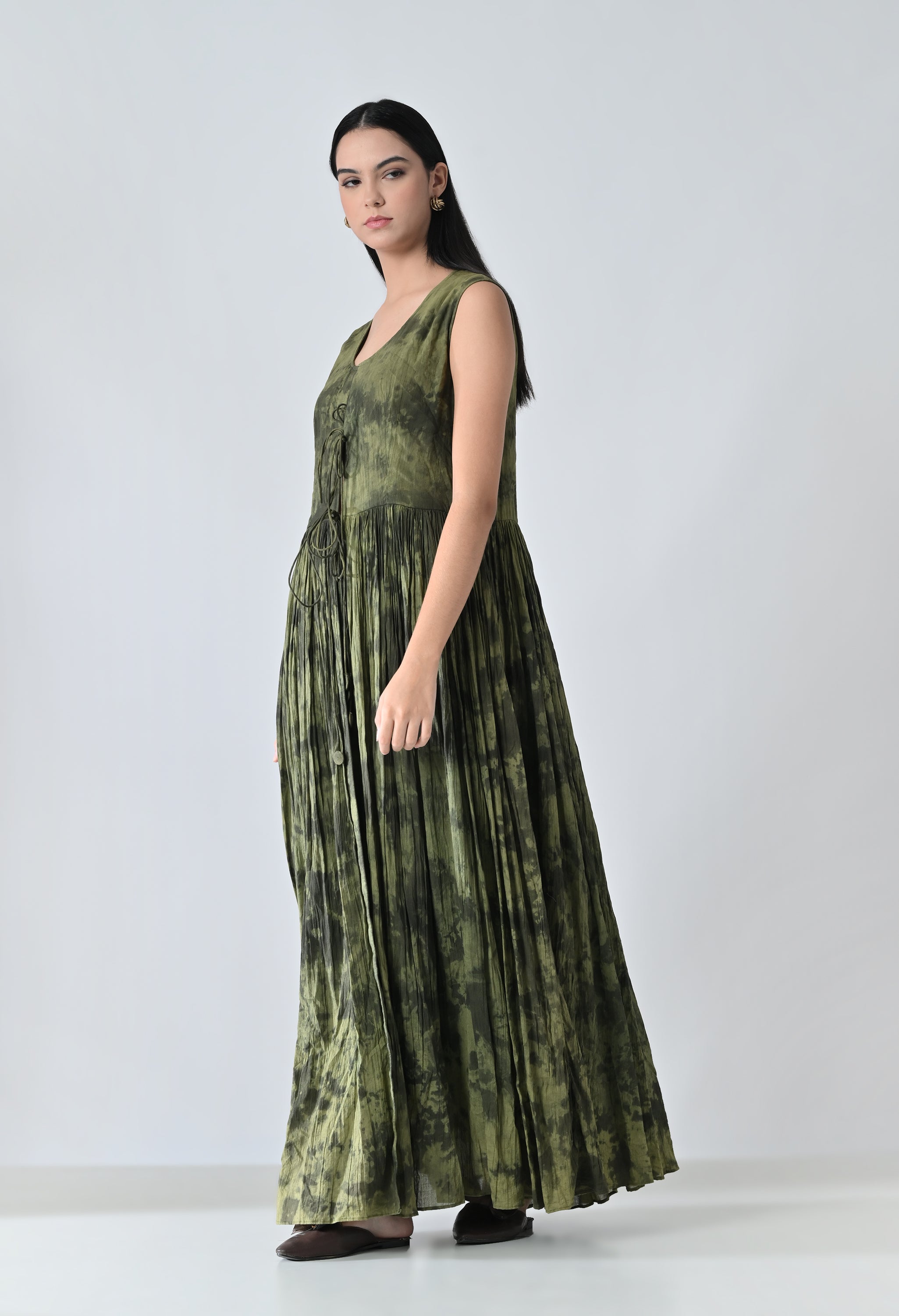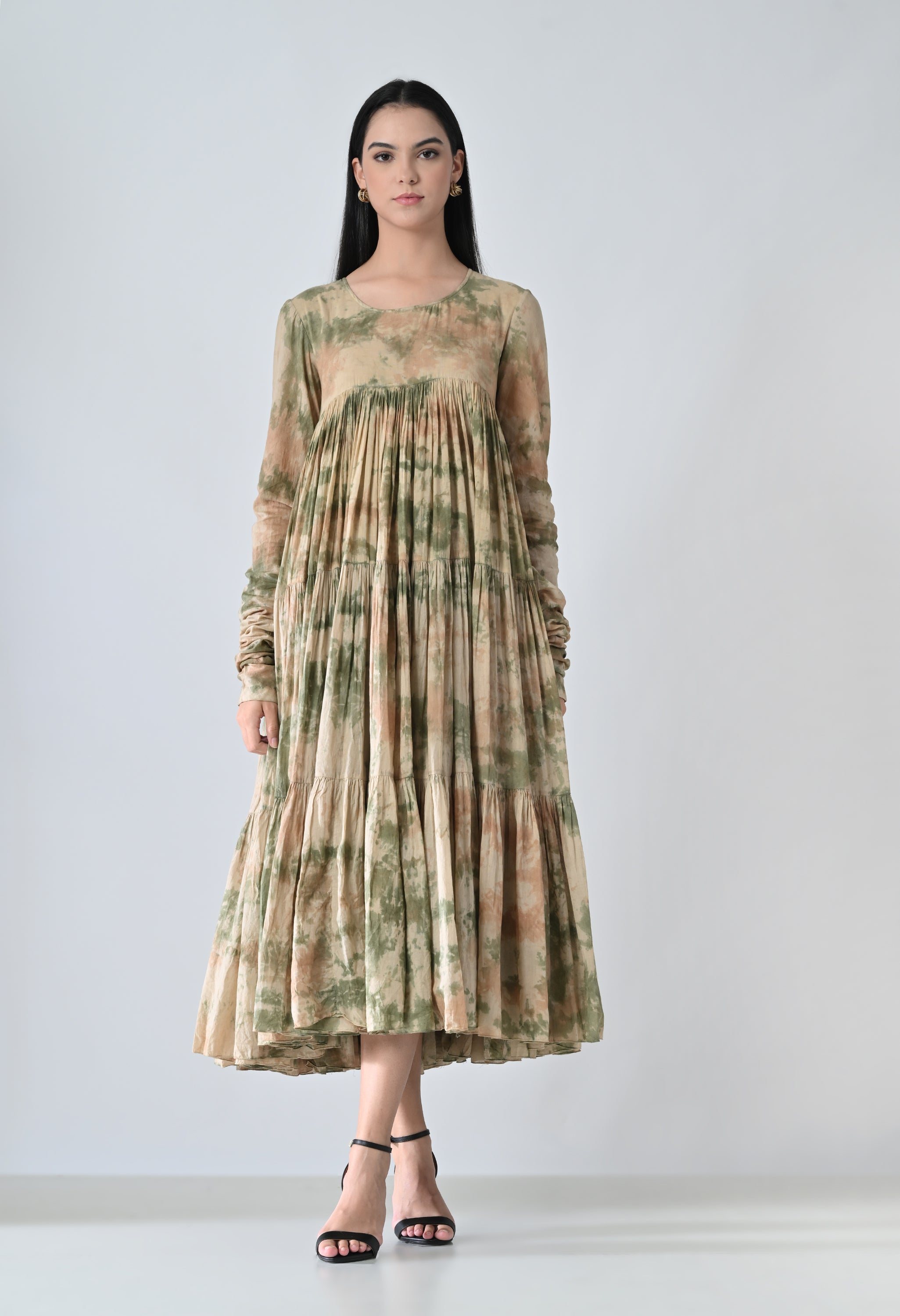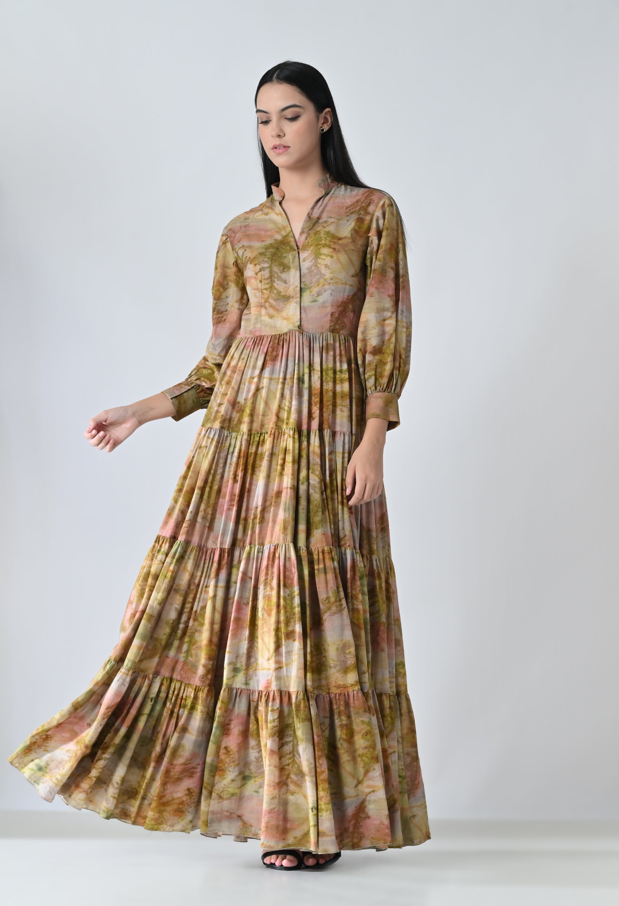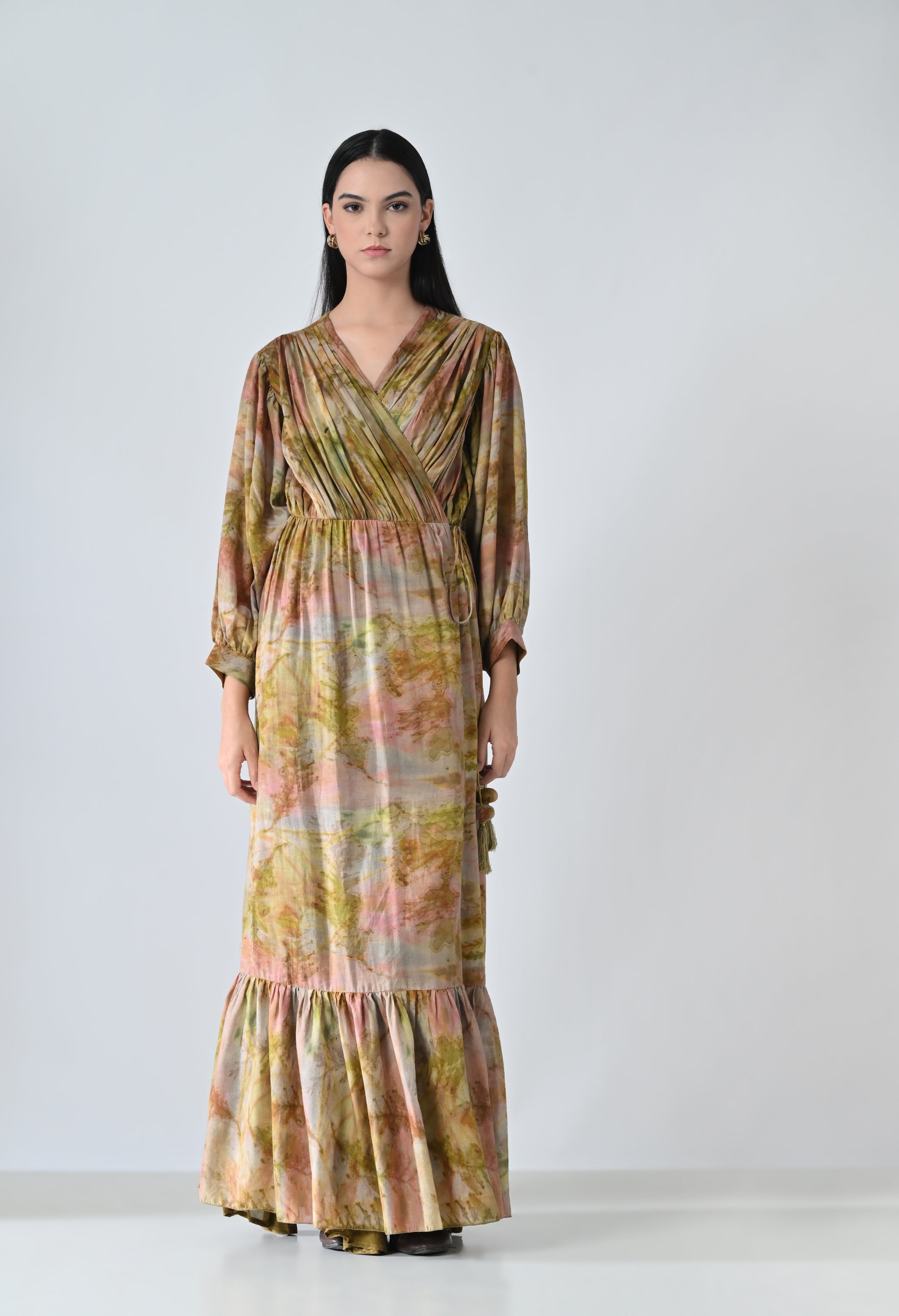 Olive Dye Printed Bloom Long Dress