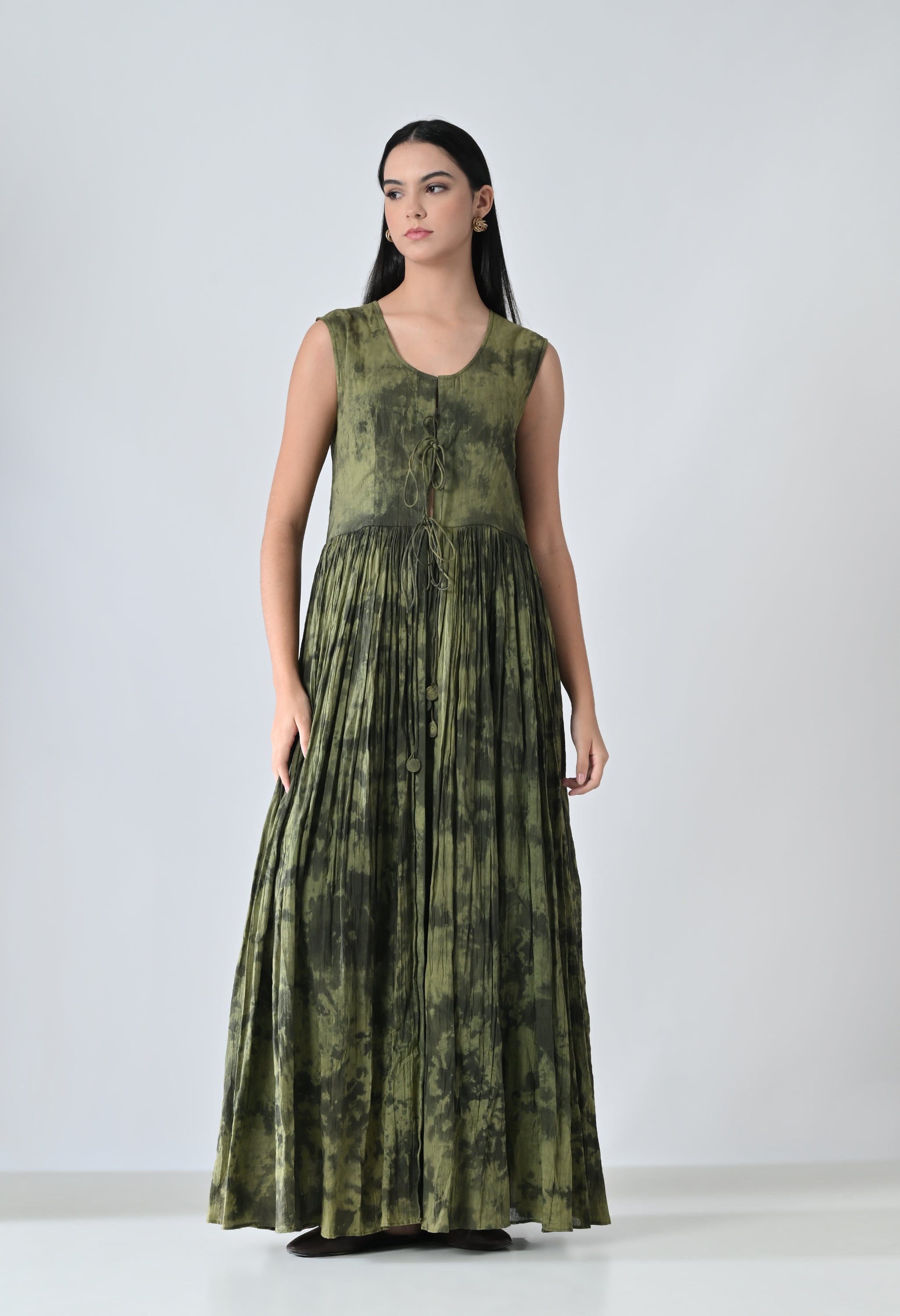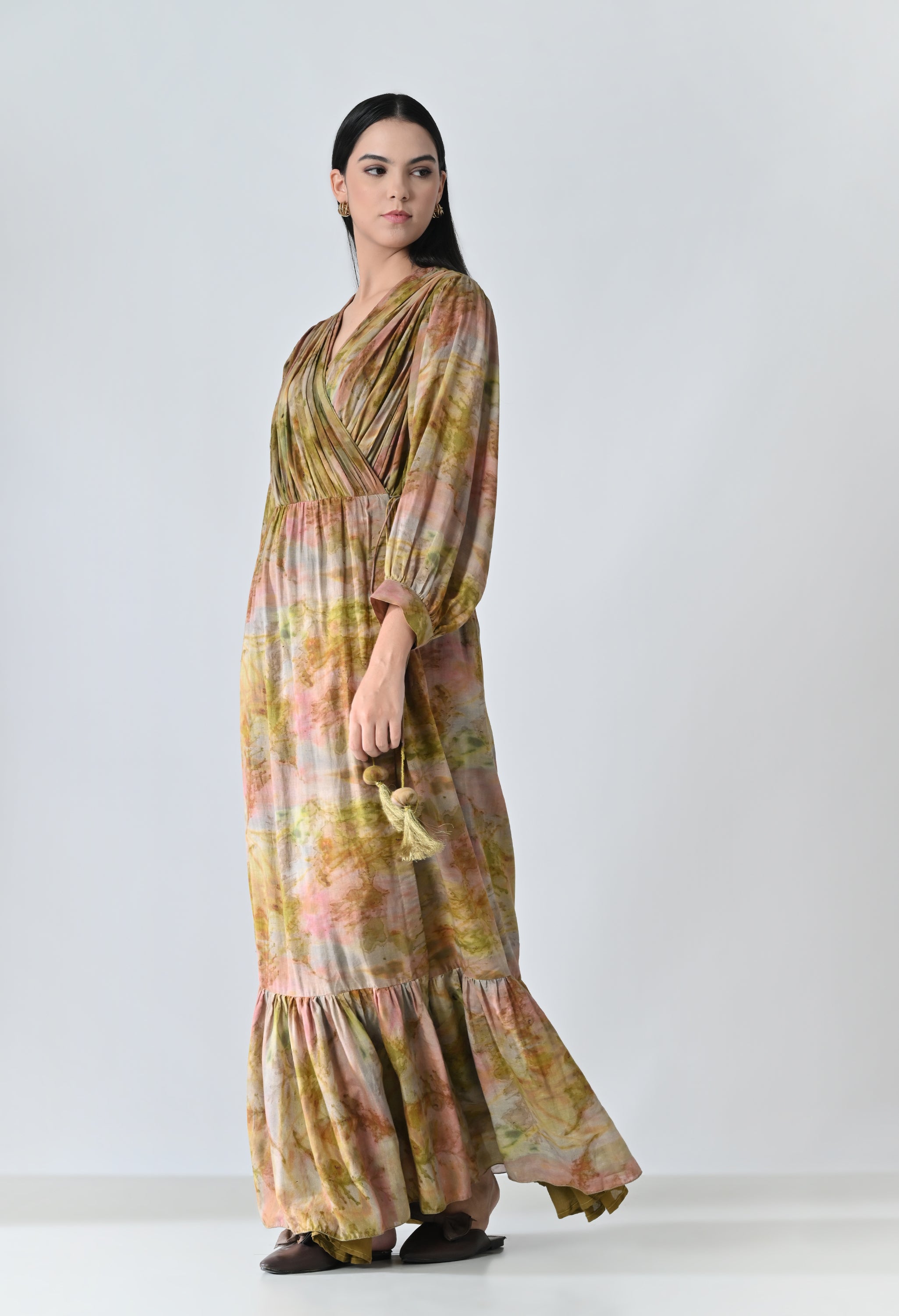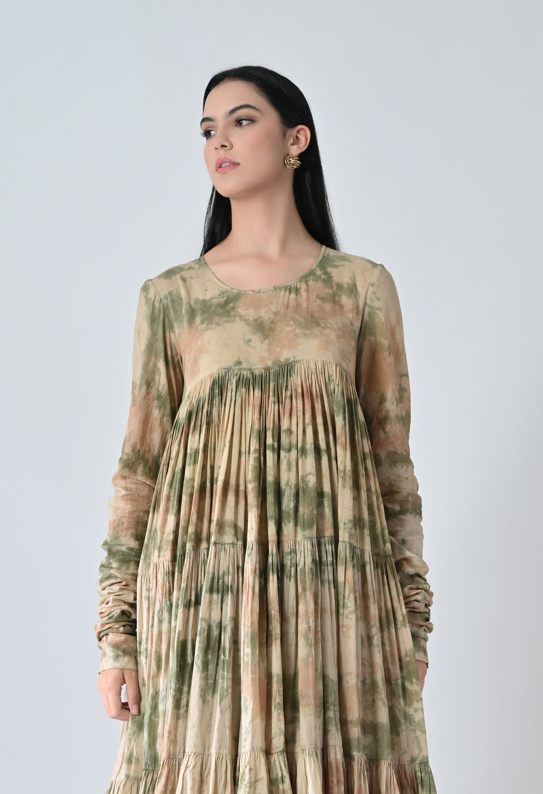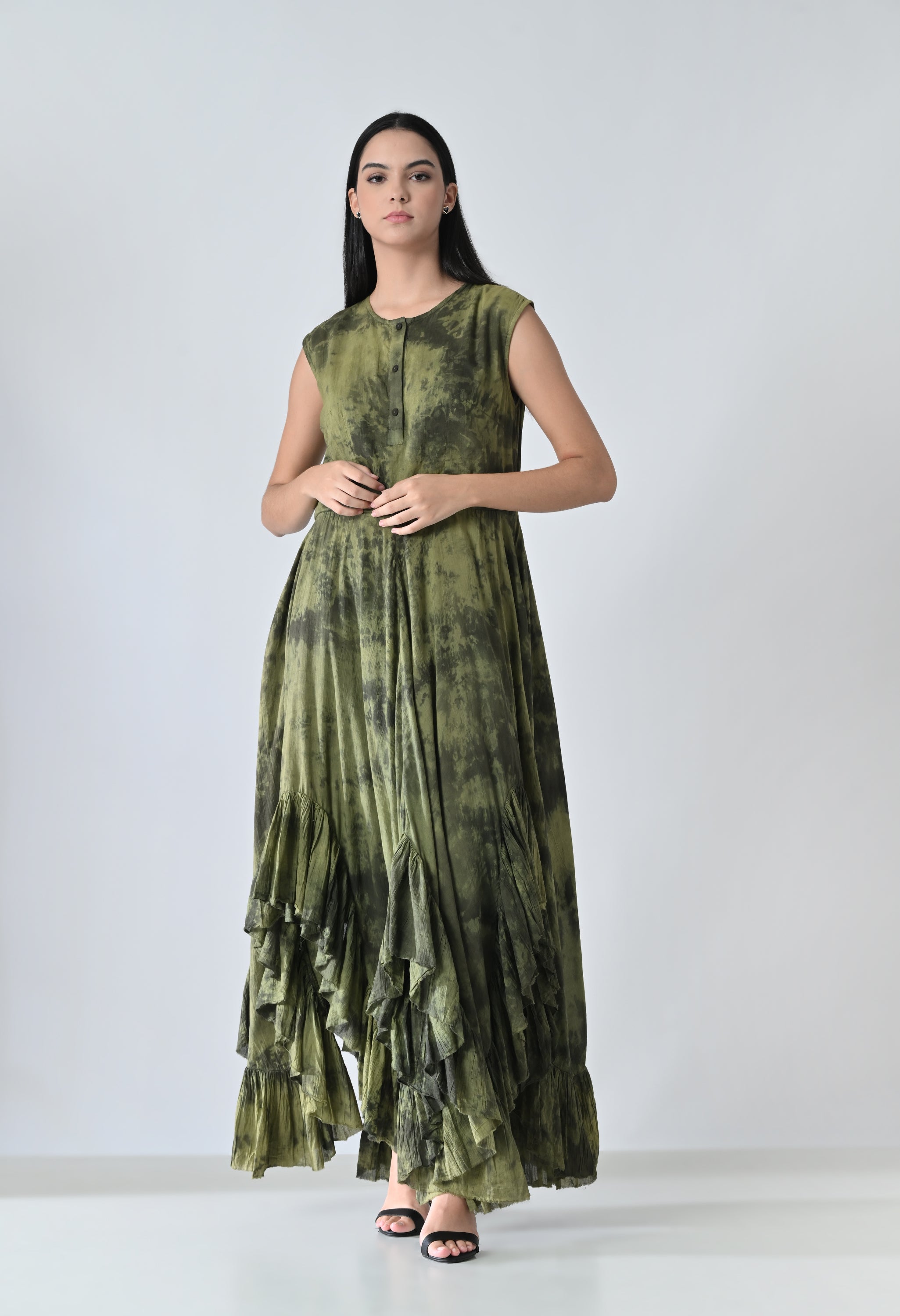Olive Dye Printed Bloom Long Dress