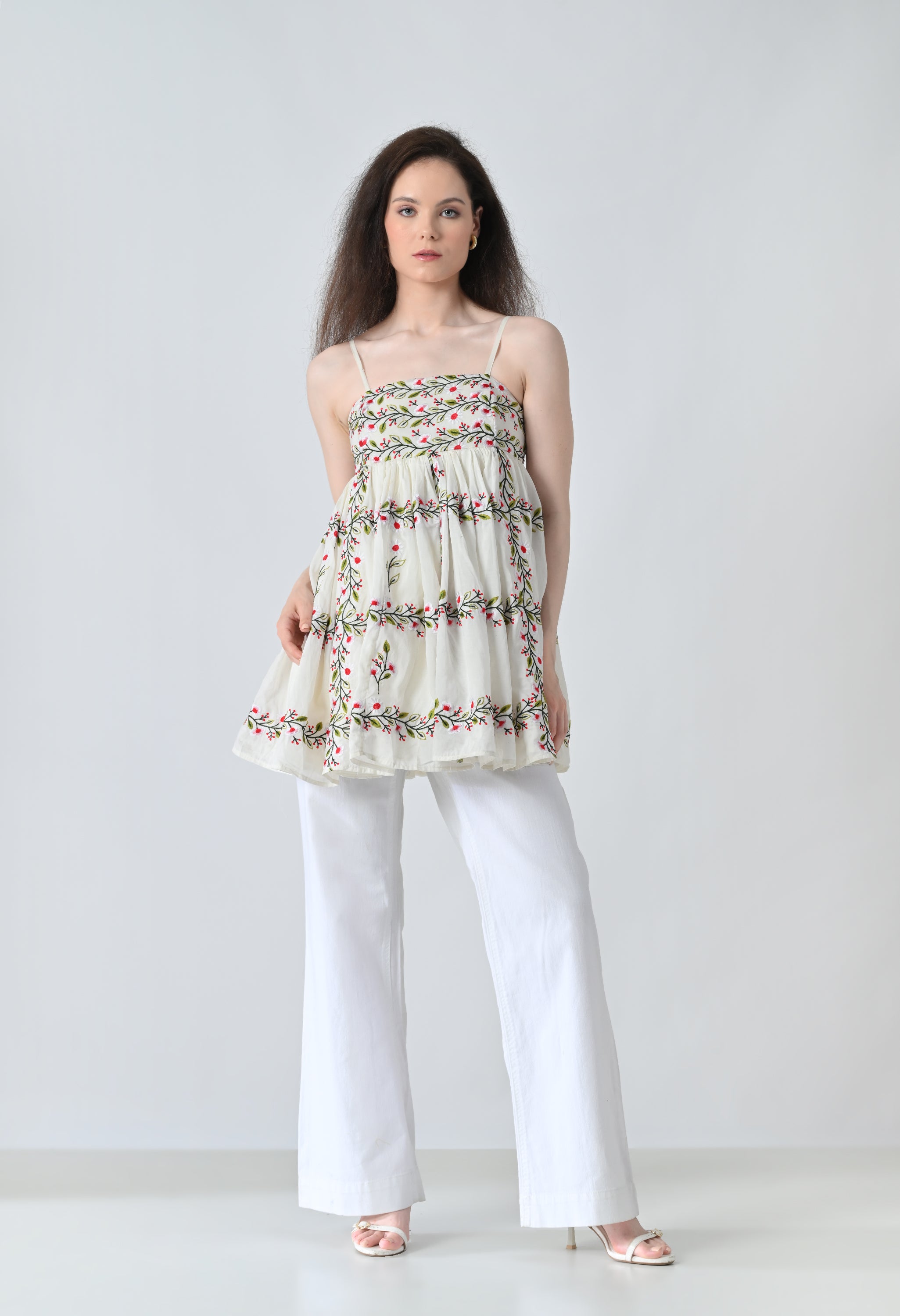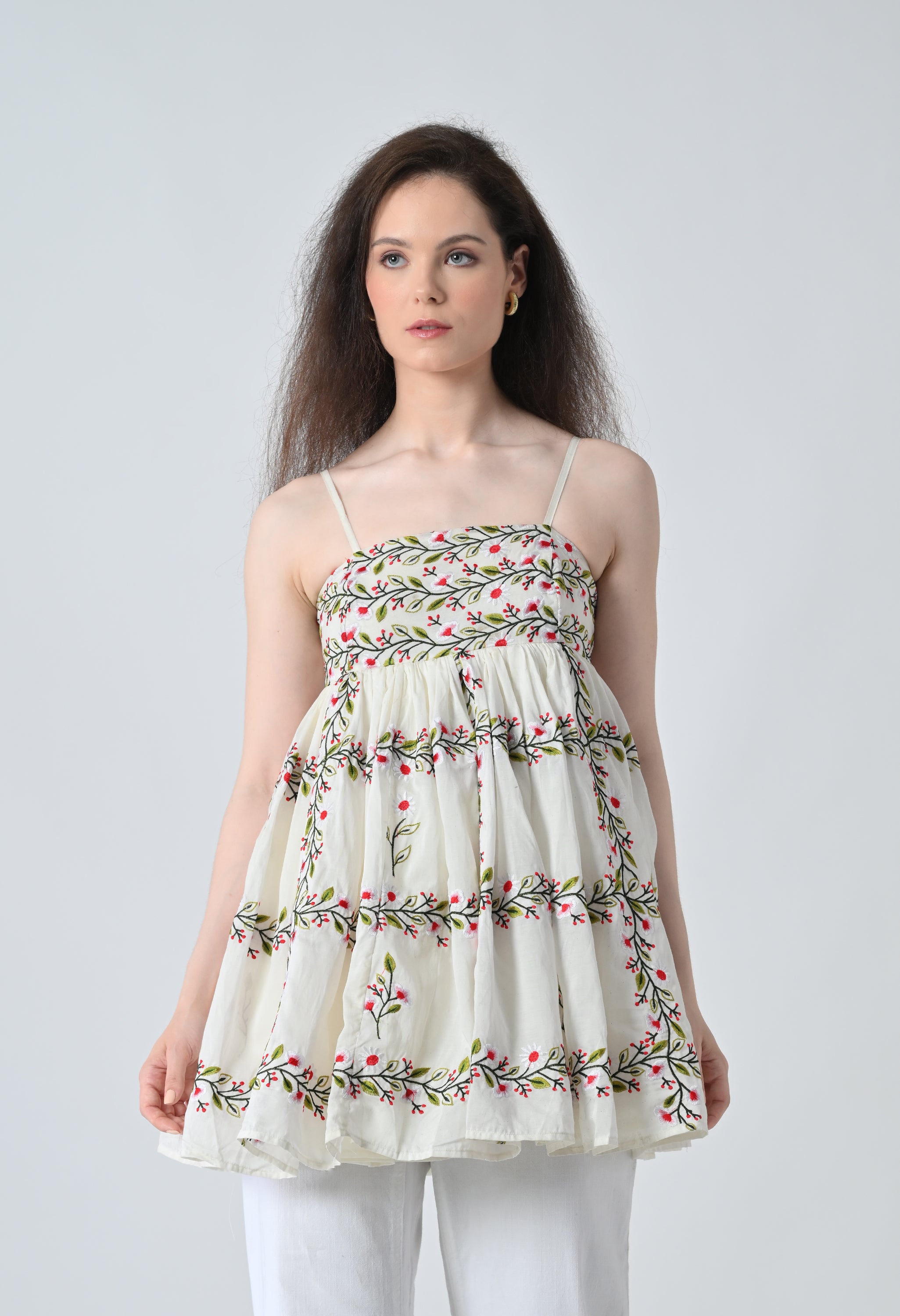 Ivory Vine Embroidered Tiered Top