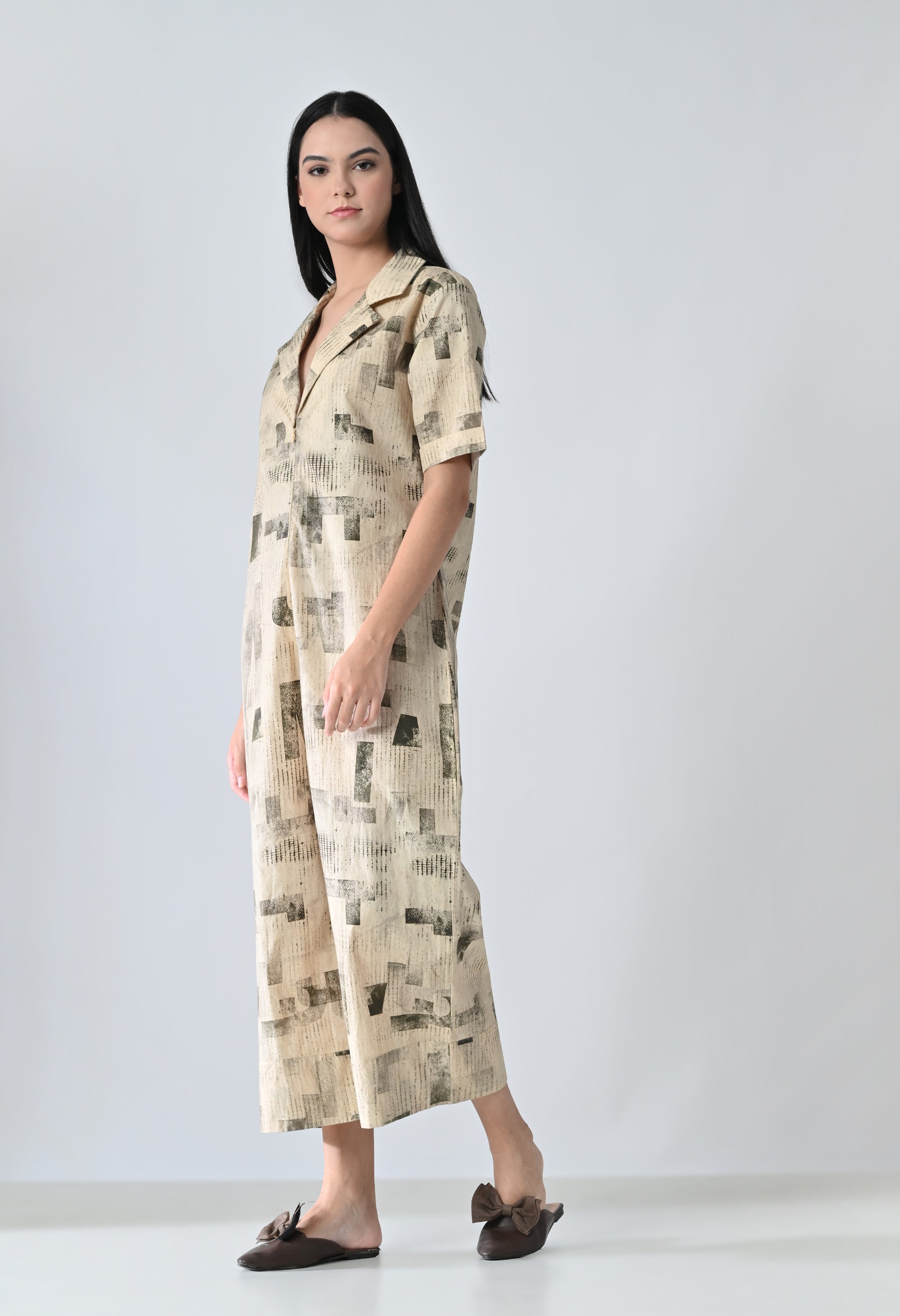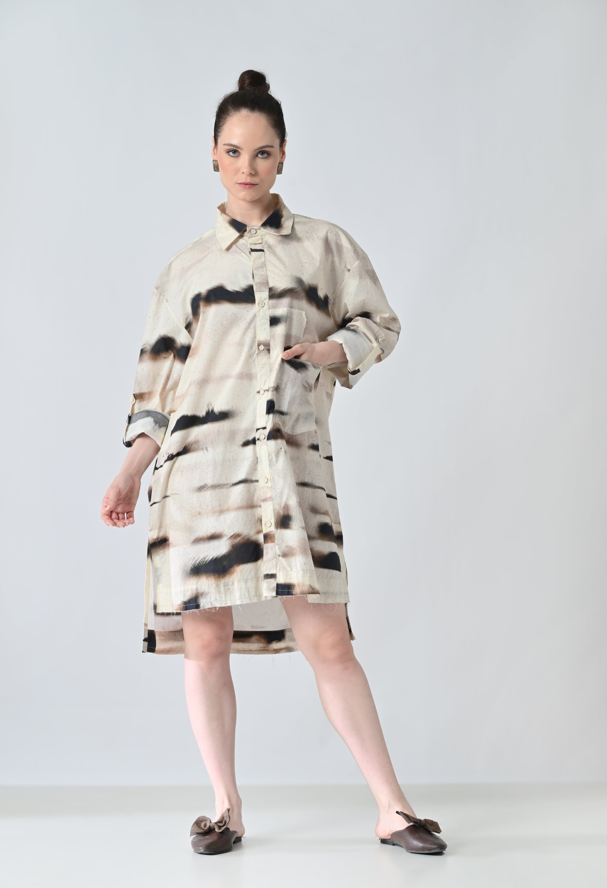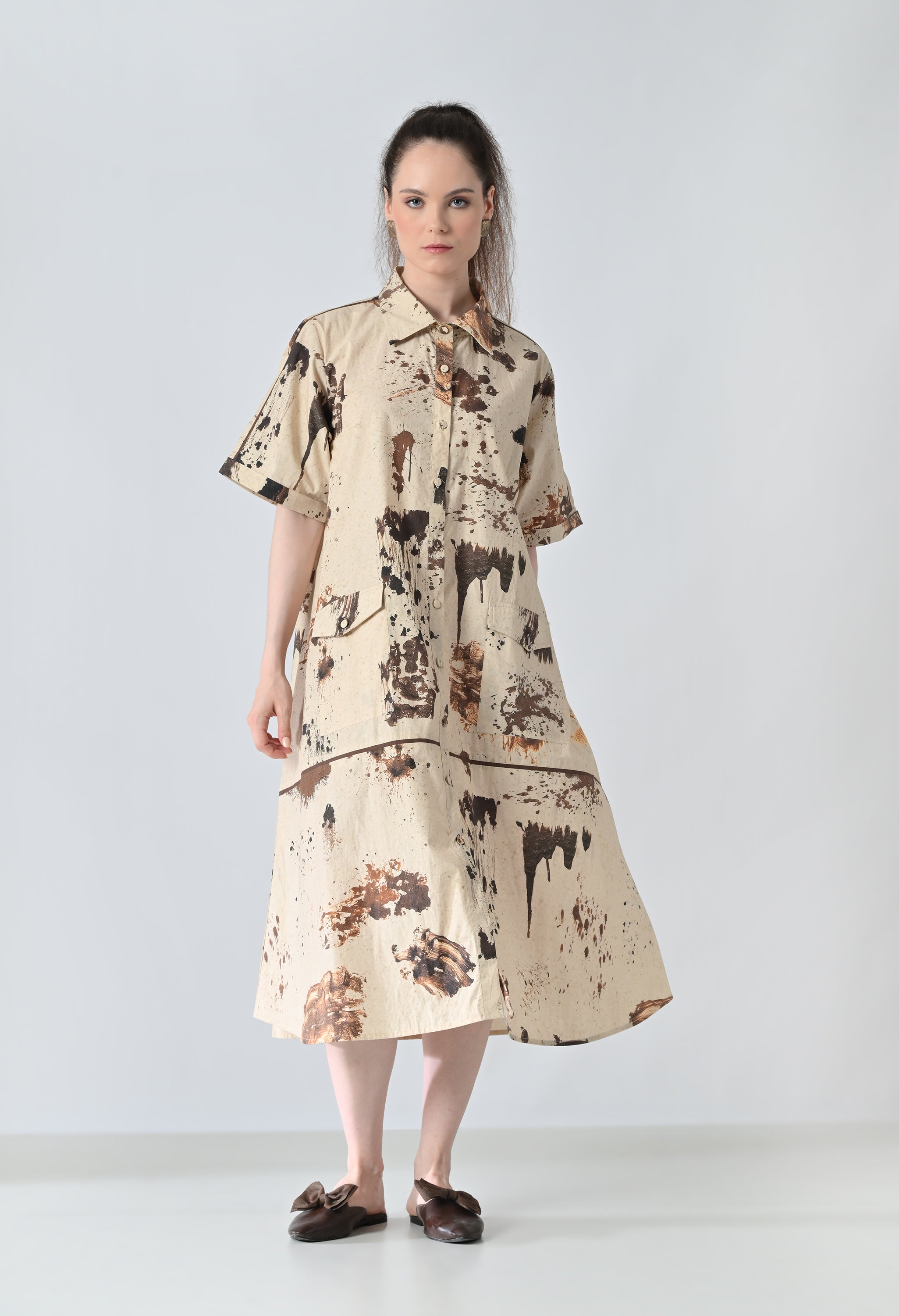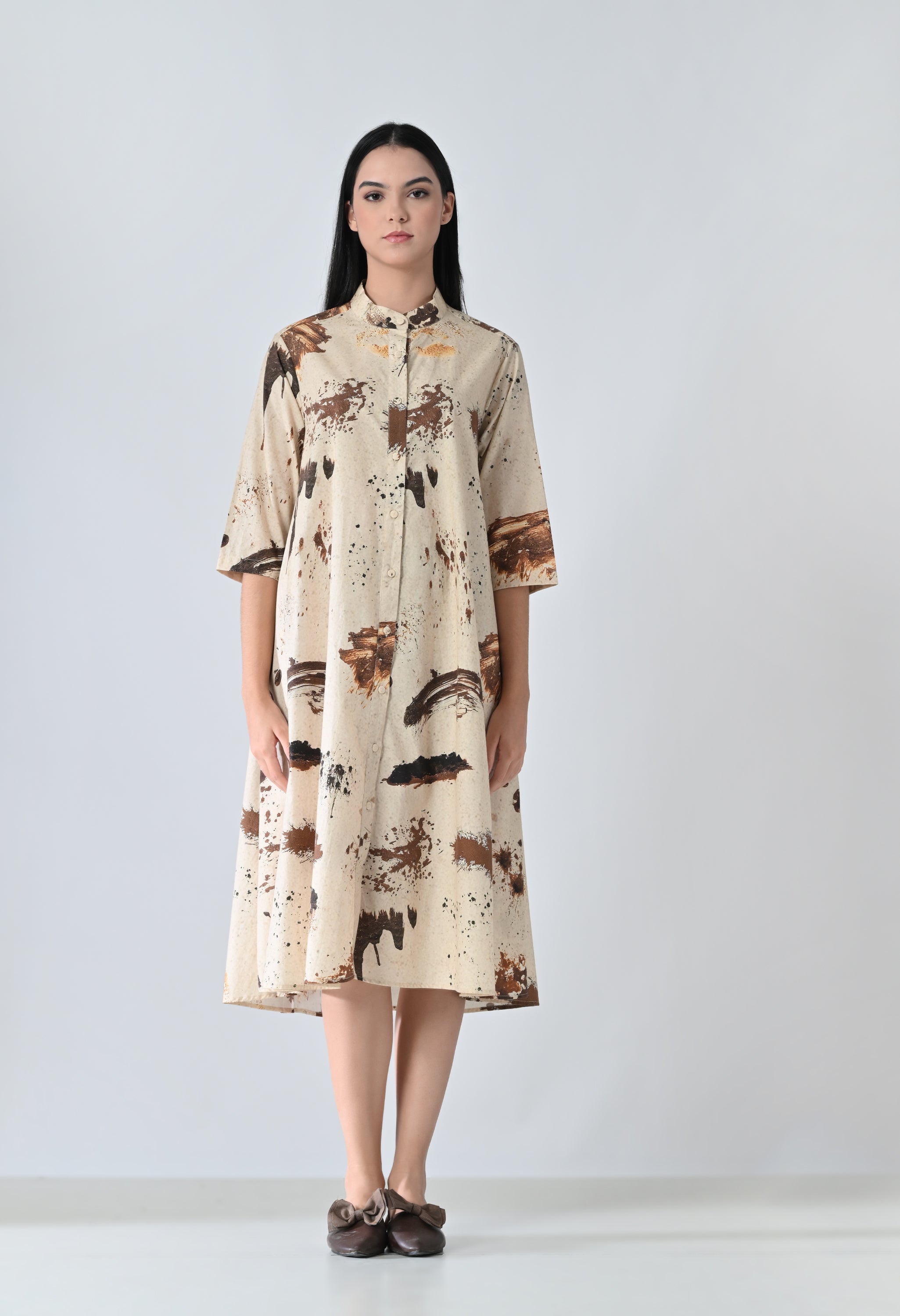 Earthscape Biege Printed Shirt Dress