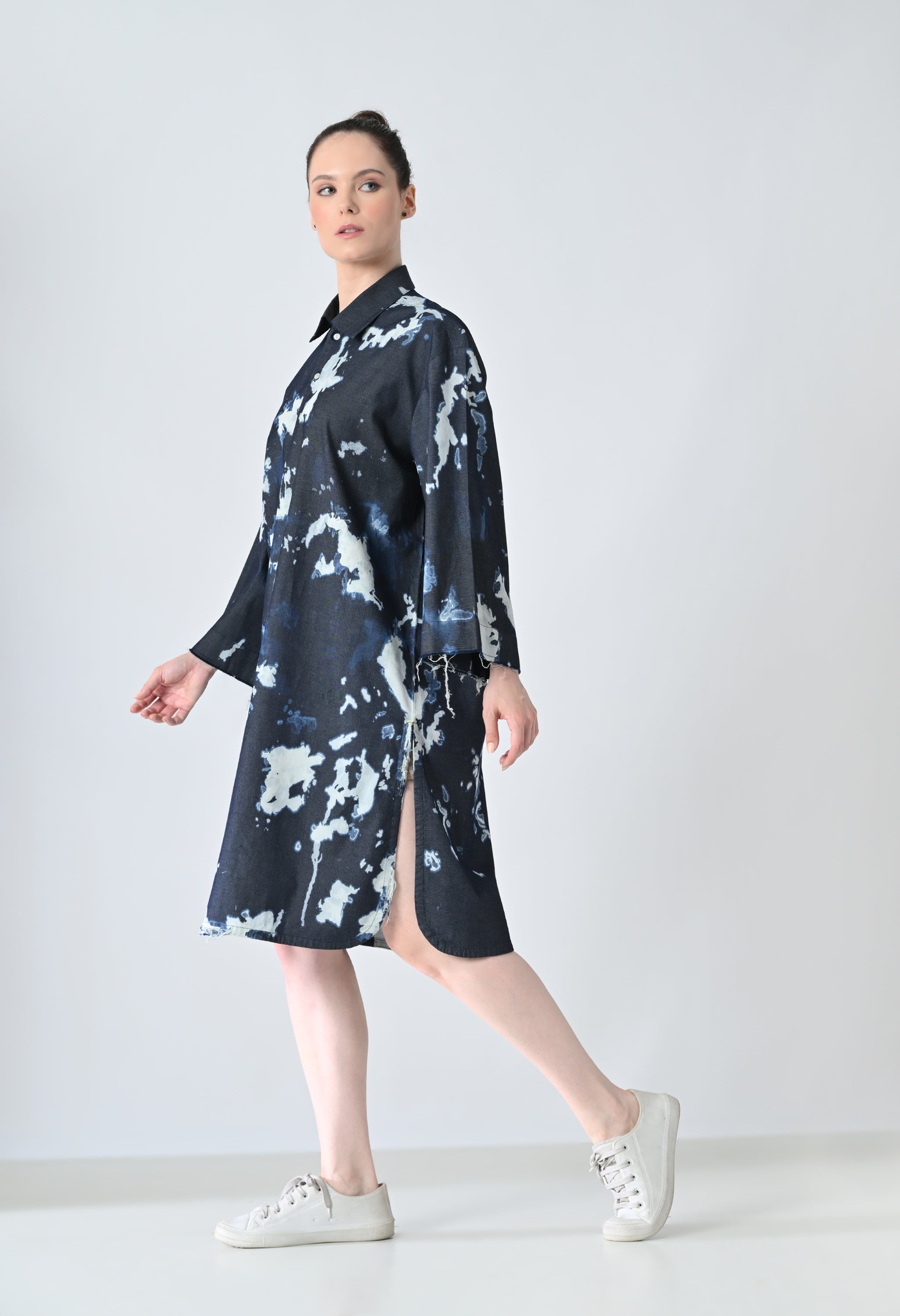 Midnight Blue Ink Abstract Printed Shirt Dress