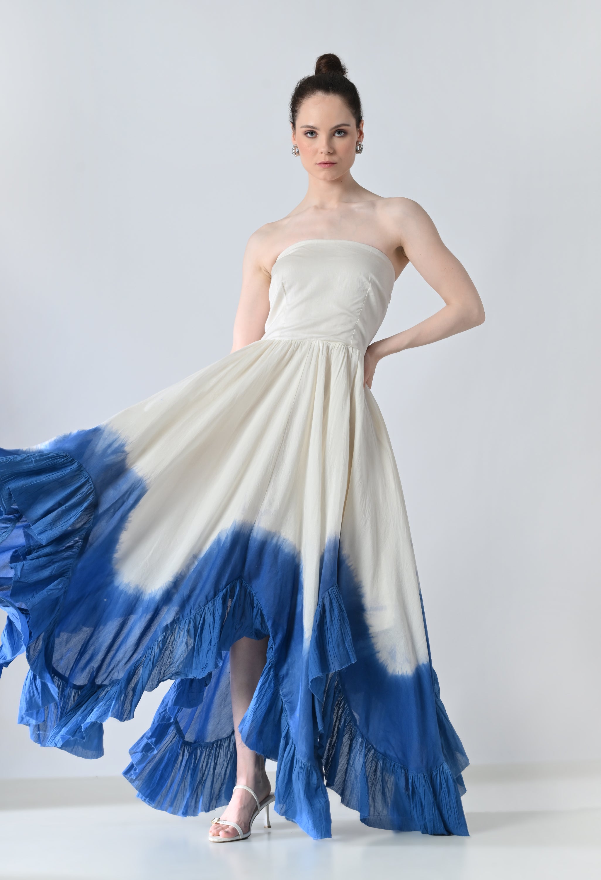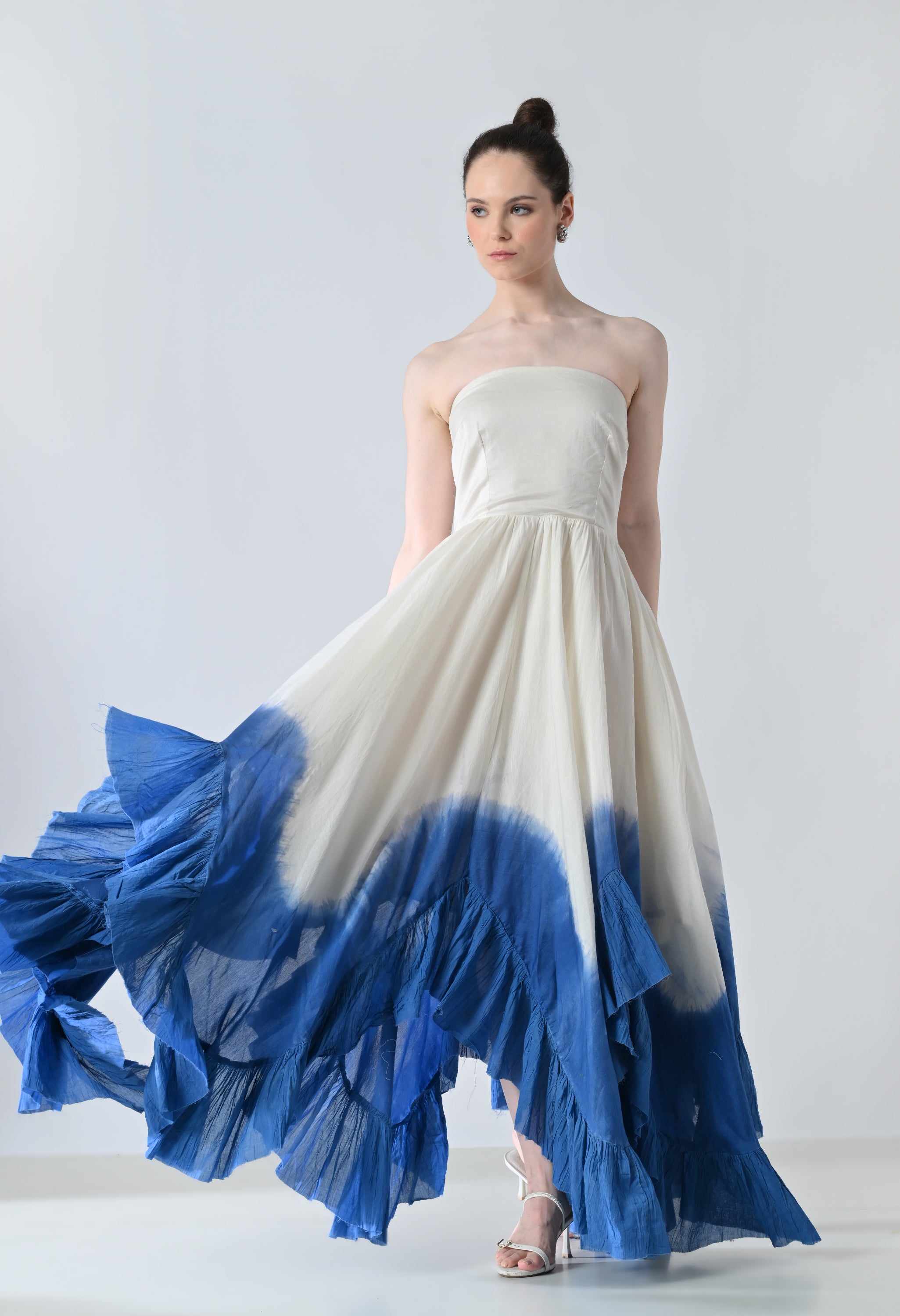 White & Blue Ombre Off Shoulder Dress