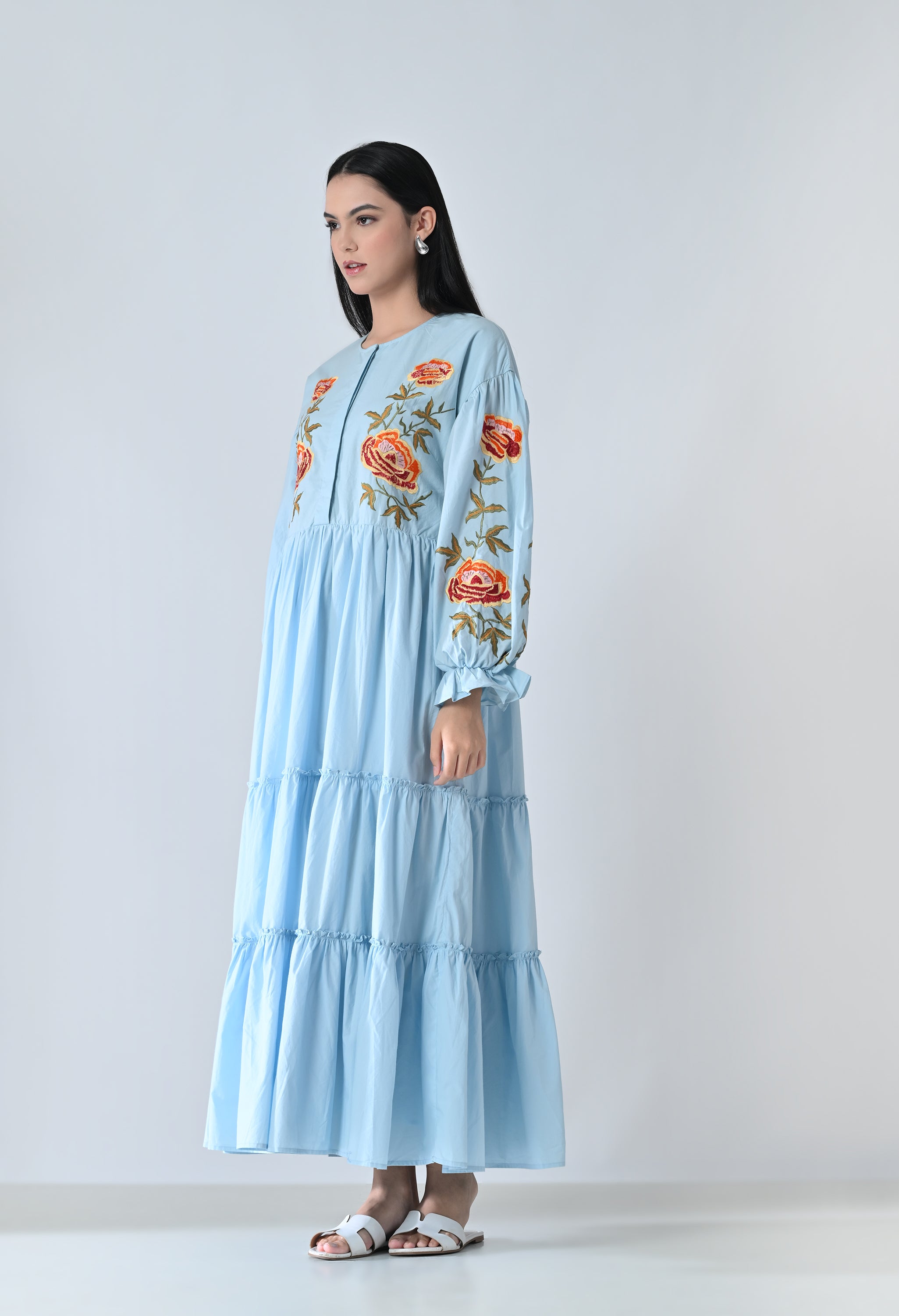 Powder Blue Embroidered Tiered Dress