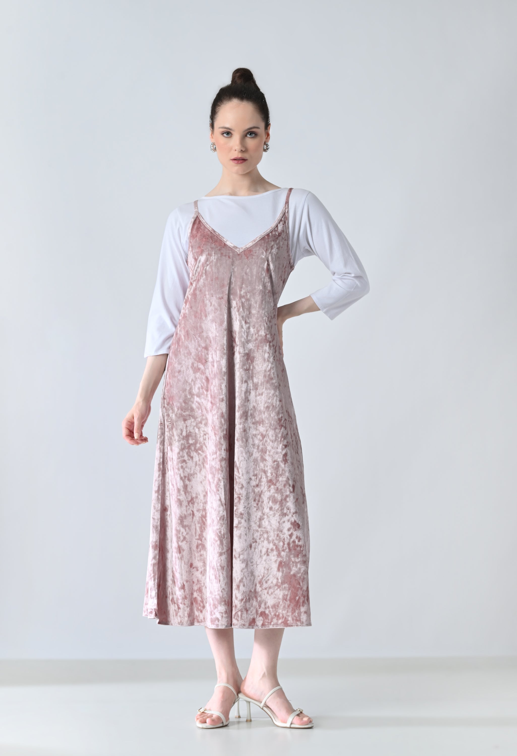 Blush Pink Velvet Strapy Dress