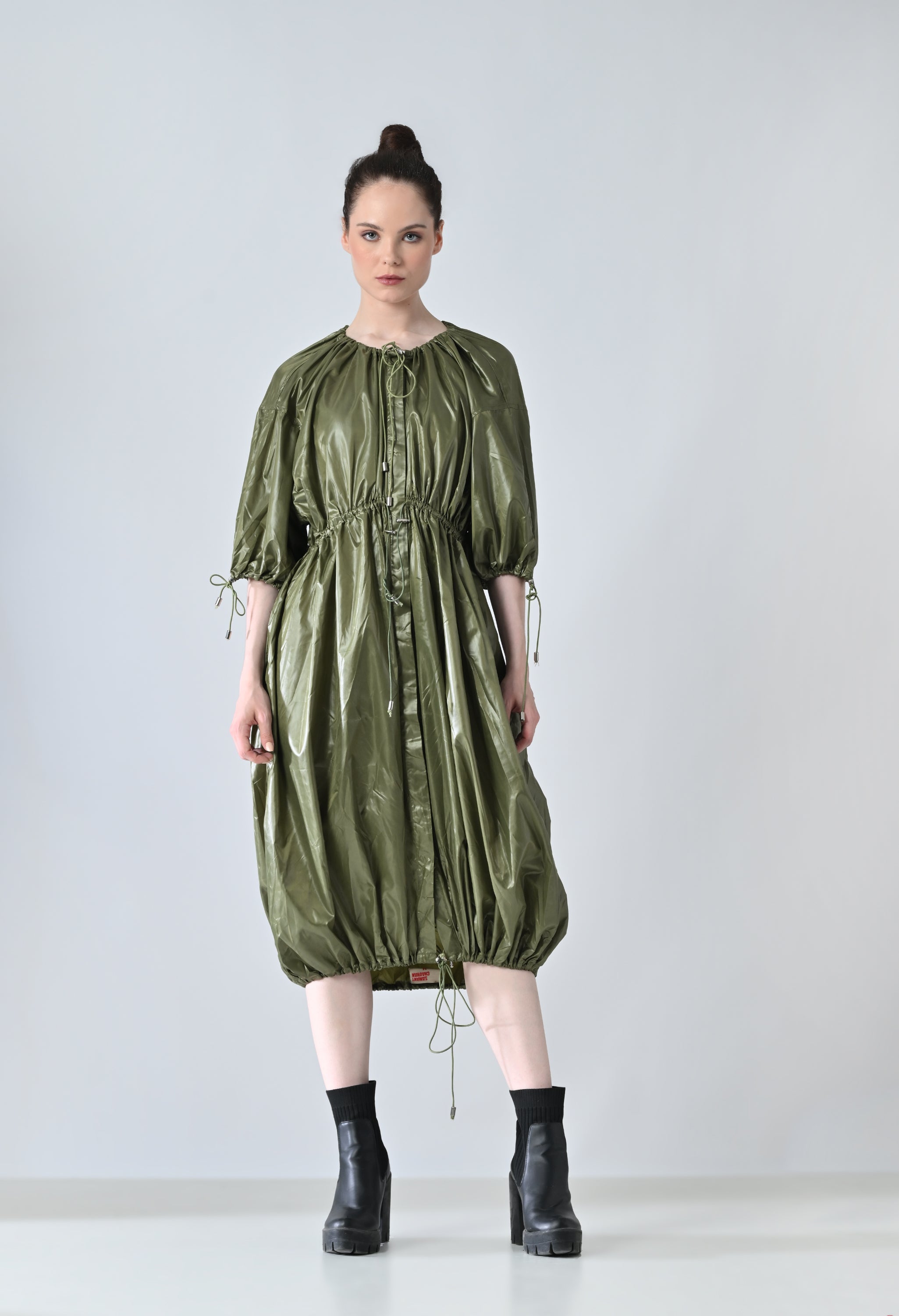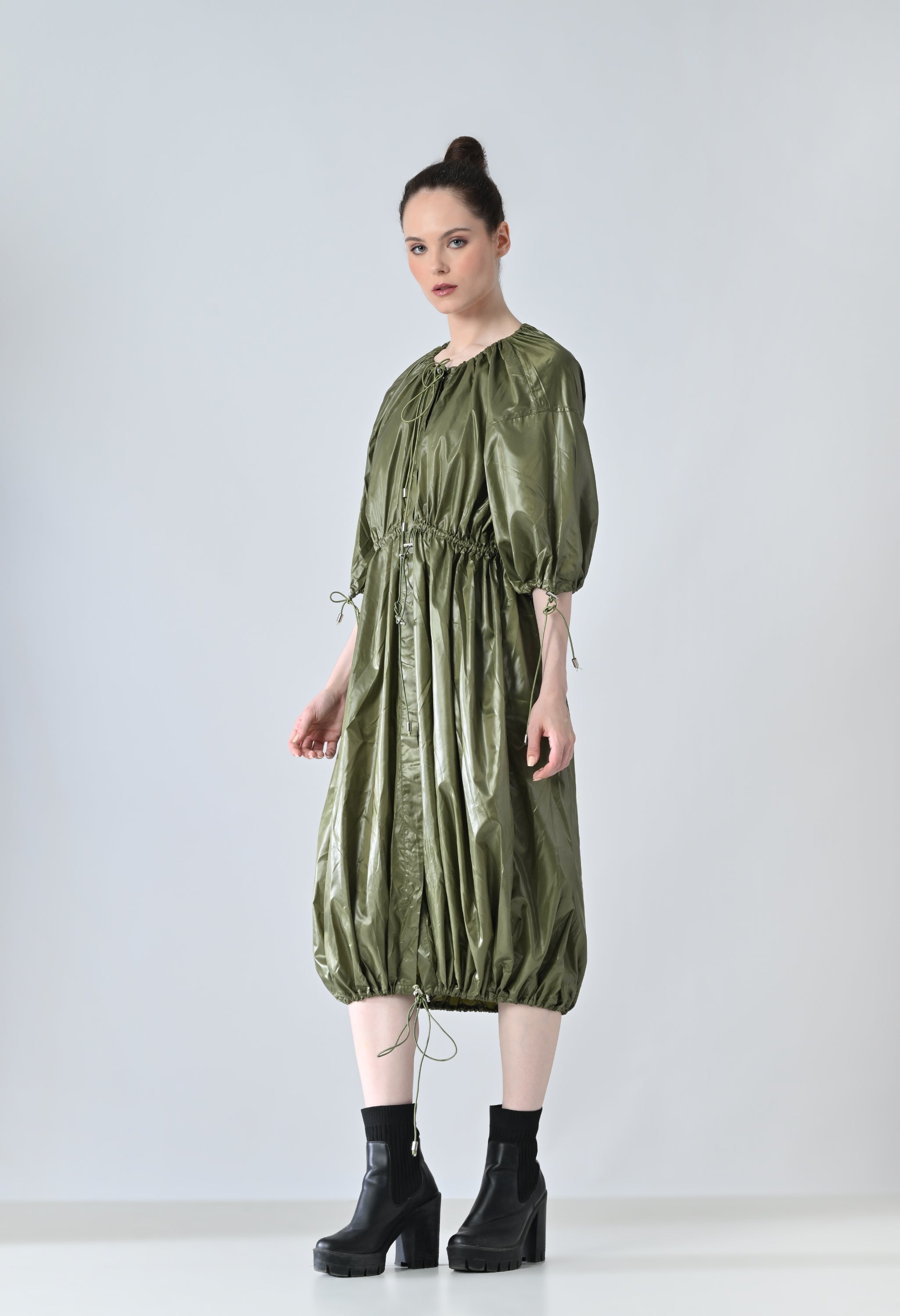 Olive Utility Gathered Ballon Dress
