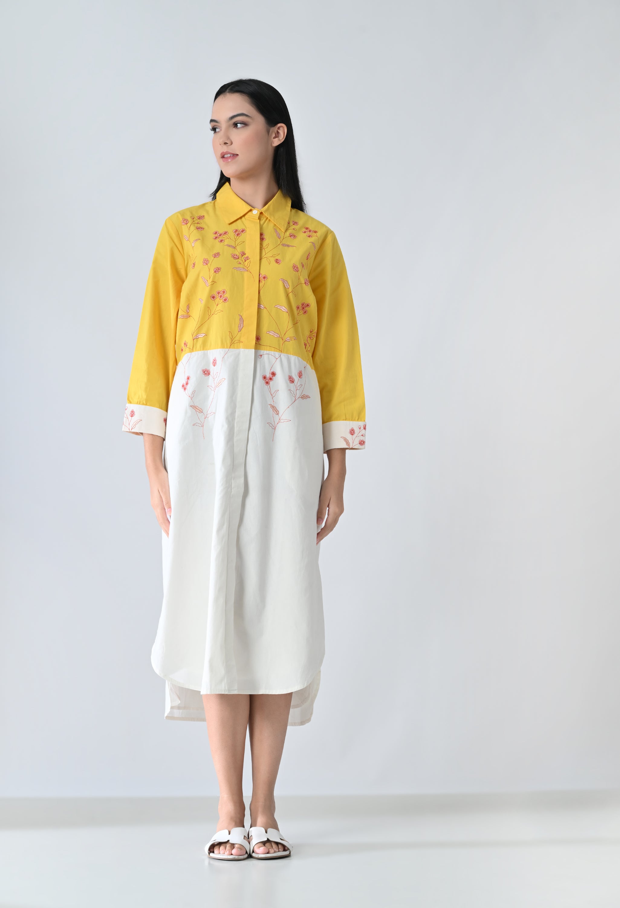 Sunlit Bloom High Low Shirt Dress
