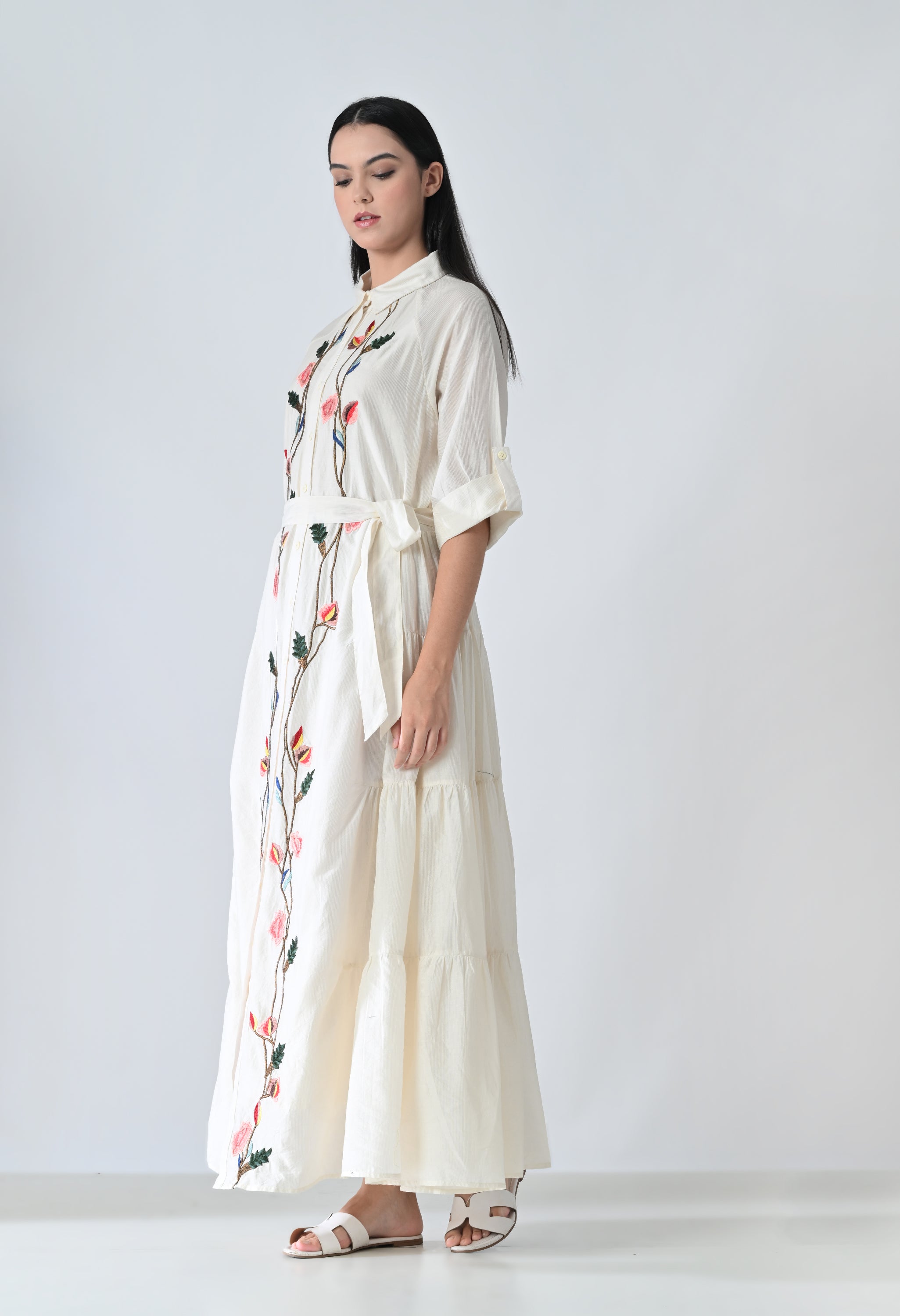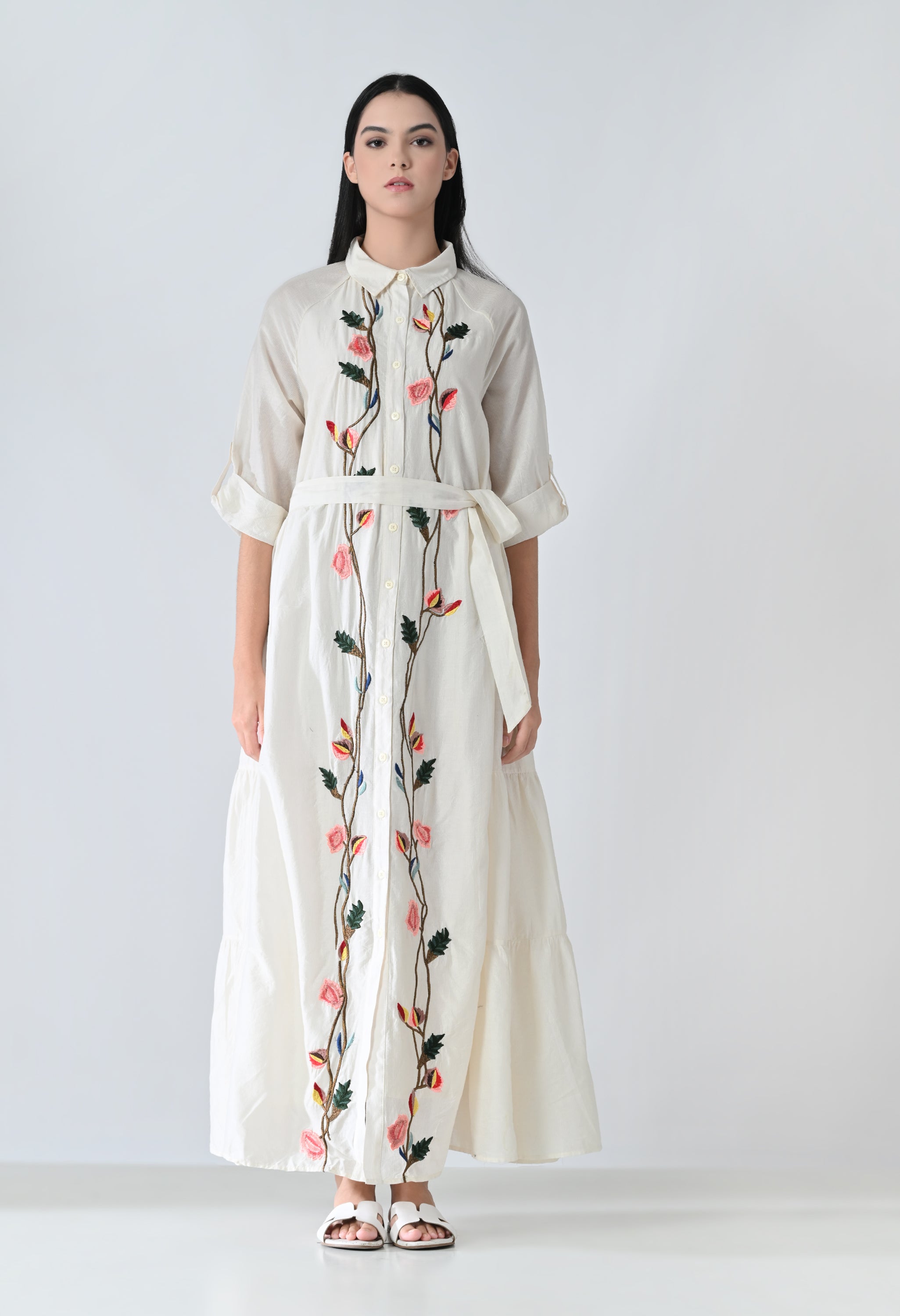 Ivory Floral Garden Embroidered Long Dress