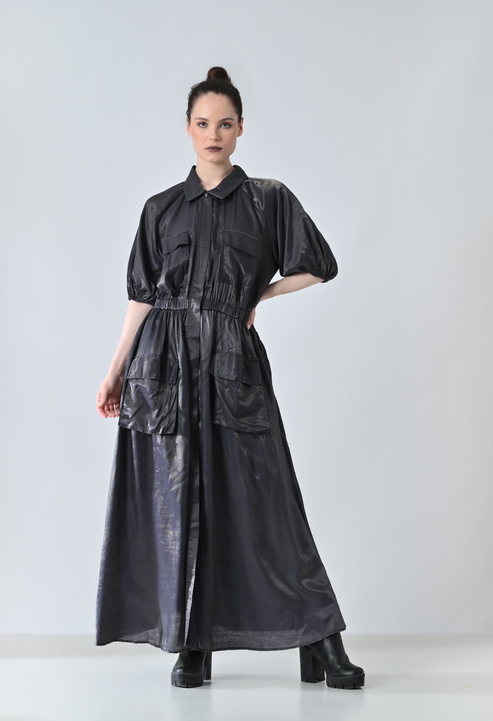 Mercury Grey Sheen Shirt Dress
