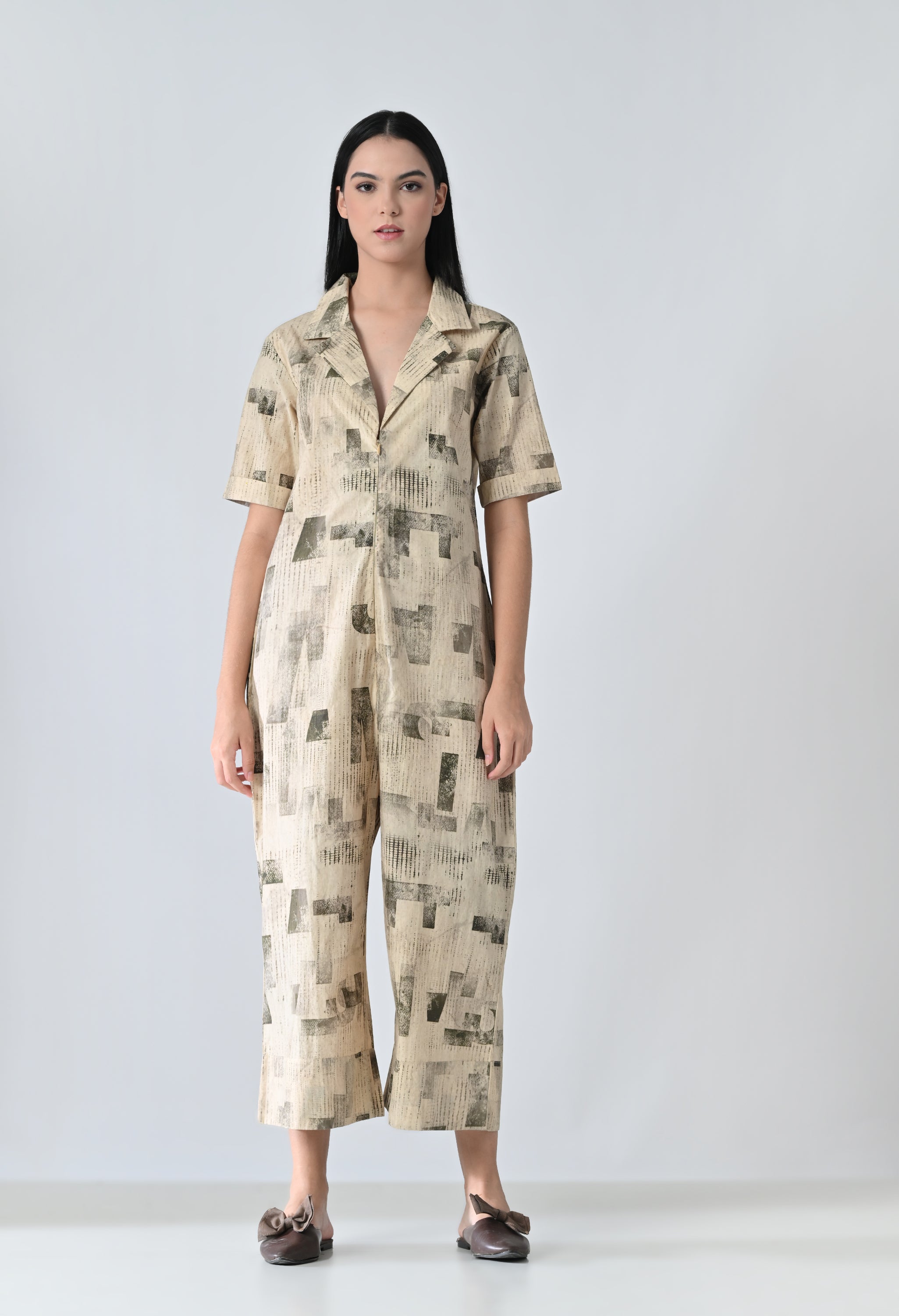 Beige Printed Relaxed Fit Jumpsuit