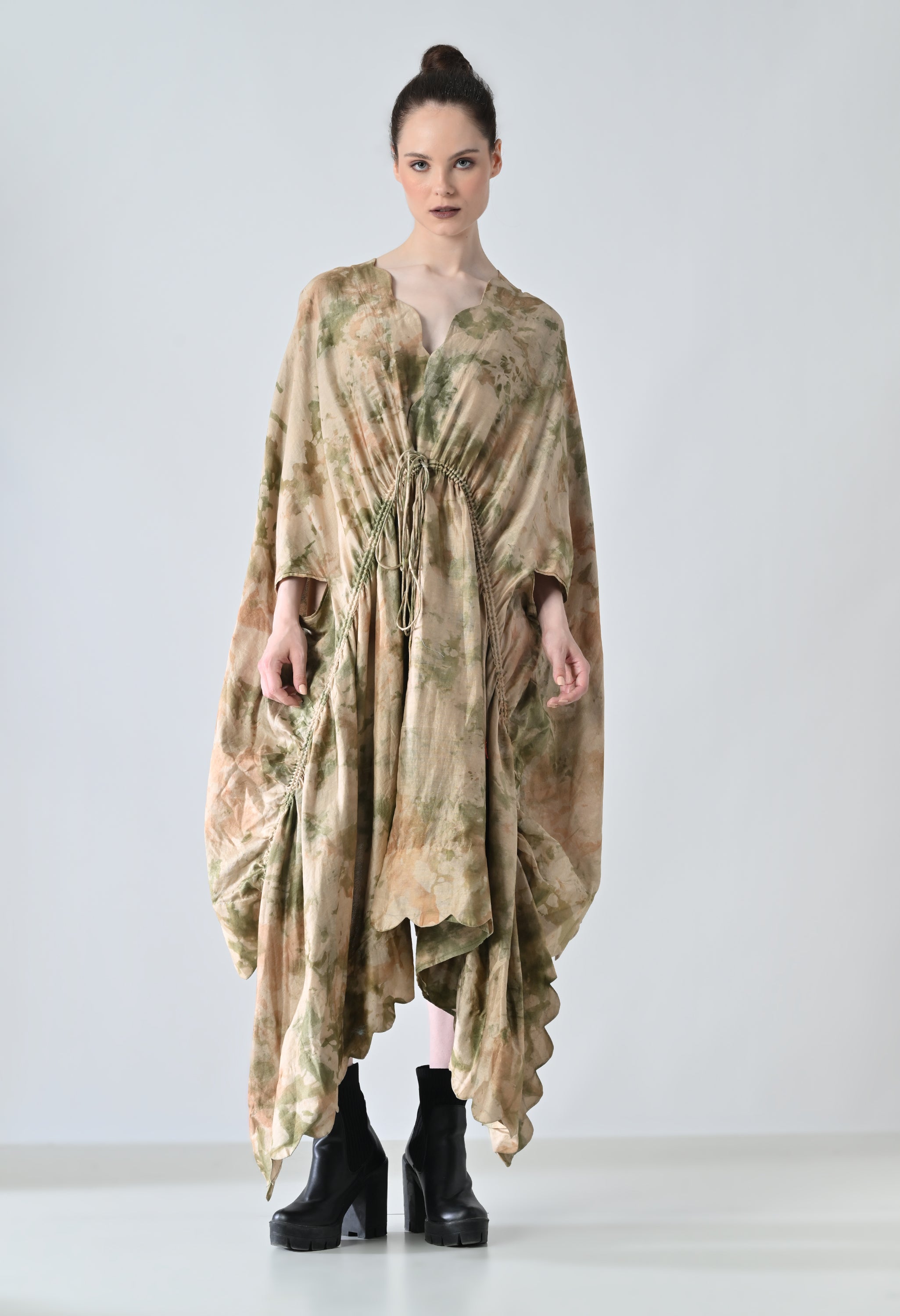 Olive Moss Draped Overlay Kaftan