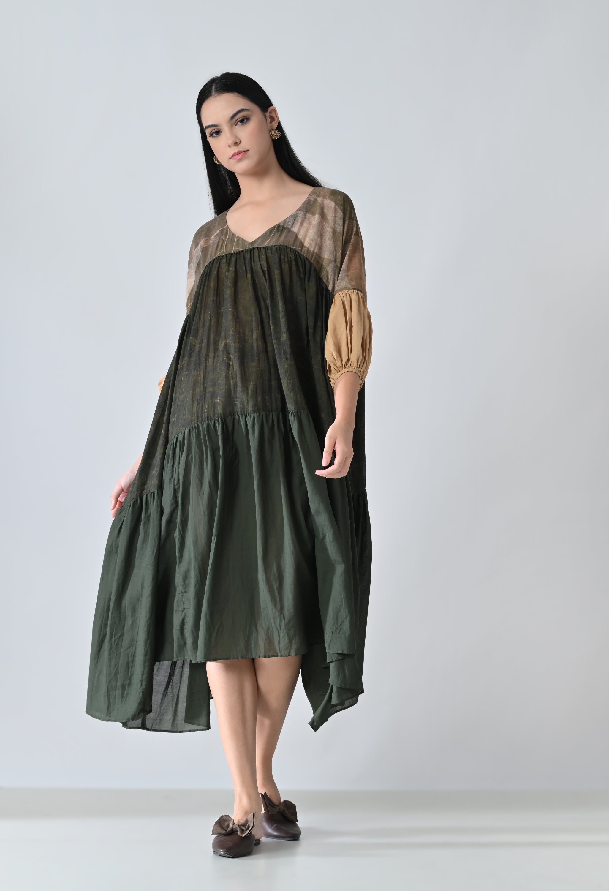 Olive Moss Garden Printed Layered Dress