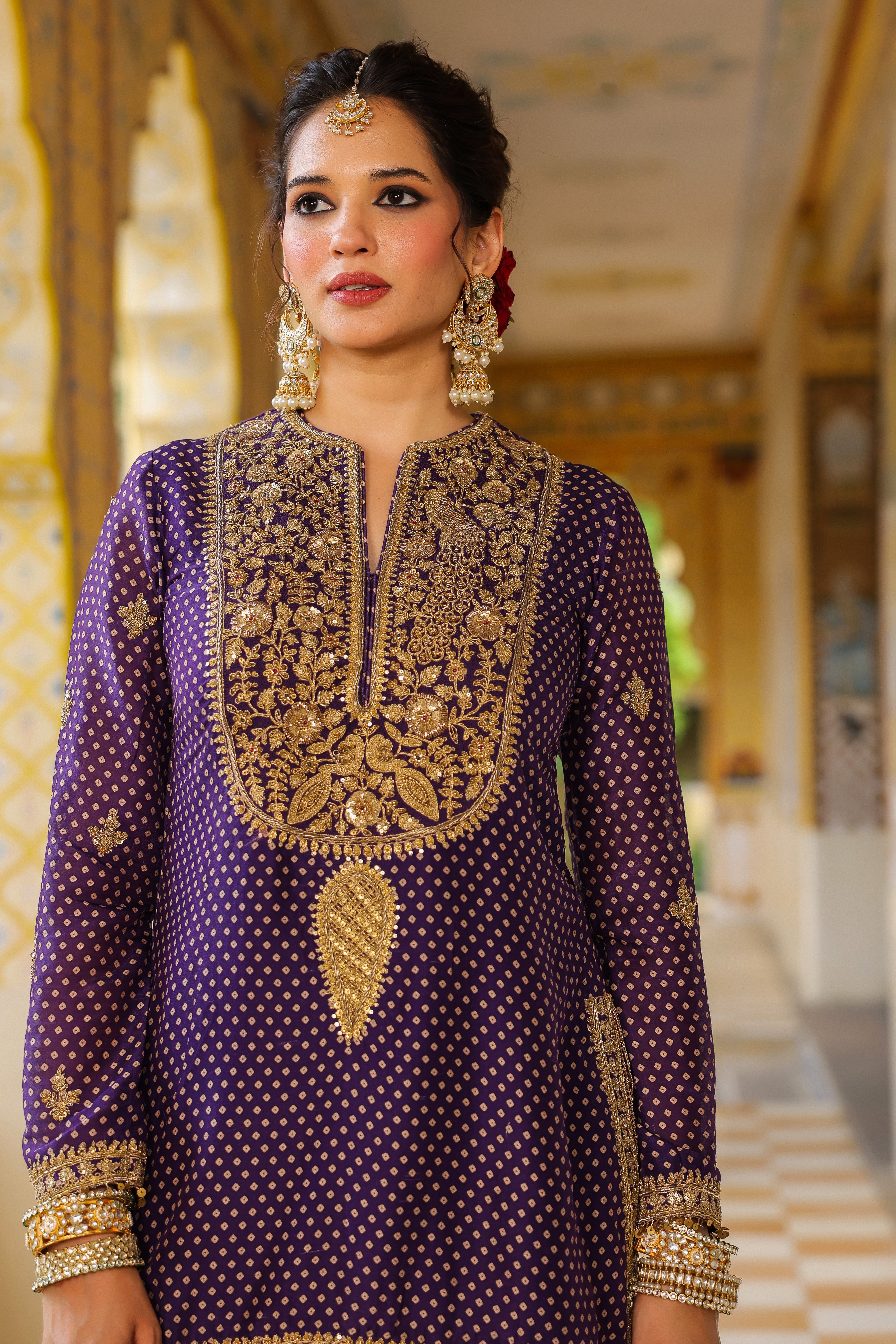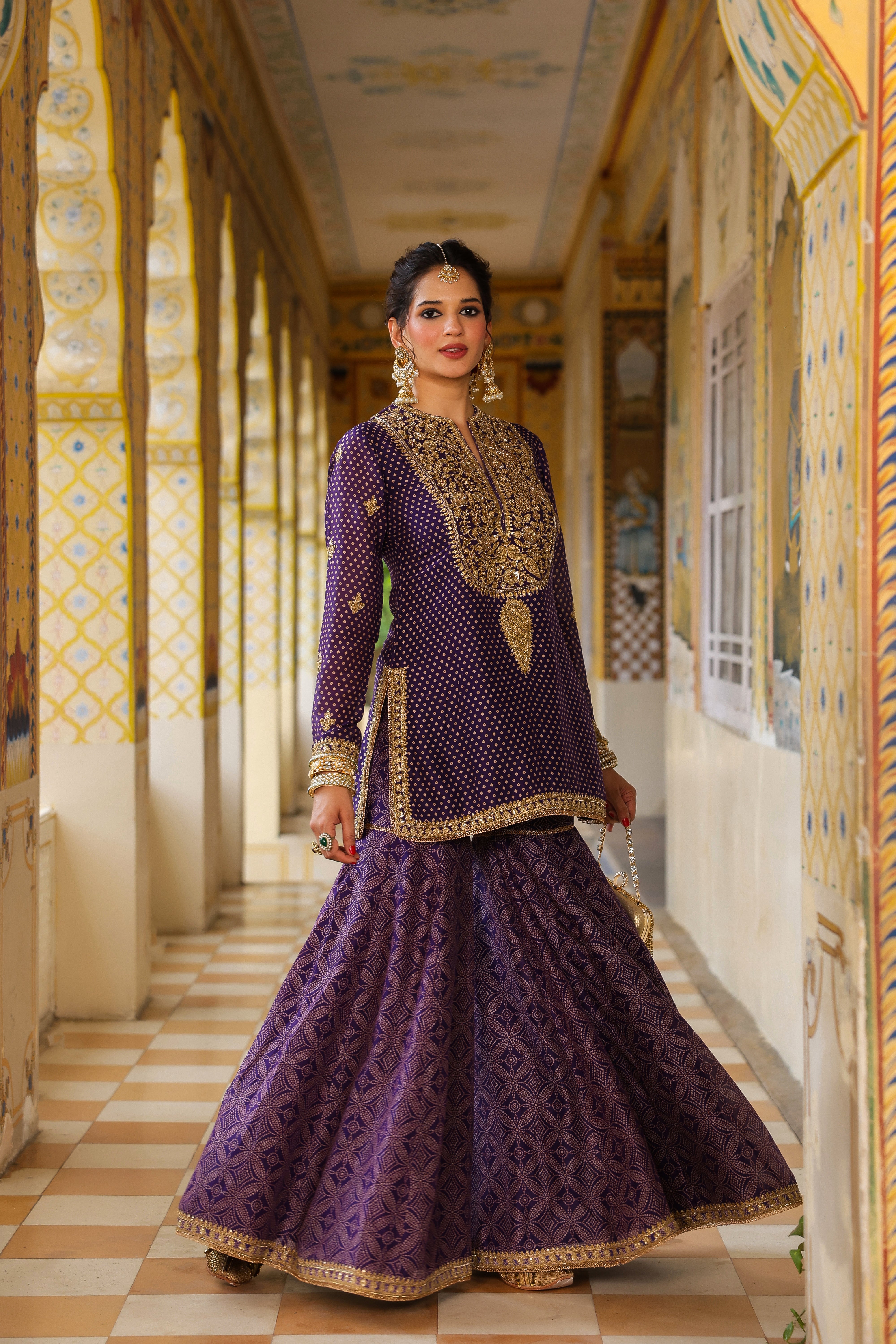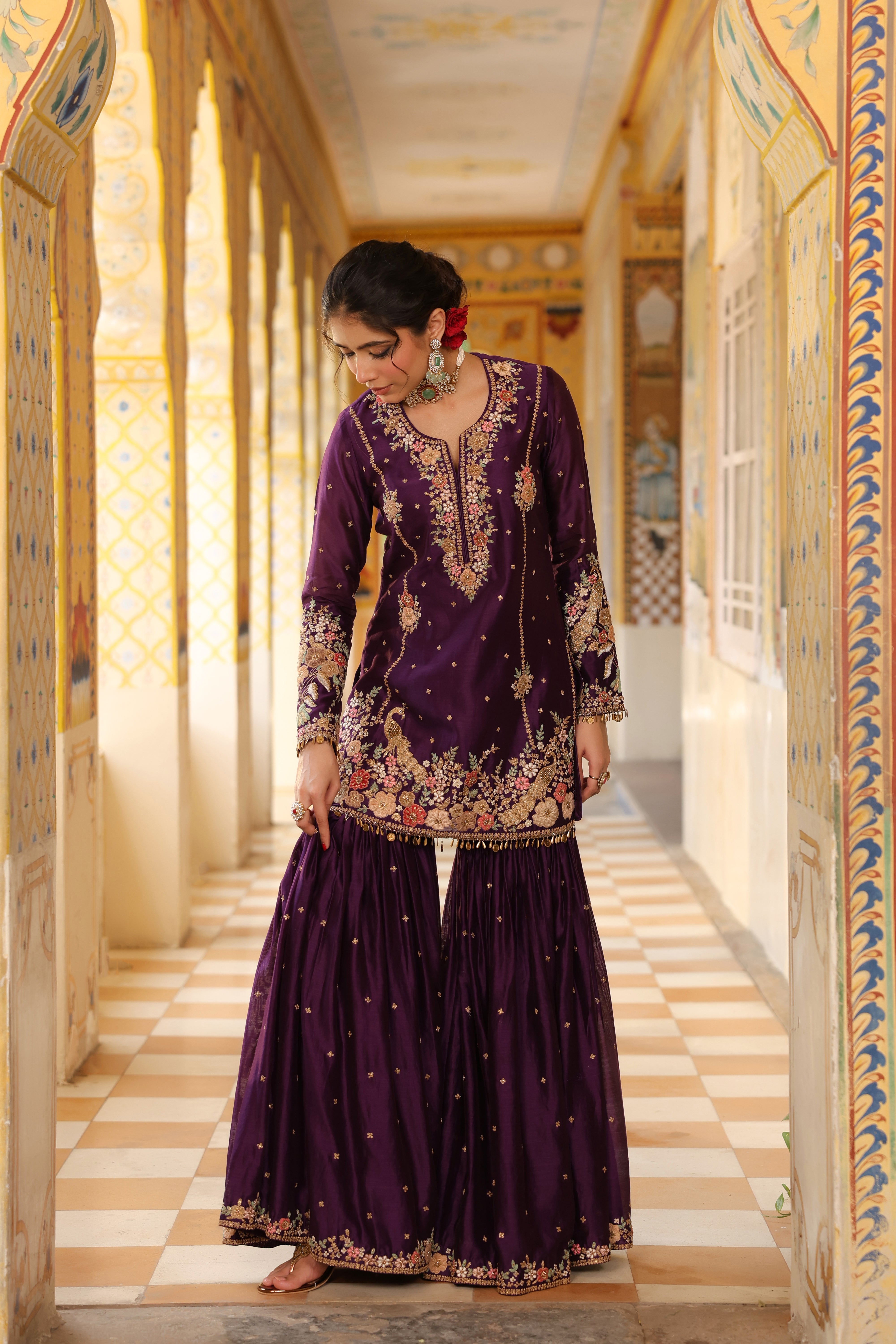Ahista Purple Mayur Applique Heavy Sharara Set