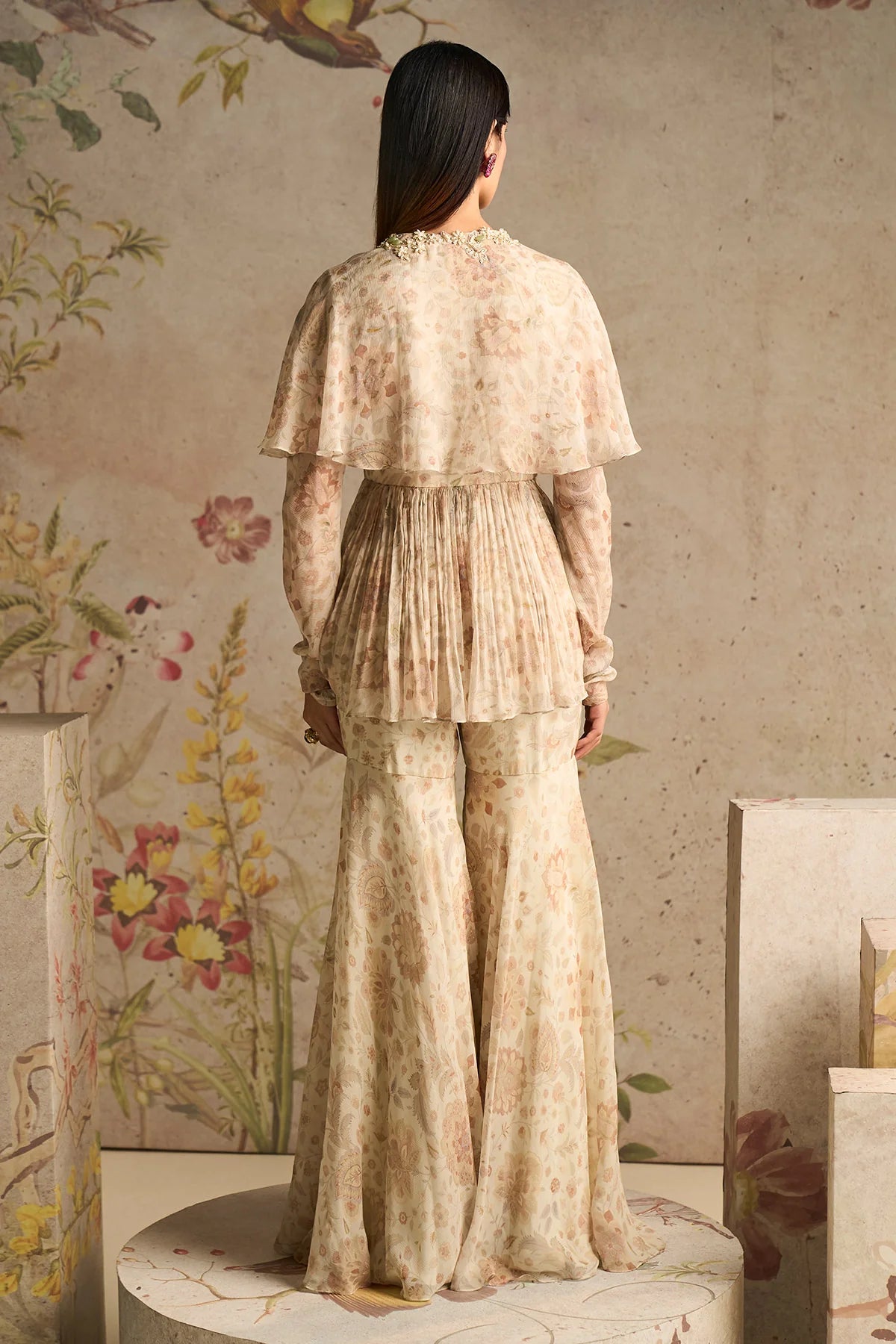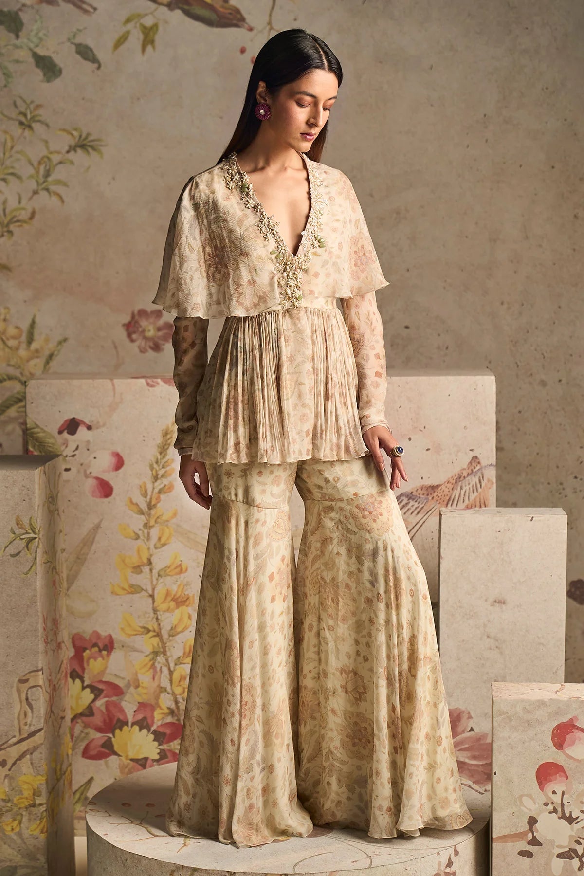 Ivory Printed Chiffon Gharara