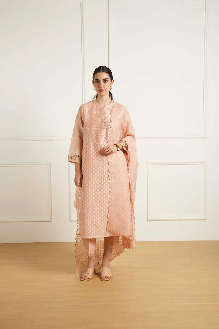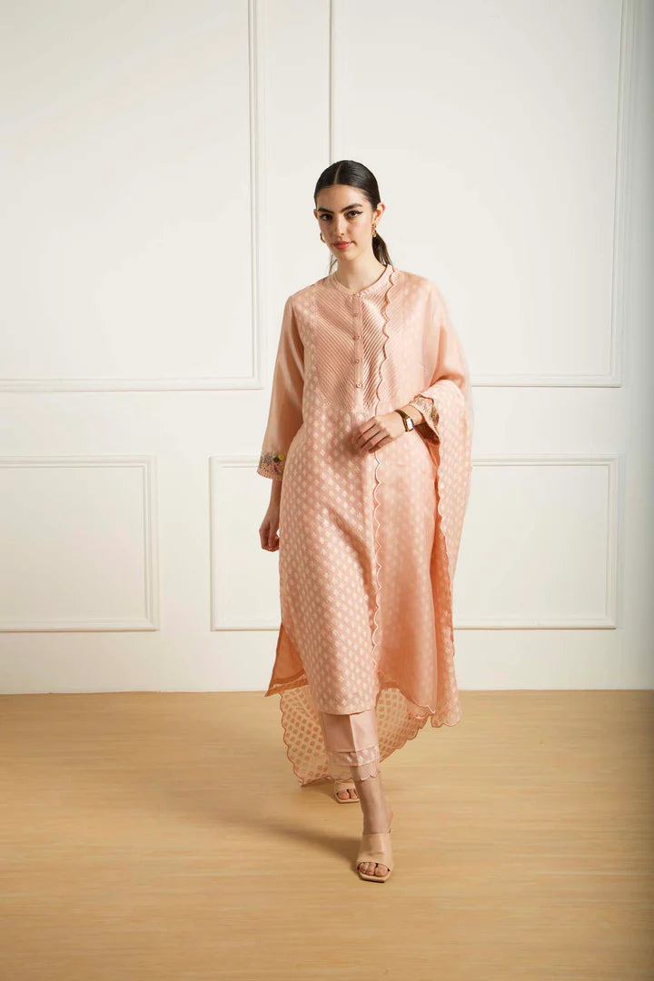 Mint Embroided Tunic In Silk Chanderi With Scallop Detailed Pants In Silk Chanderi