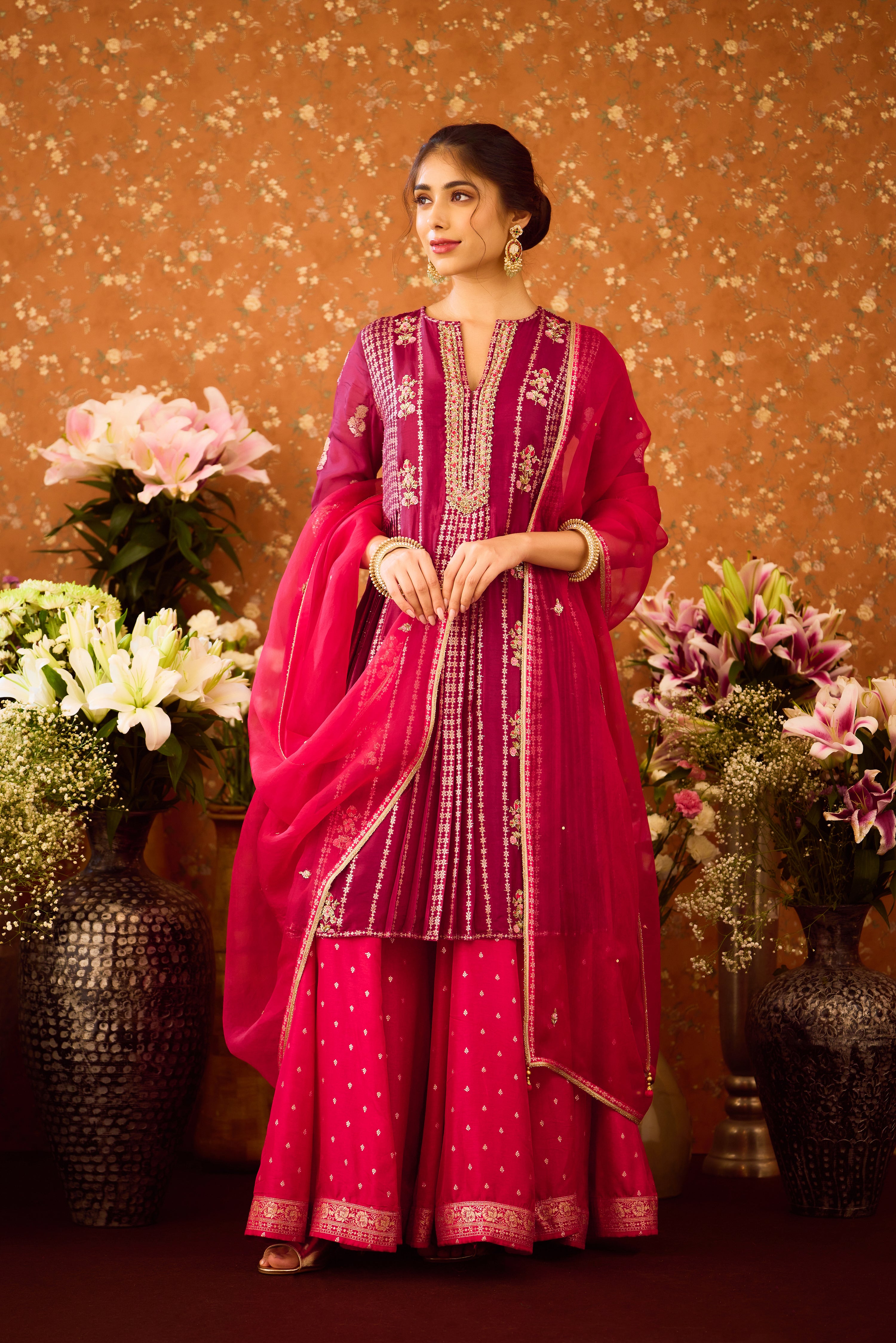 Persian Maroon Anarkali Sharara Suit