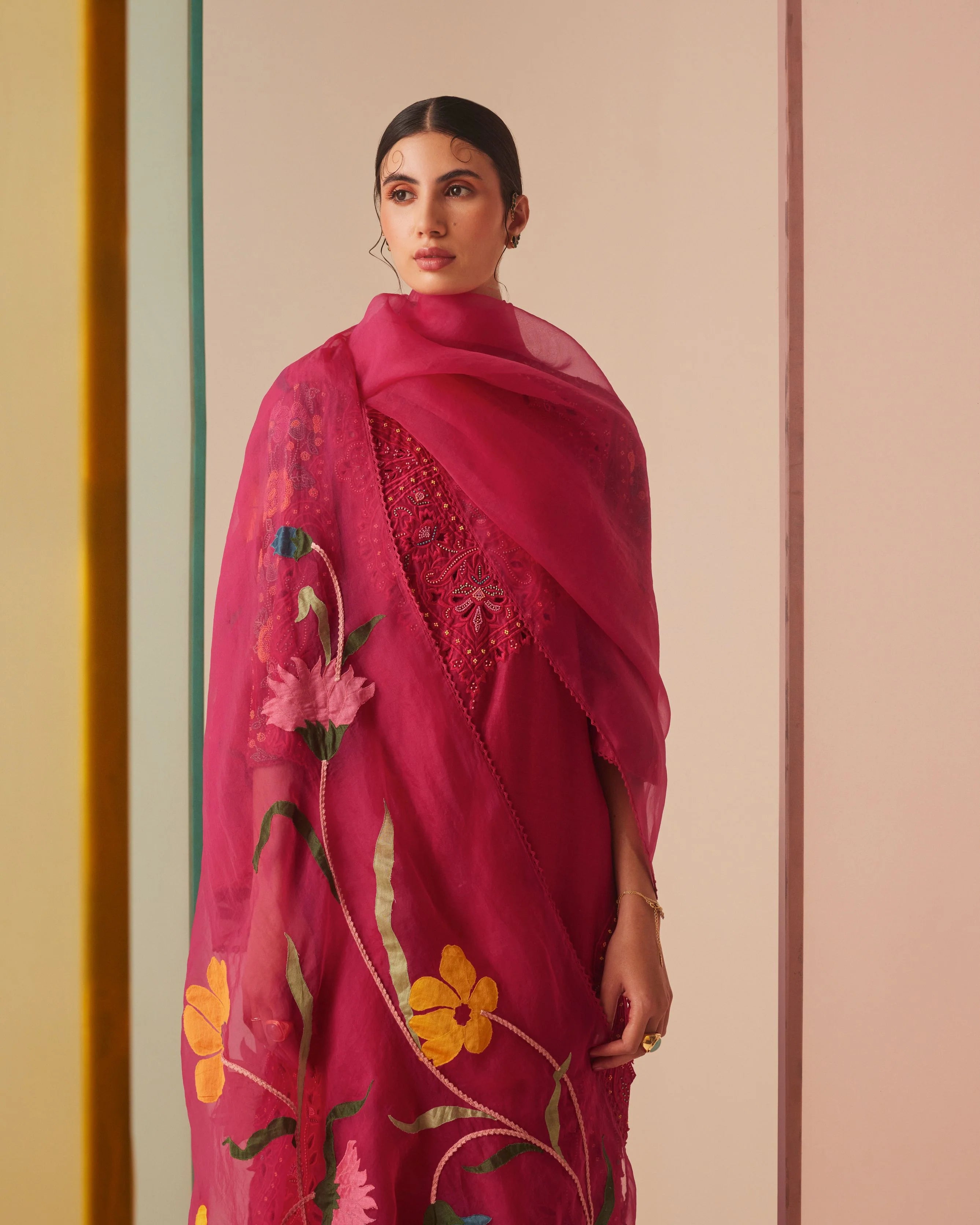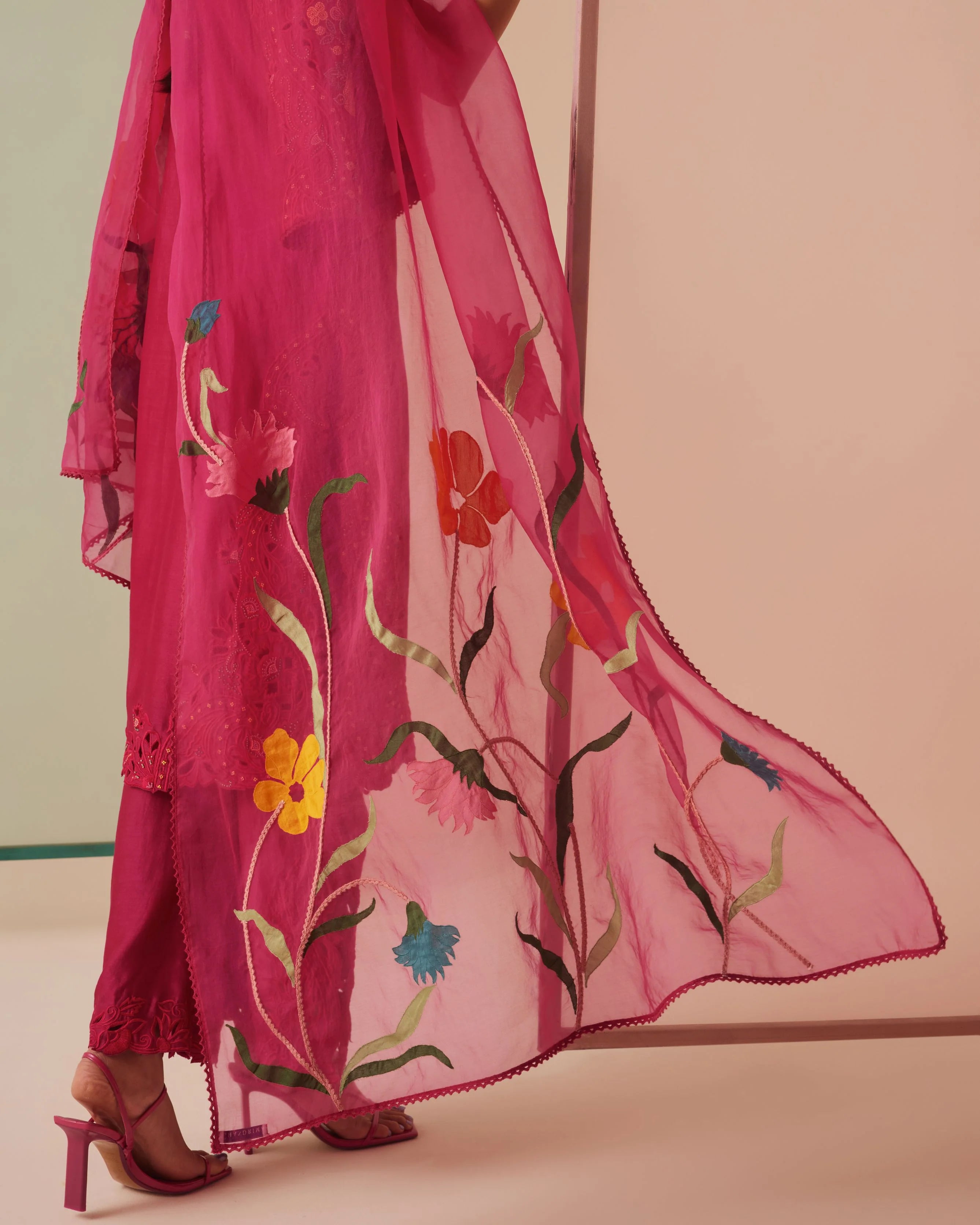 FUCHSIA ORGANZA APPLIQUE DUPATTA